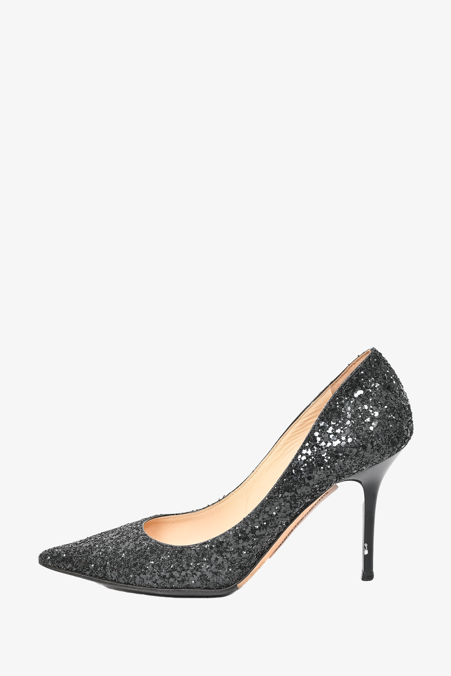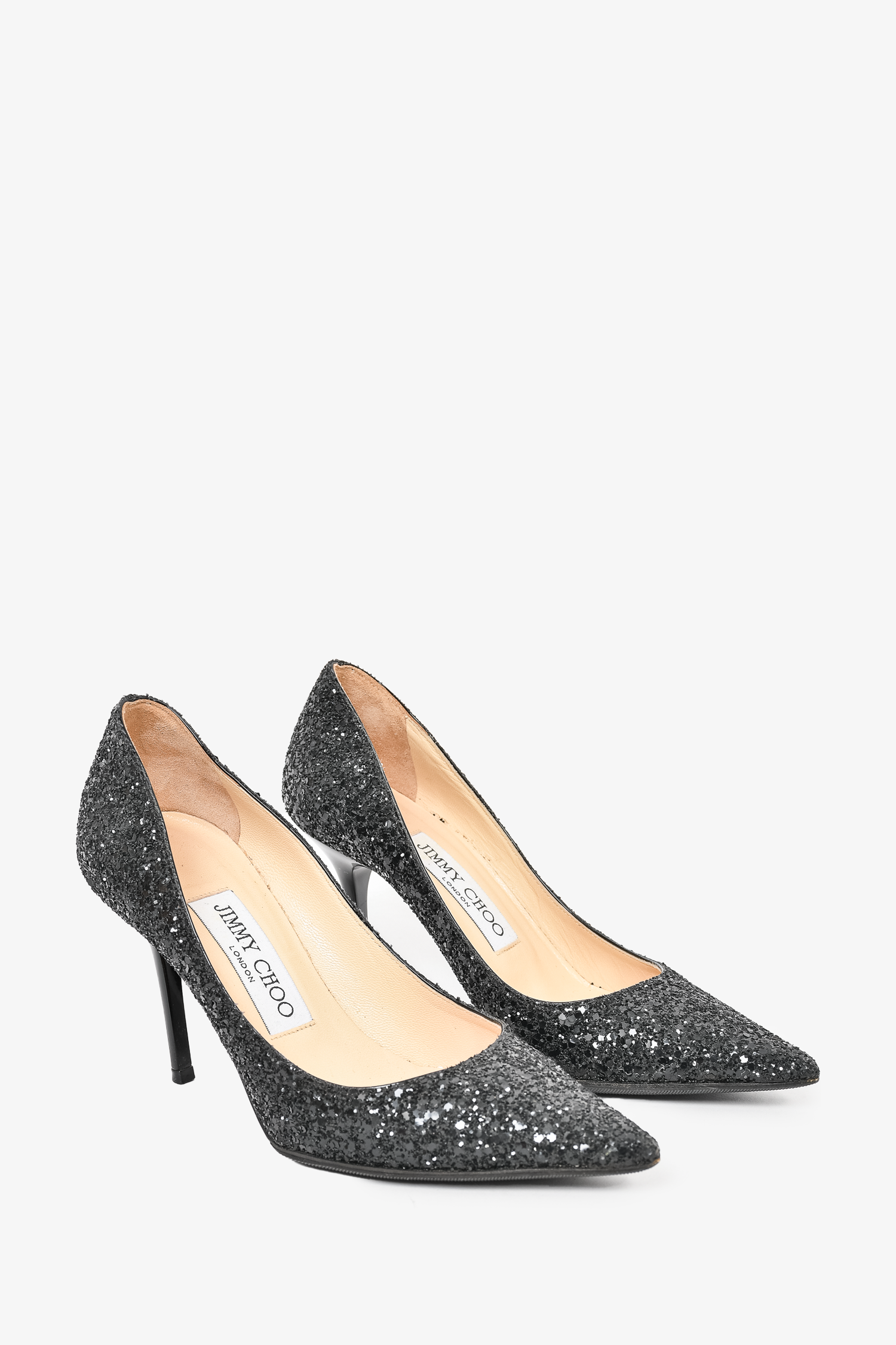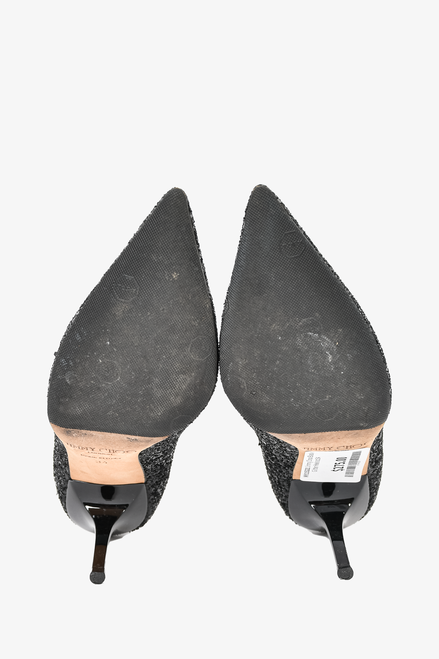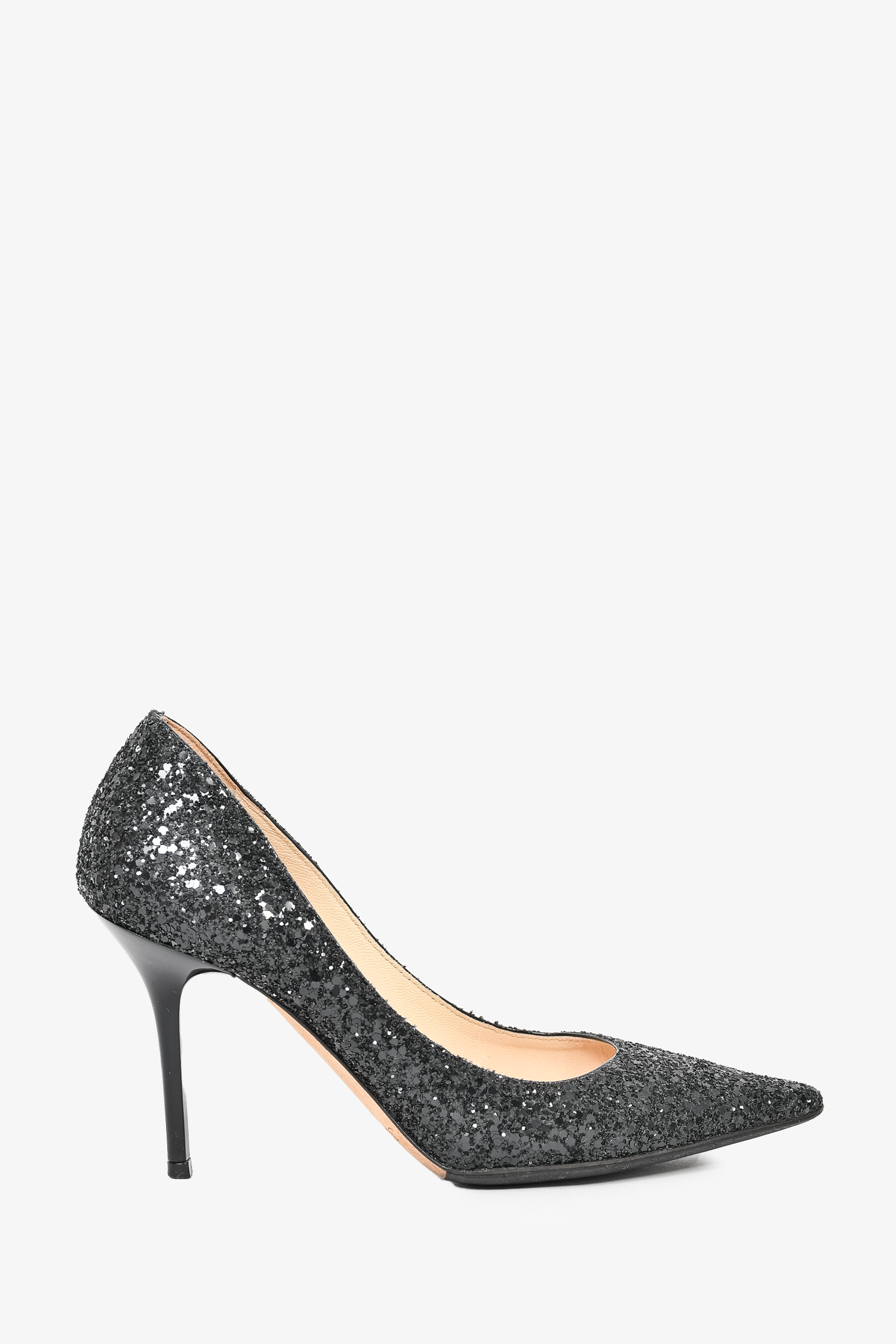 Refresh availabilityJimmy Choo Black Glitter Heels. Slip-on. Pointed toe. Tonal stitching.