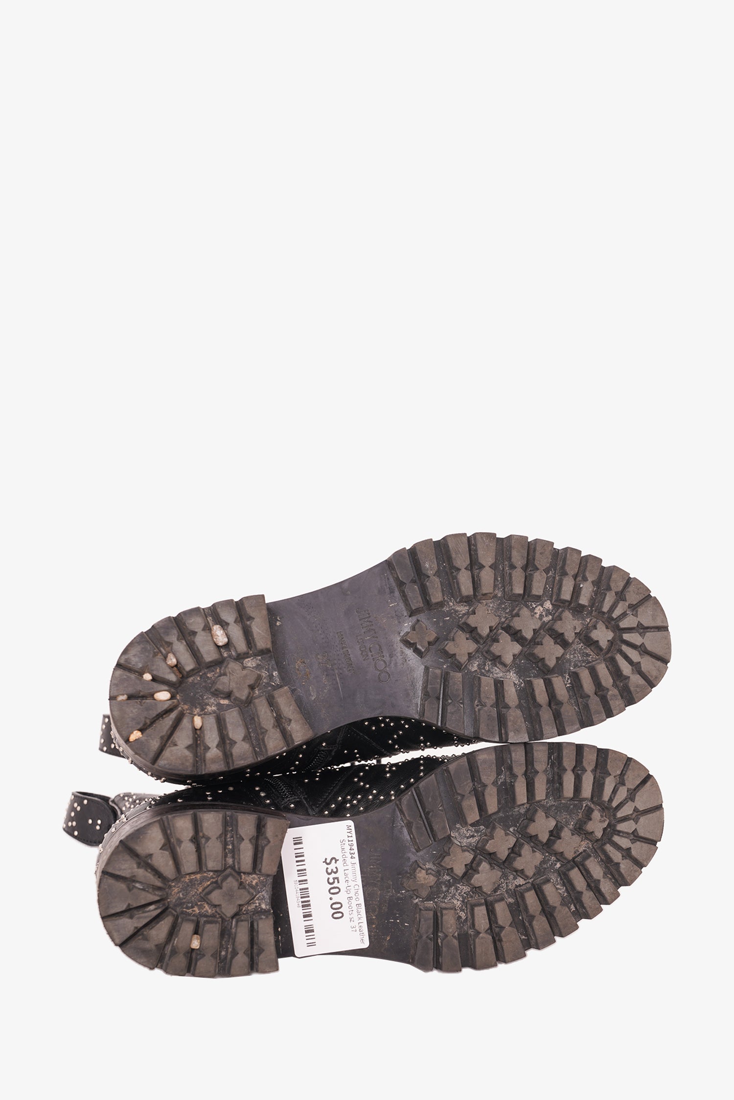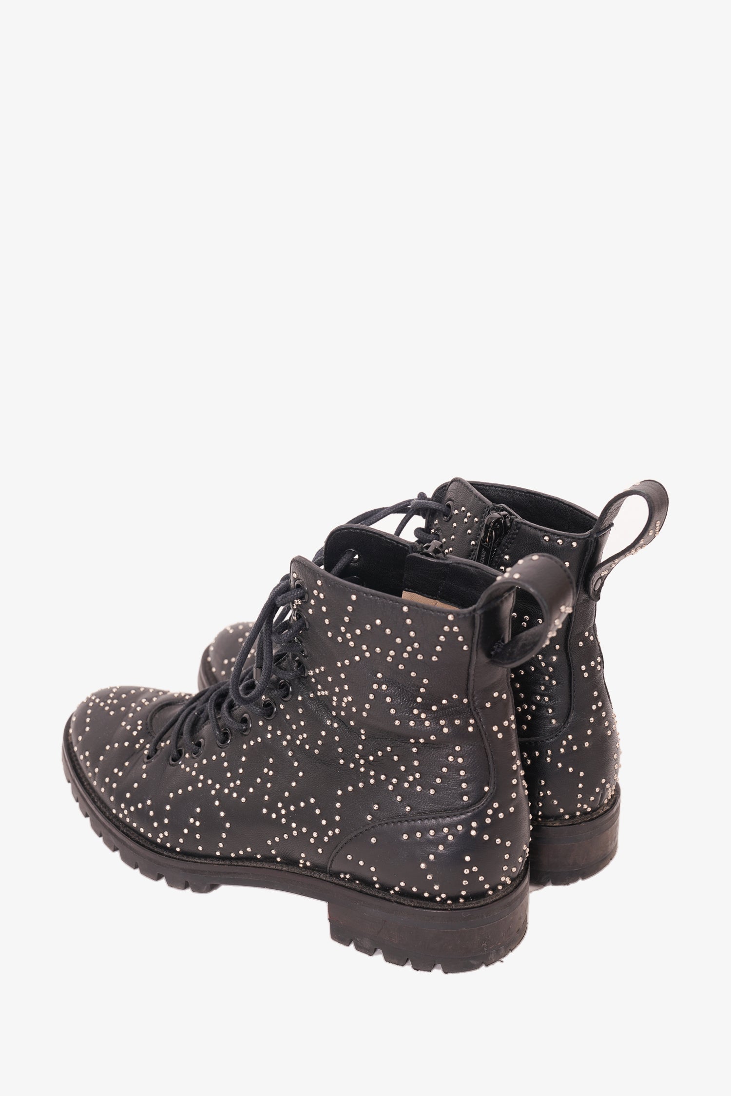 Jimmy Choo Black Leather Studded Lace-Up Boots Size 37