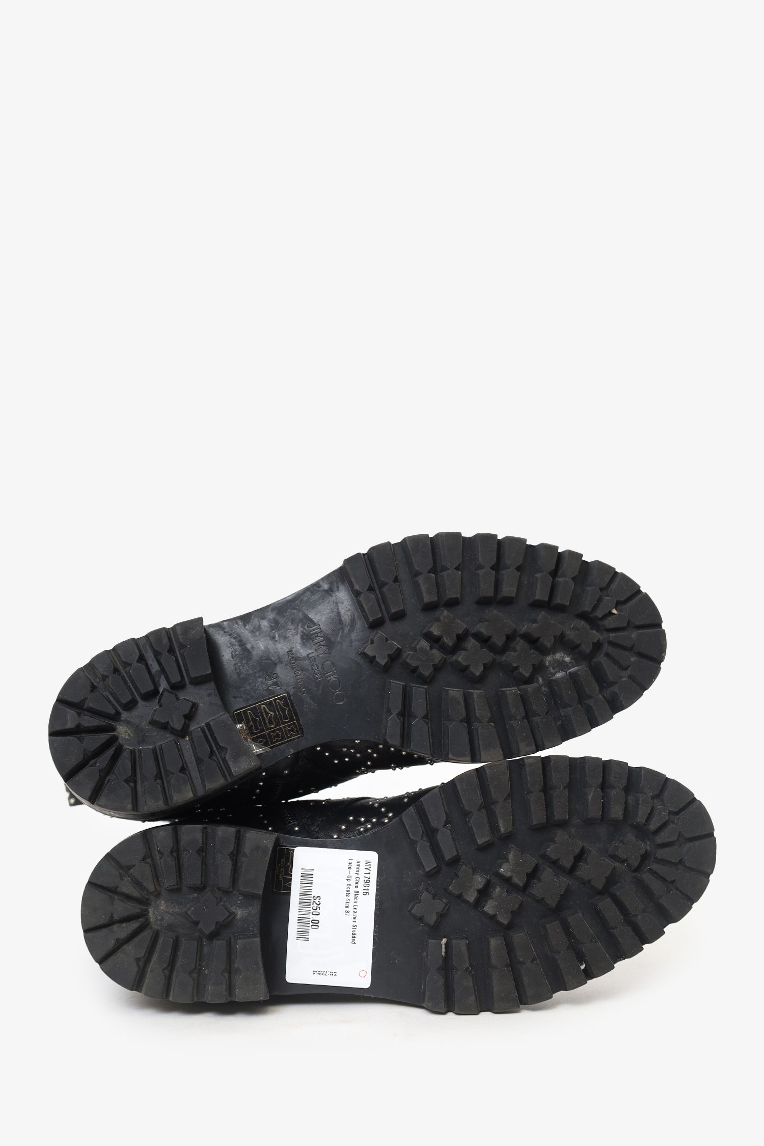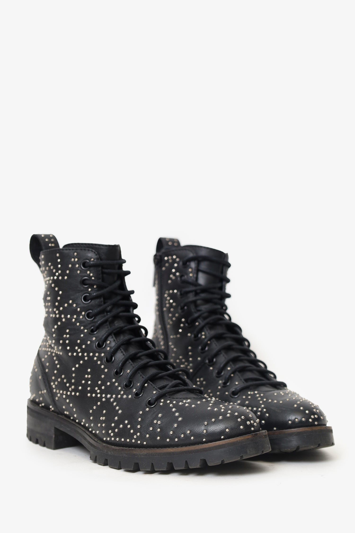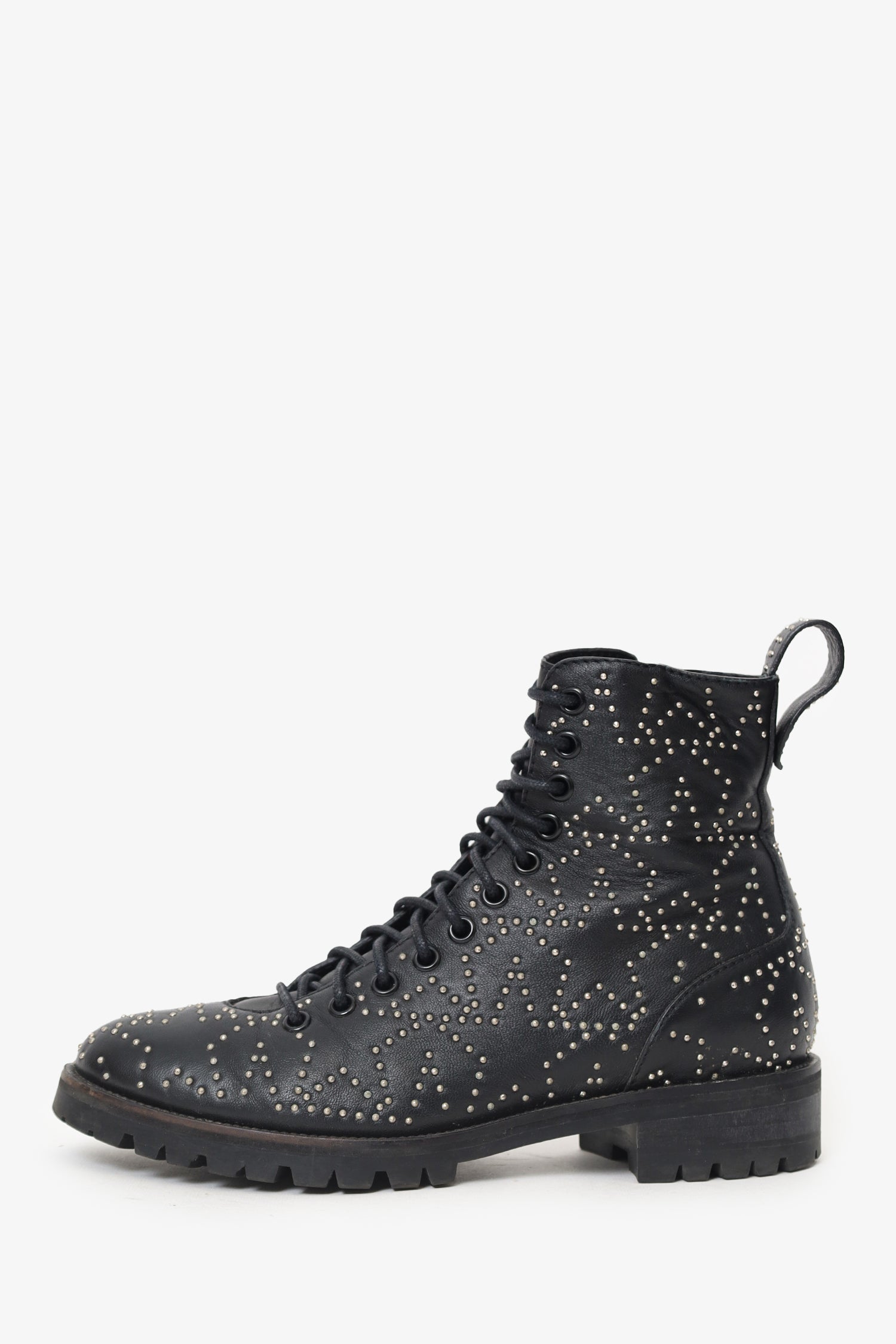Jimmy Choo Black Leather Studded Lace-Up Boots Size 37