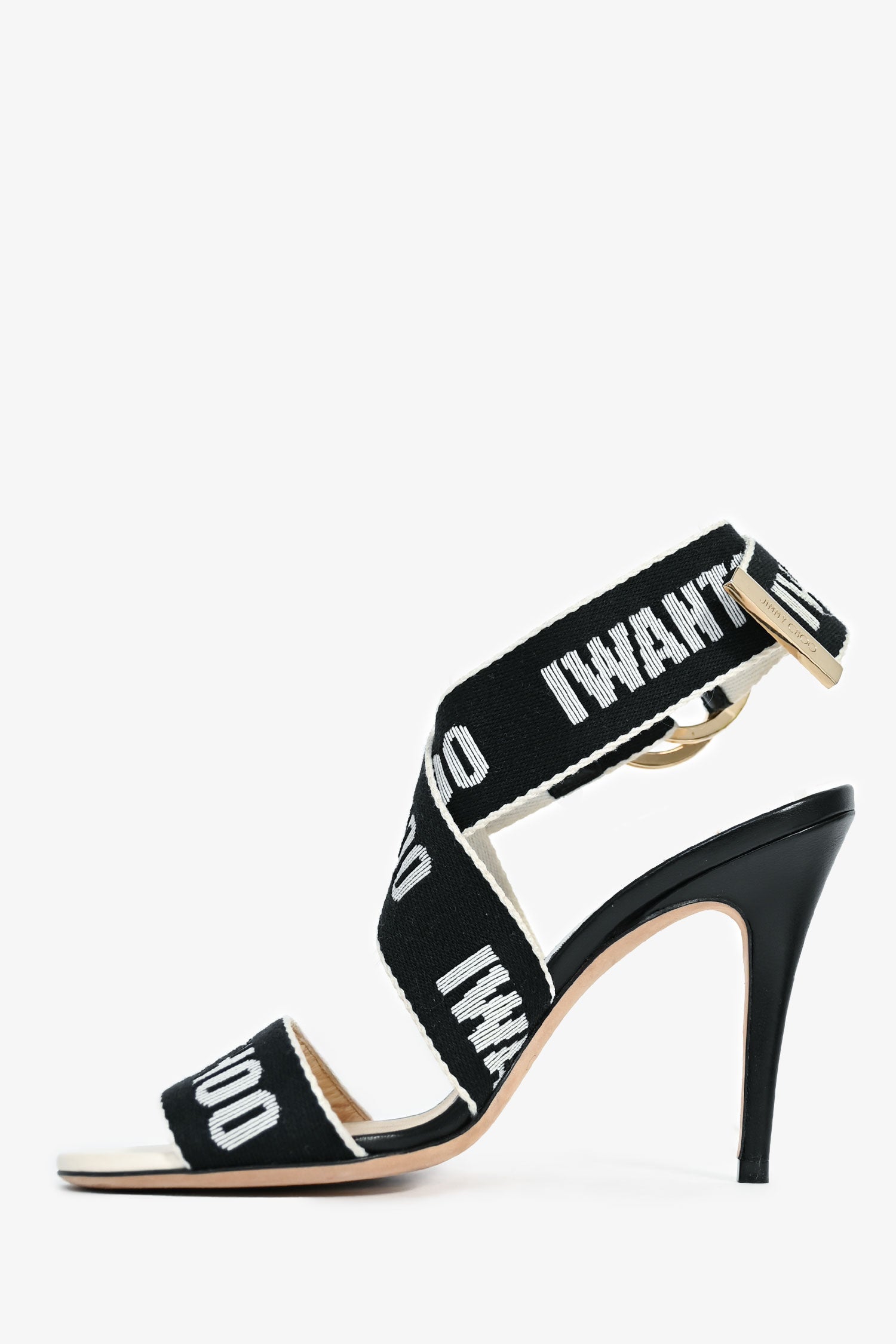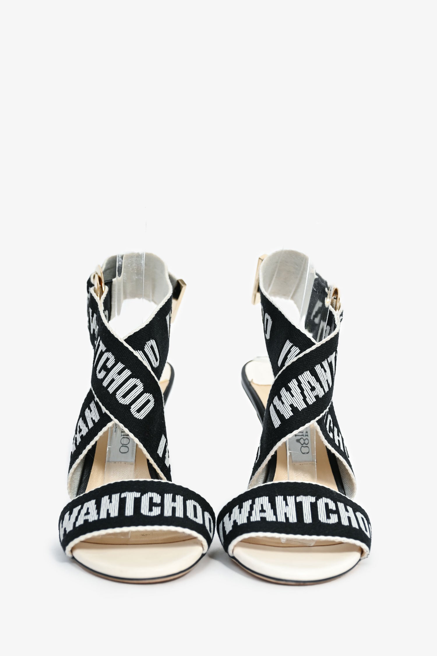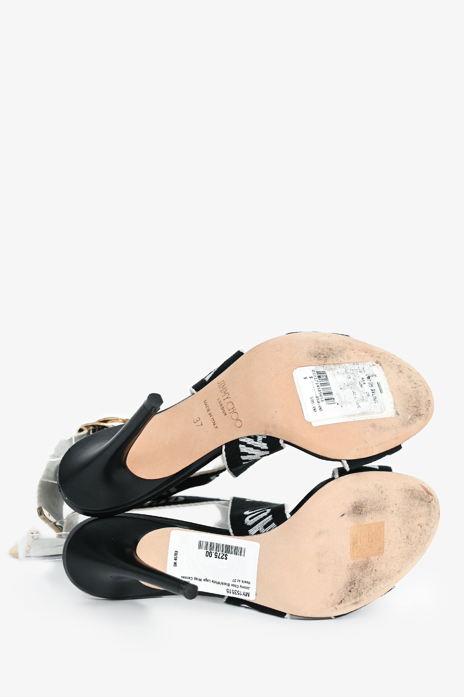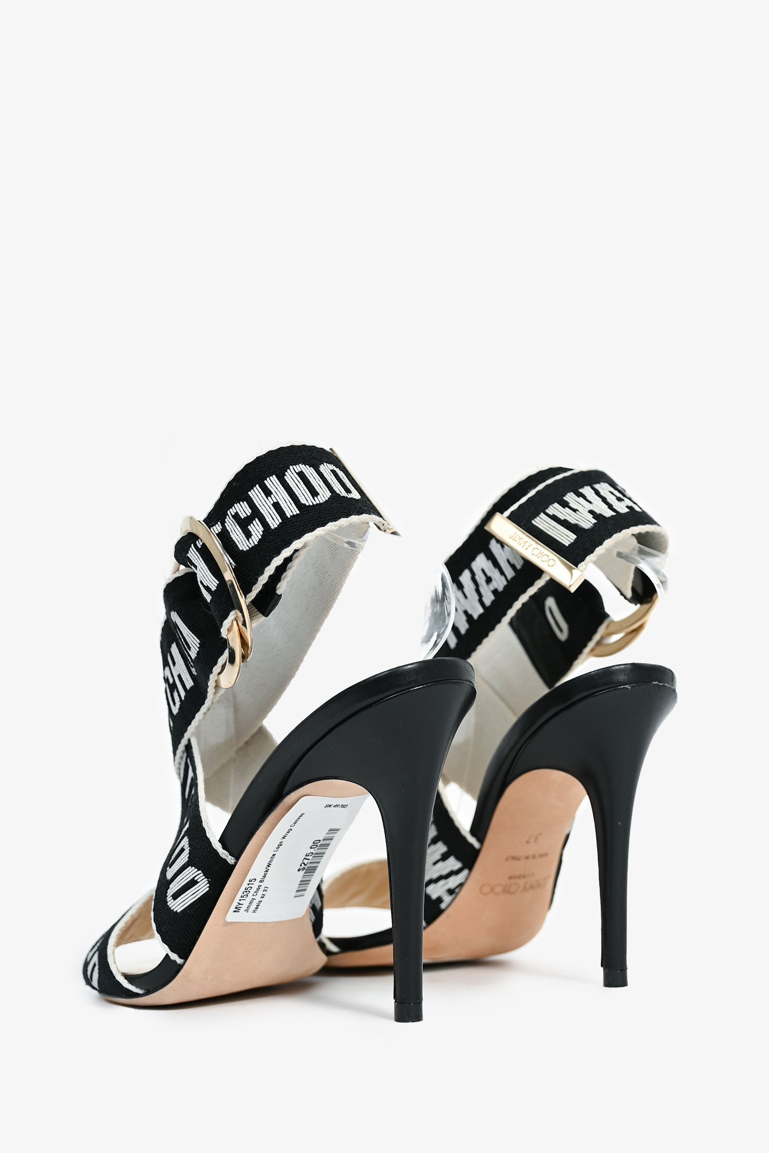 Jimmy Choo Black/White Logo Wrap Canvas Heels Size 37