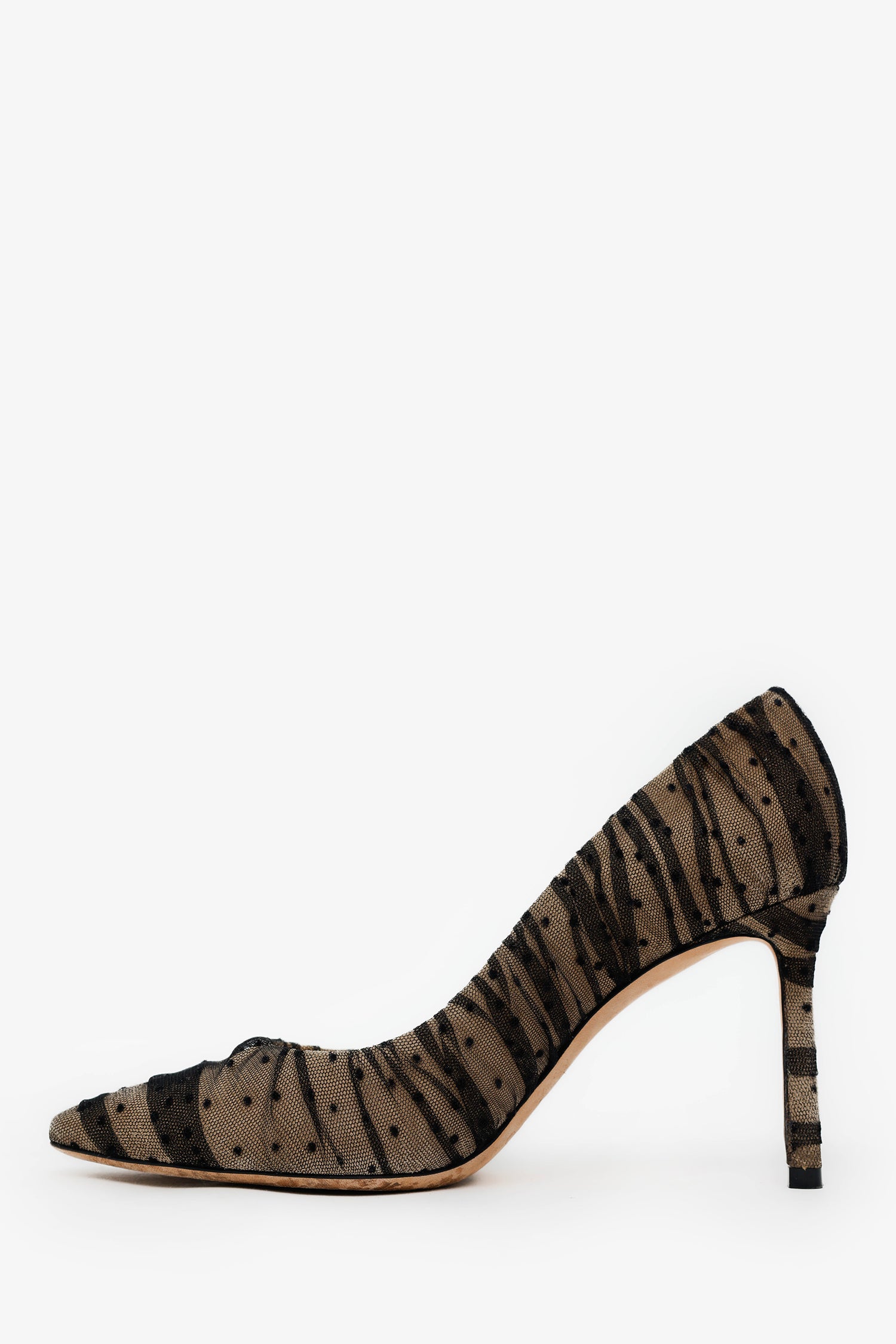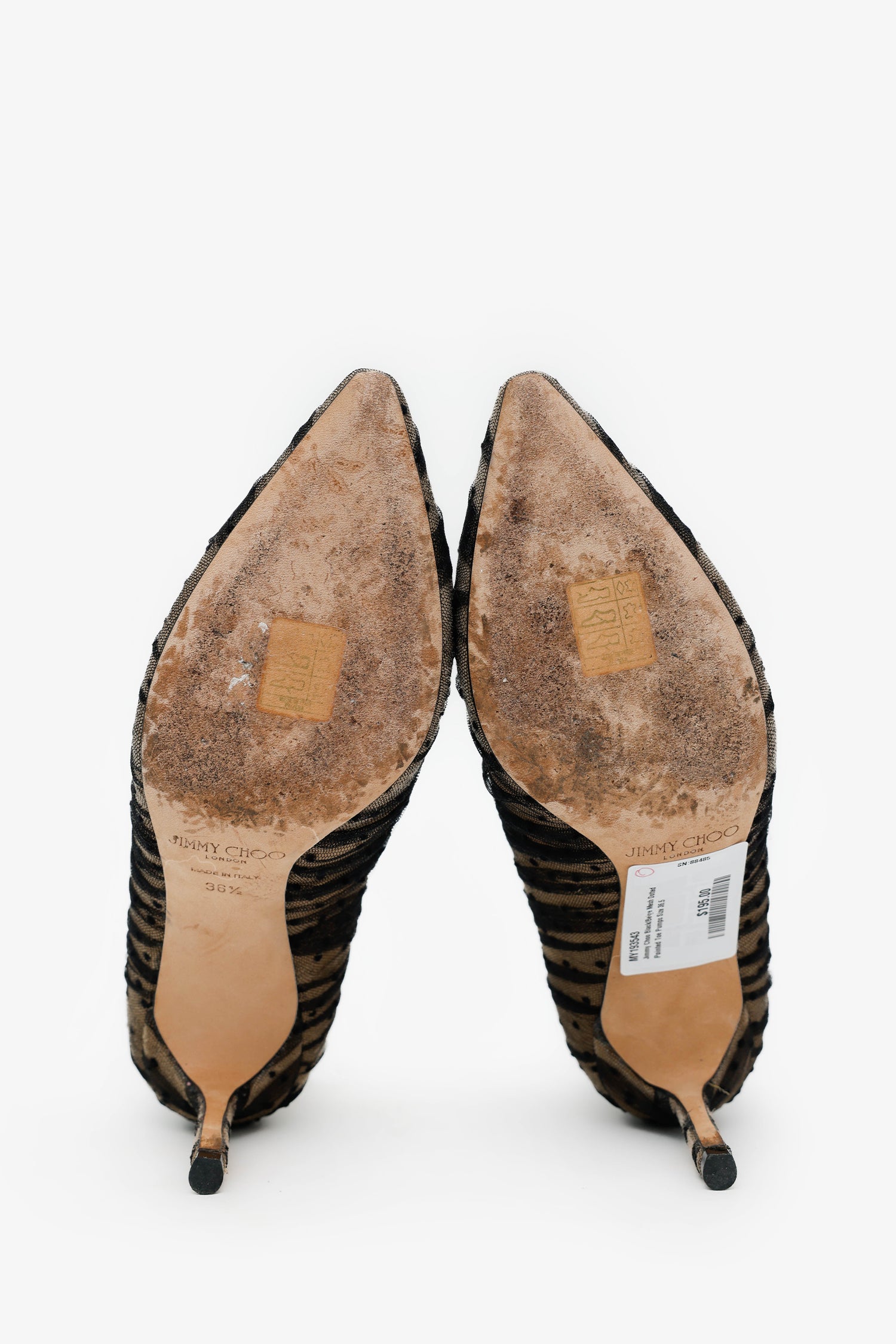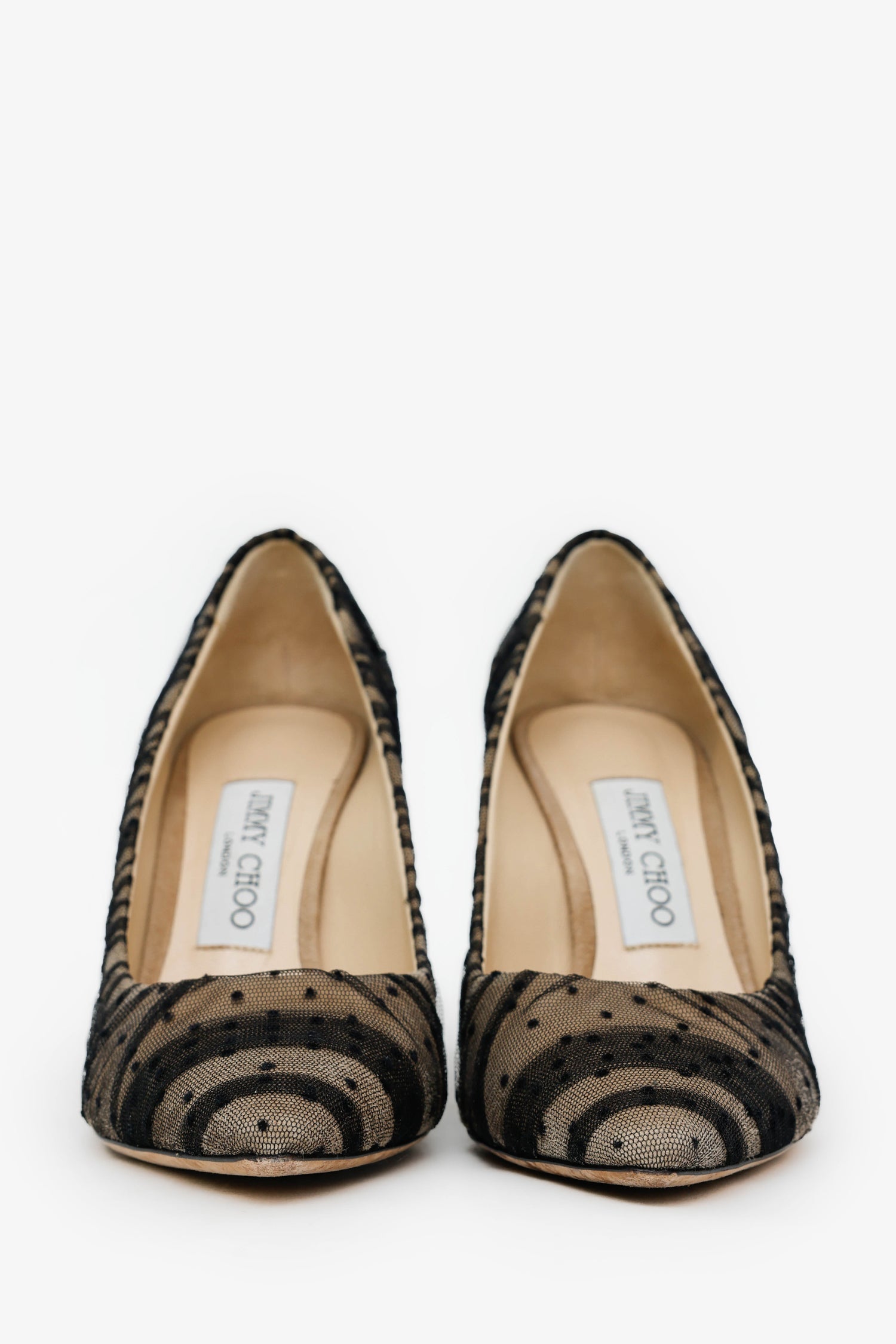 Refresh availabilityJimmy Choo Black/Beige Mesh Dotted Pointed Toe Pumps. Pointed toe. Leather-lined interior. Tonal stitching.