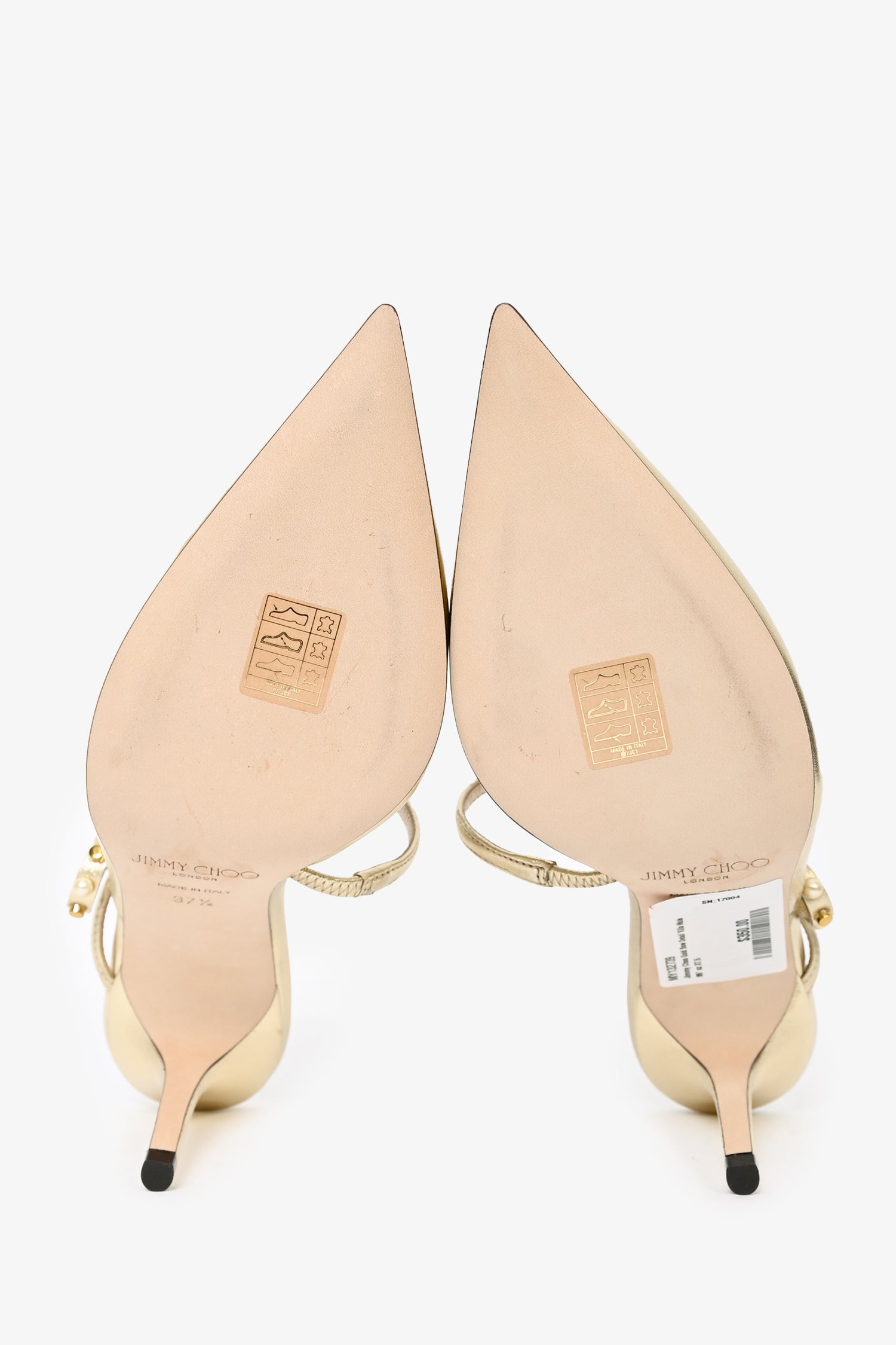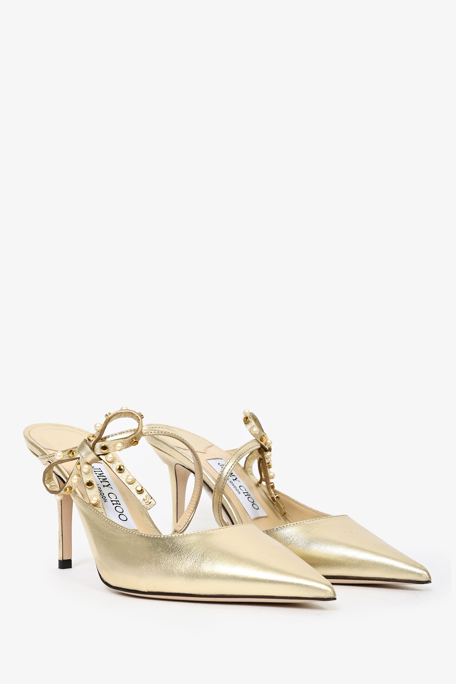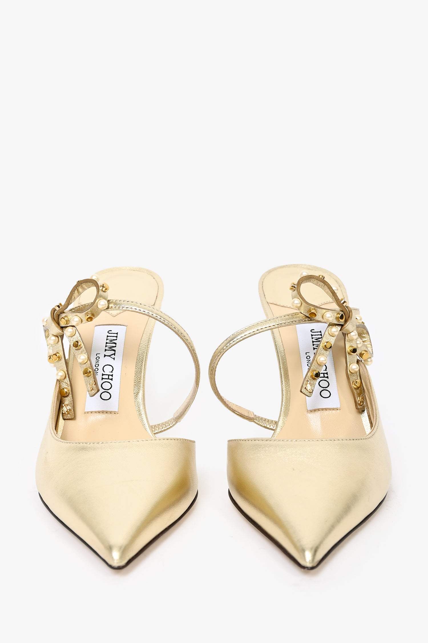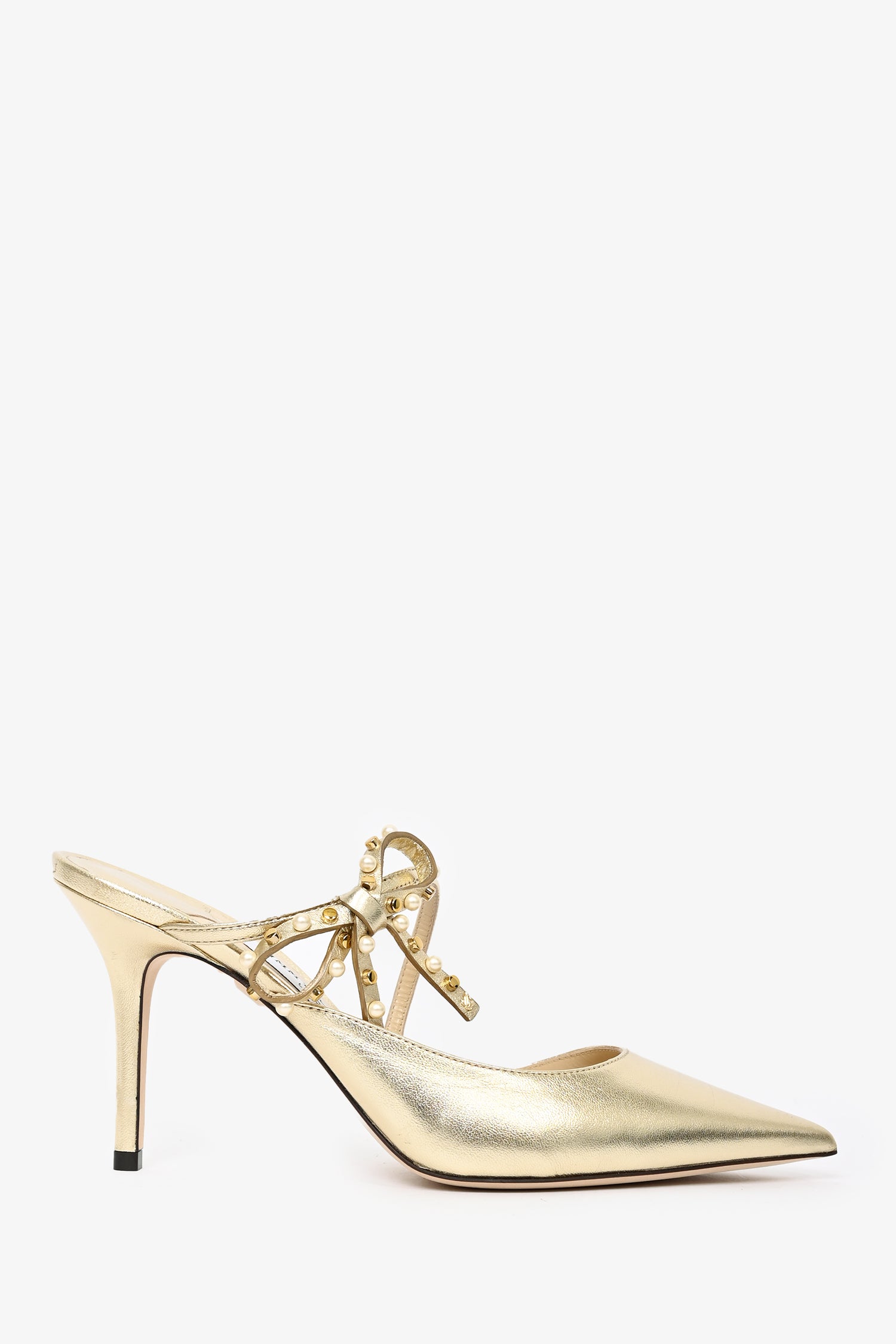Jimmy Choo Gold Bow Detail 'Kilia Mule 85' Size 37.5