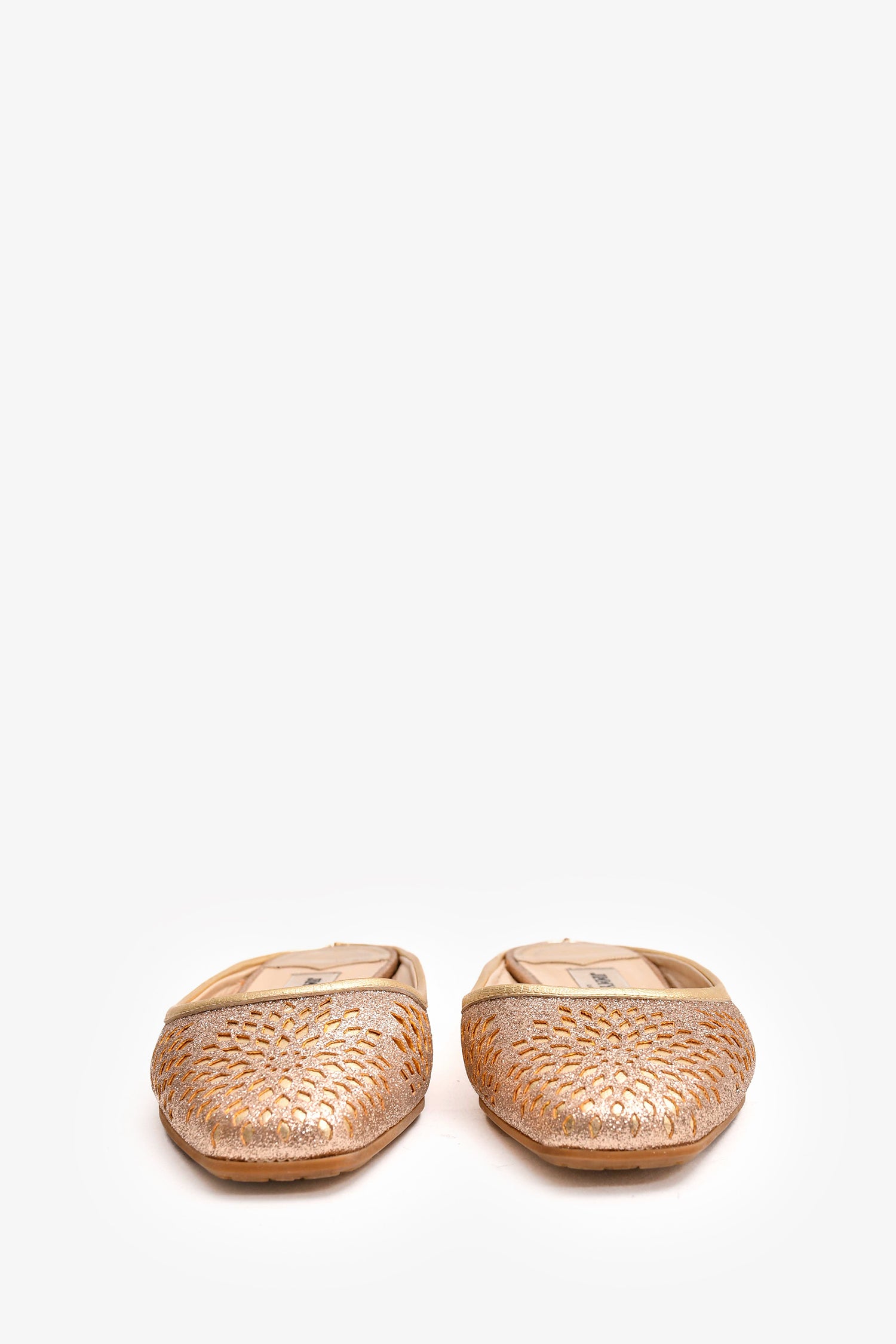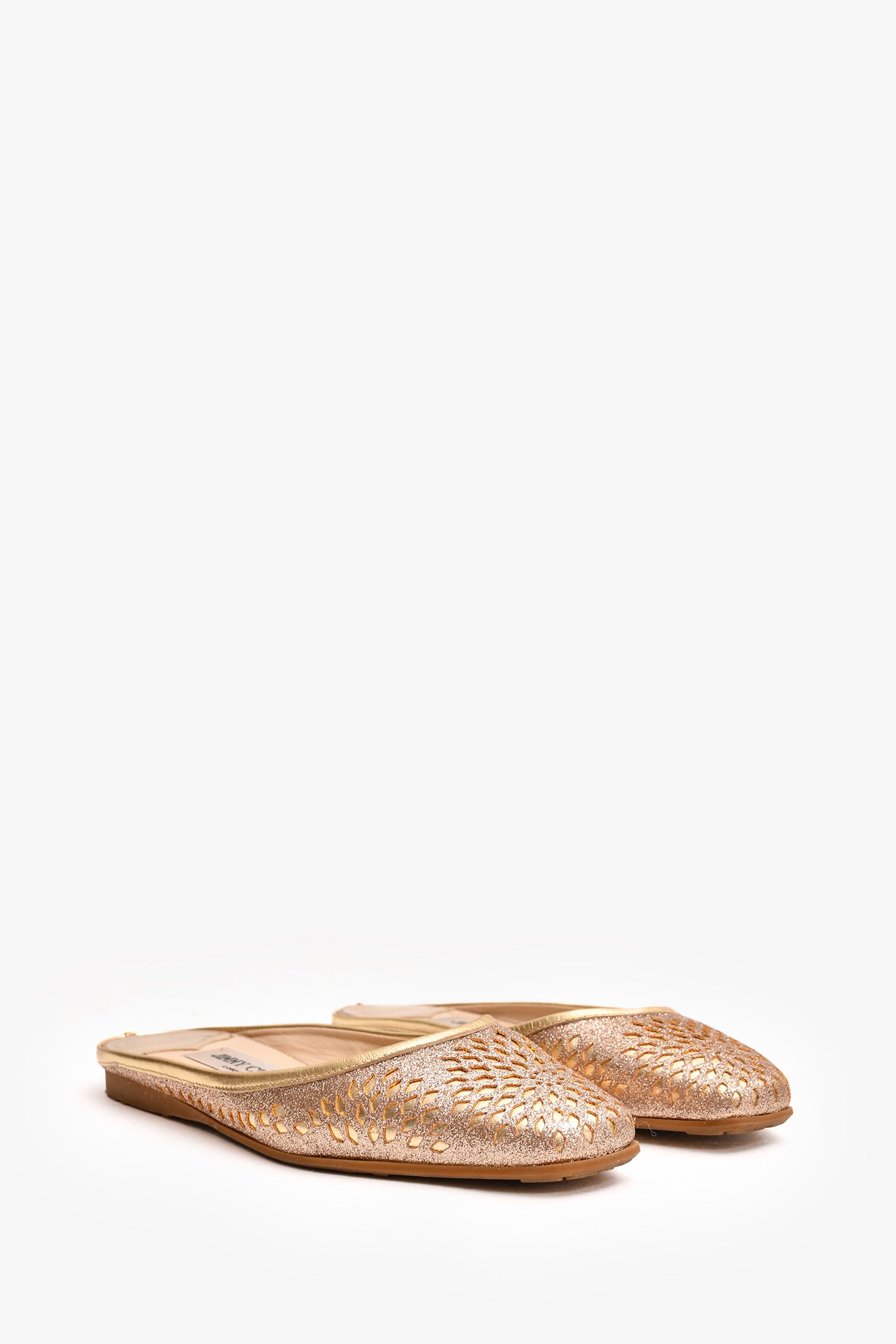 Jimmy Choo Gold Embellished Slip On Mules Size 36.5