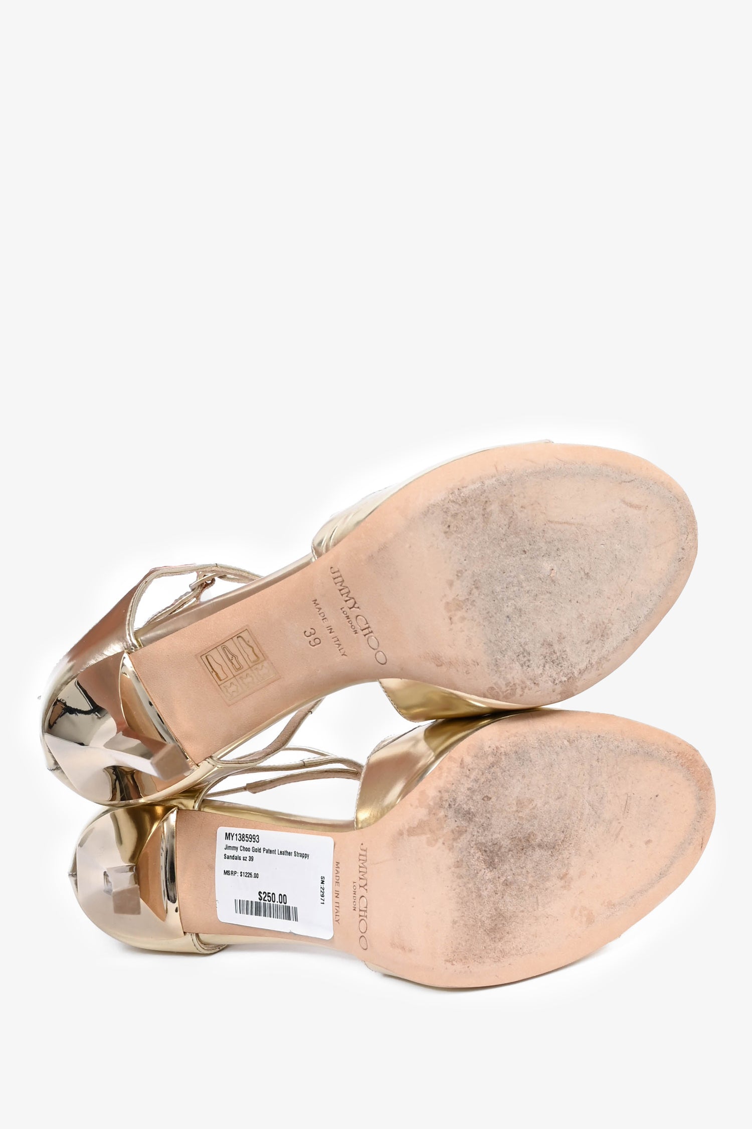 Jimmy Choo Gold Patent Leather Strappy Sandals Size 39