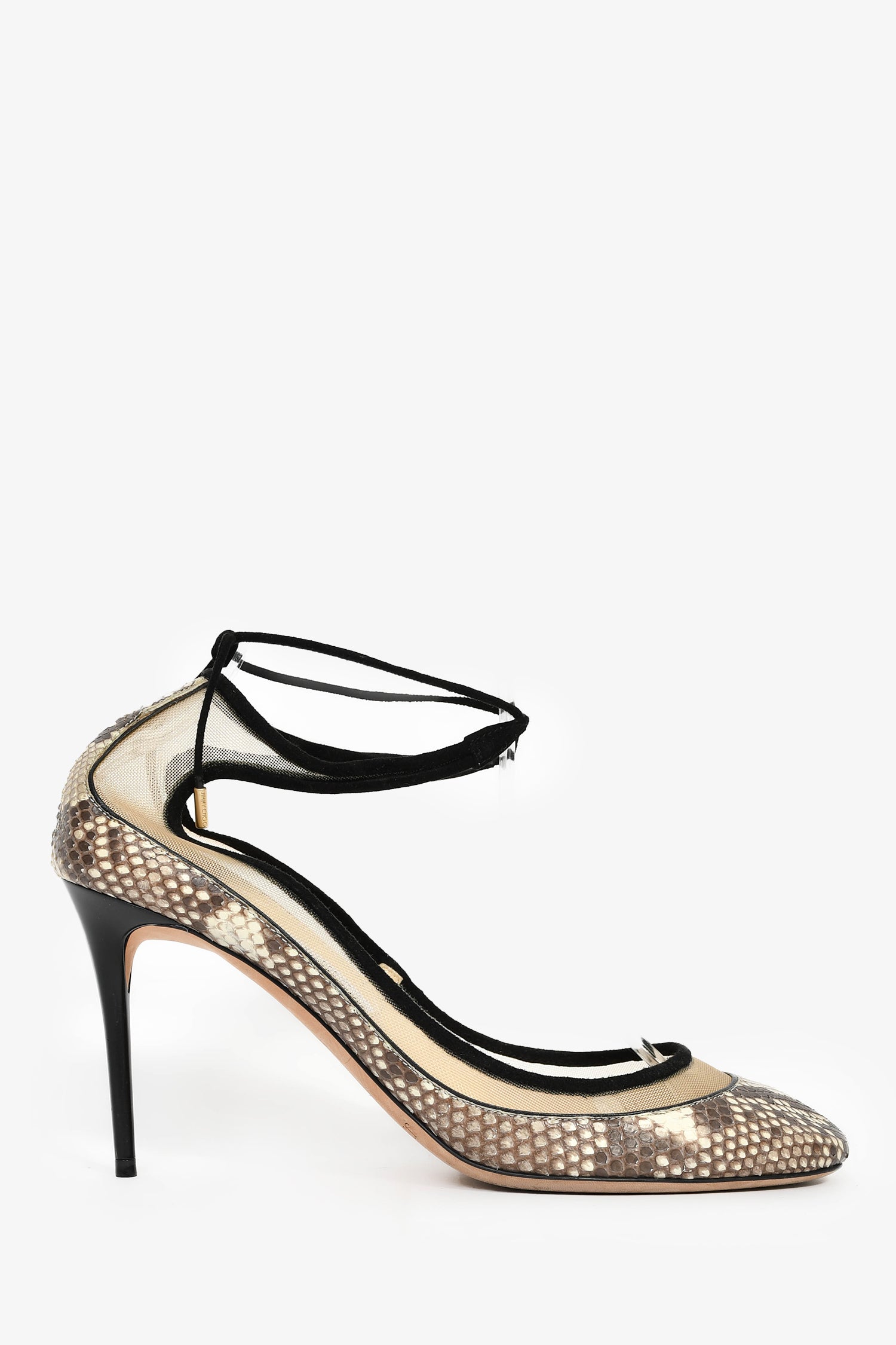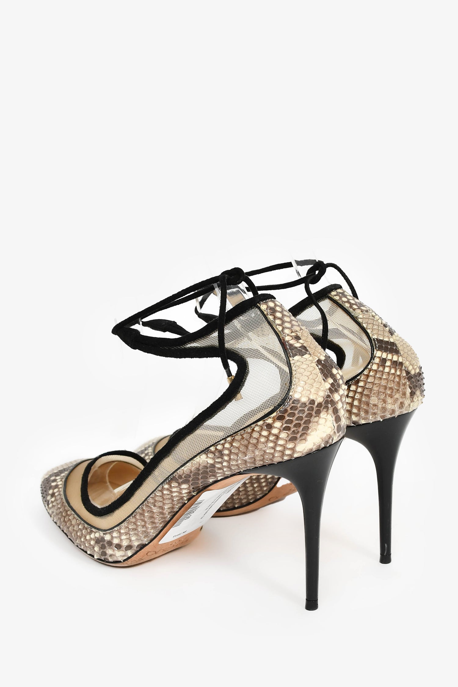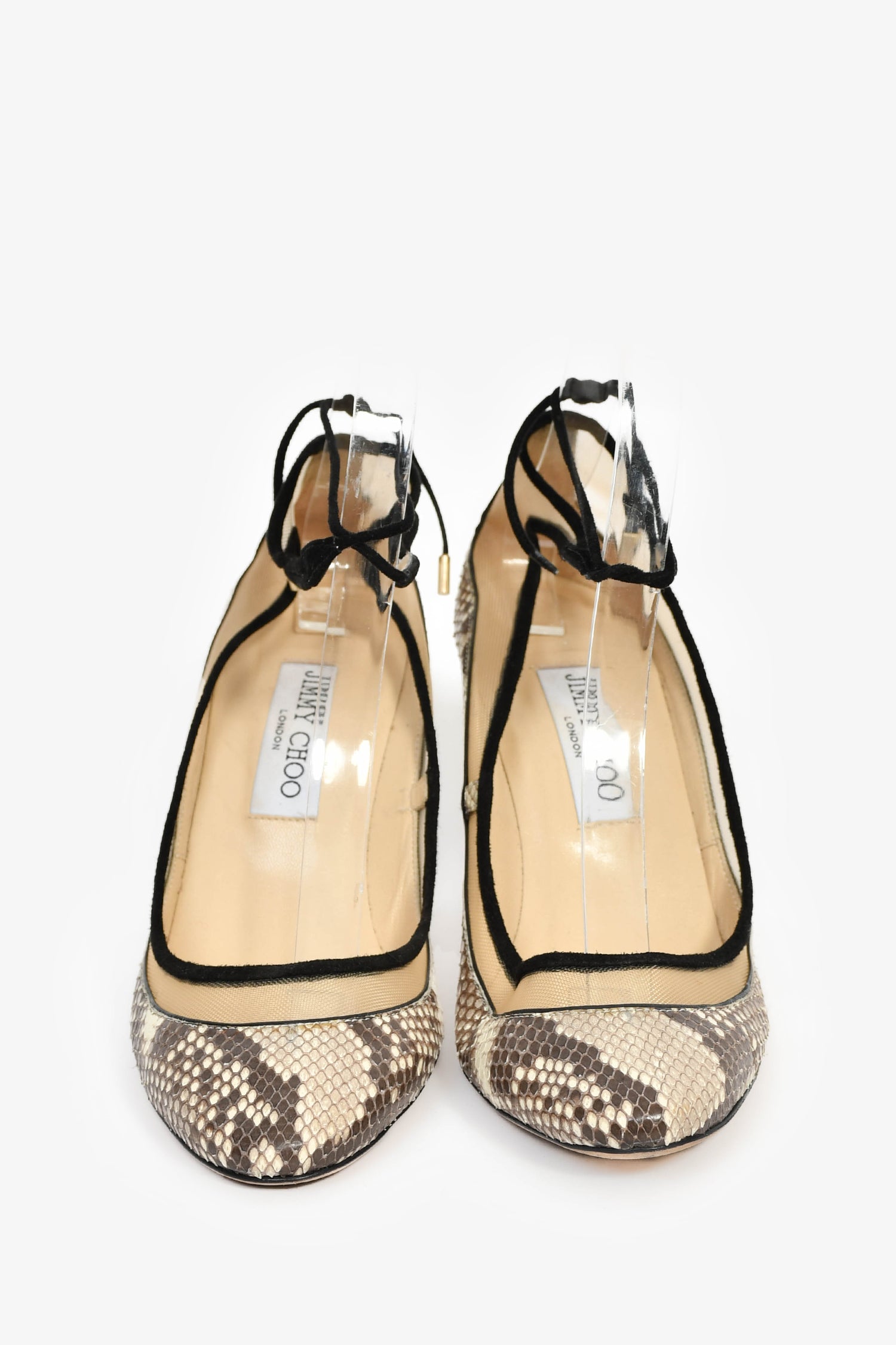 Jimmy Choo Snakeskin Suede Askle Tie Rounded Heels Size 39