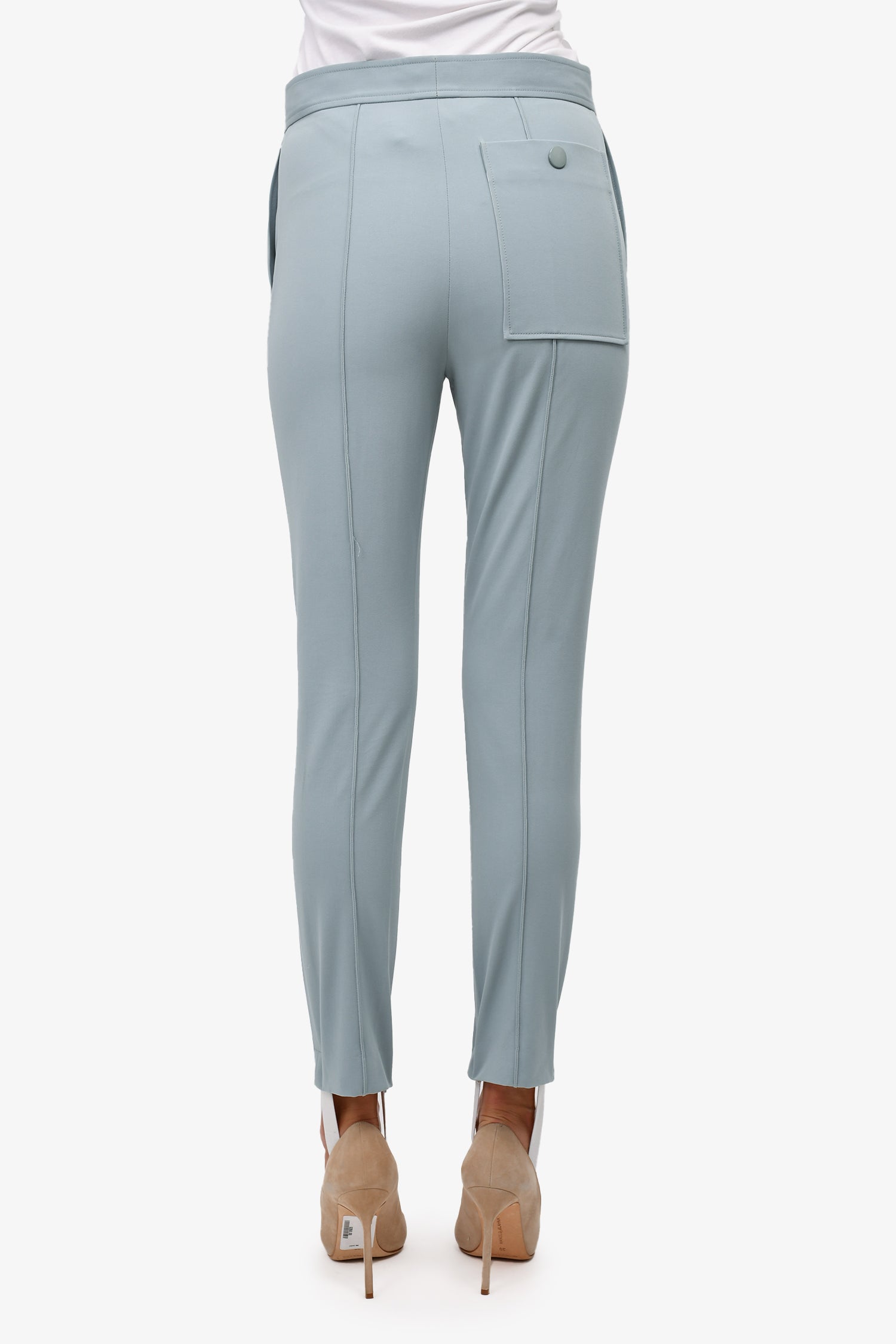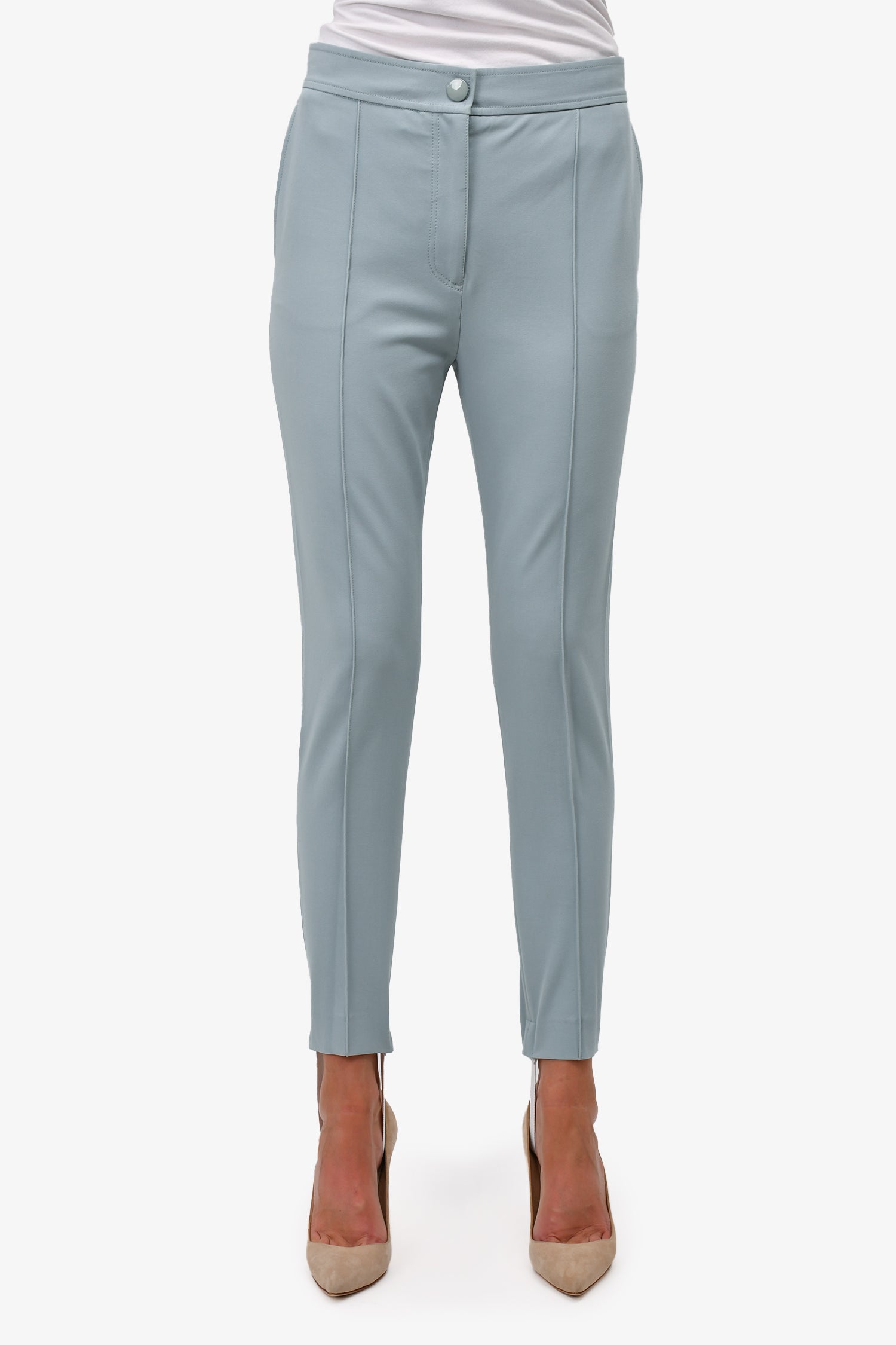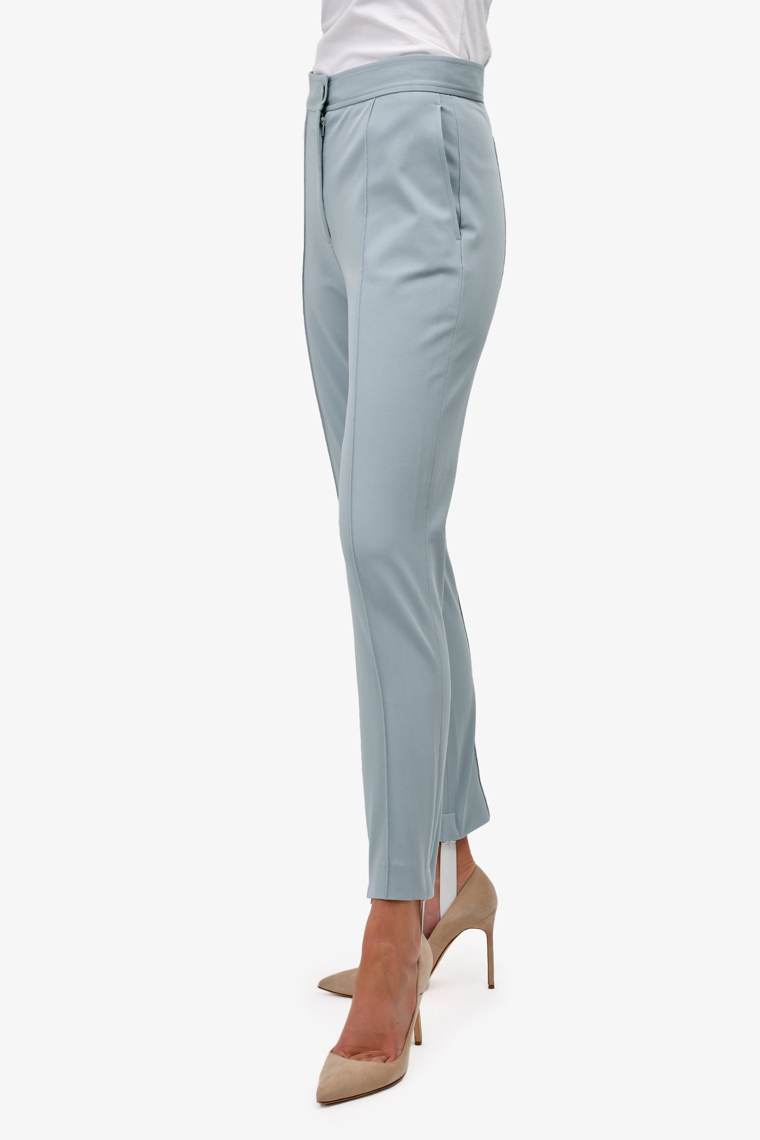 Refresh availabilityJoesph Blue Stirrup High Waisted Slim Leg Trousers. Front snap and zip closure. 2 front and 1 rear pockets.