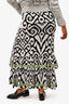 Johanna Ortiz Black/Cream Ruffle Detail Midi Skirt Size M