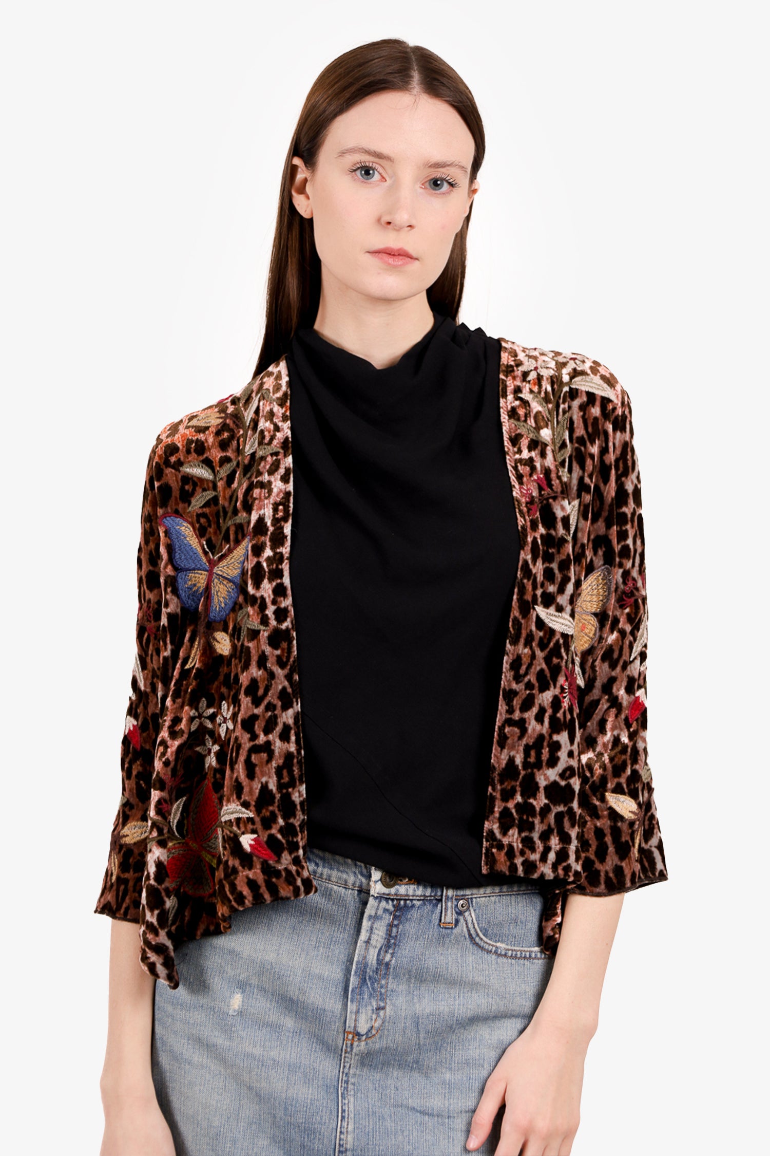 Refresh availabilityJohnny Was Penelope Velvet Leopard Print Cardigan. Open front. Unlined. Tonal stitching.