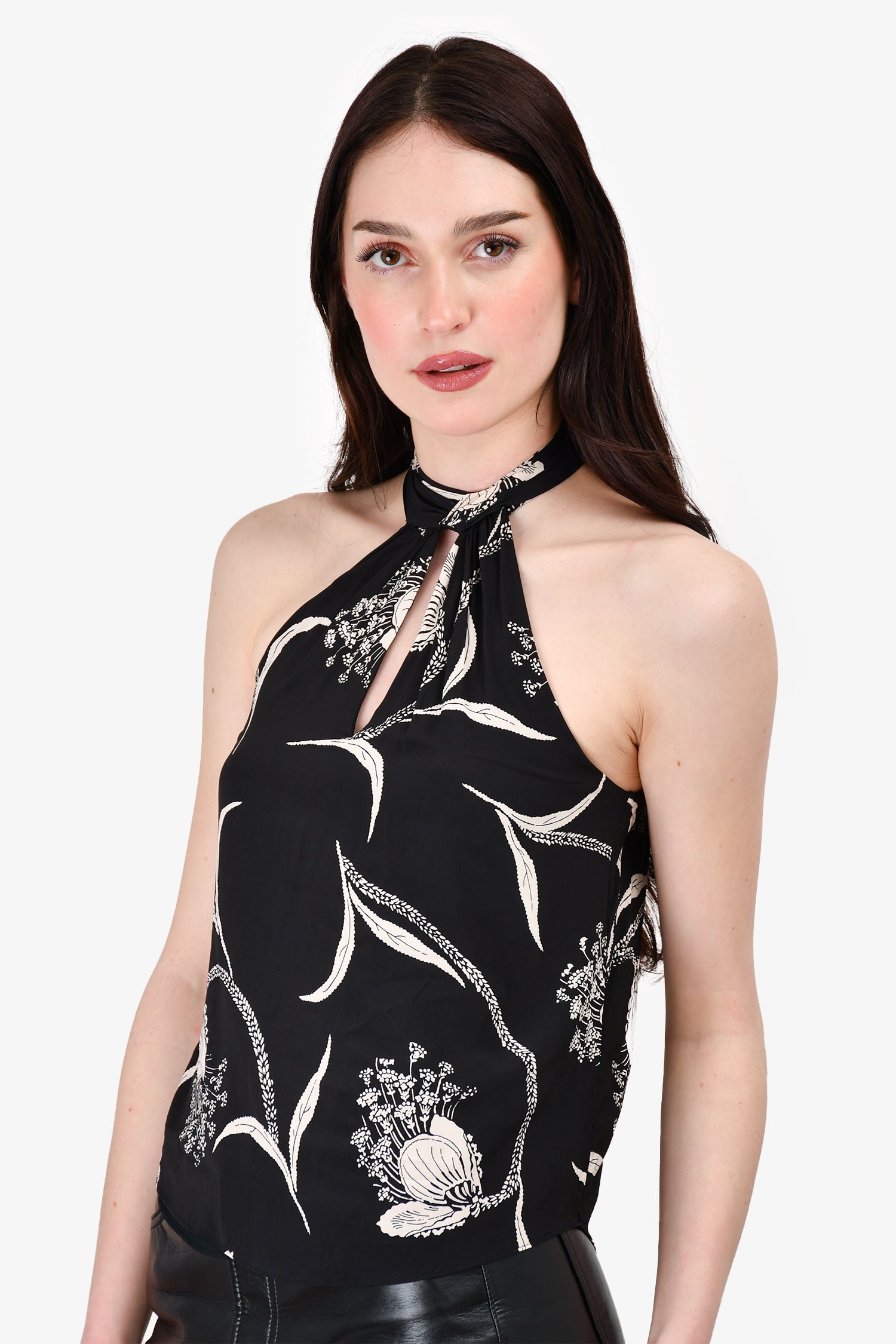 Joie Black/White Printed Chiffon Halter Neck Sleeveless Top Size XS