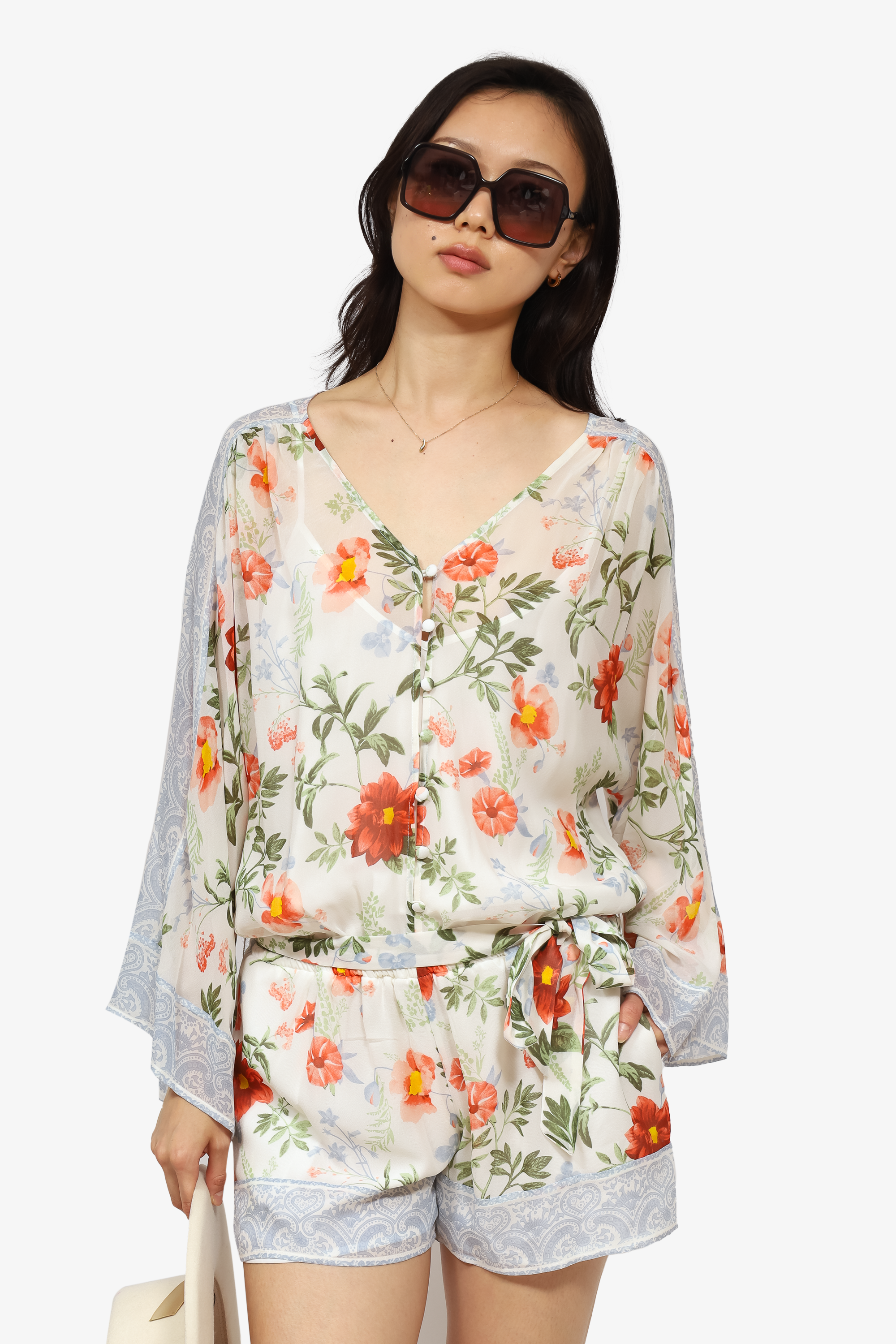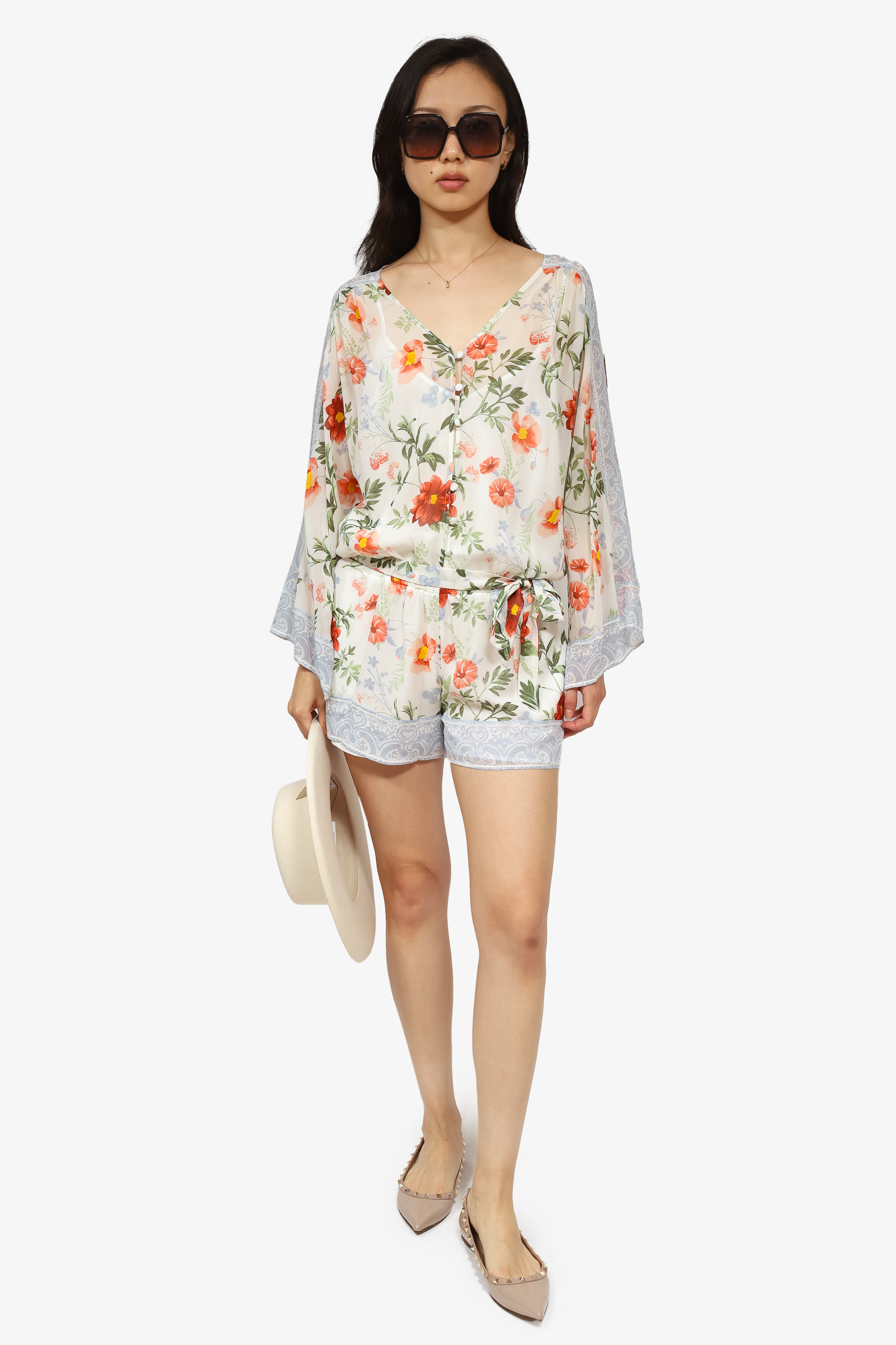 Joie Pink/Blue Silk Floral/Paisley Romper Size M