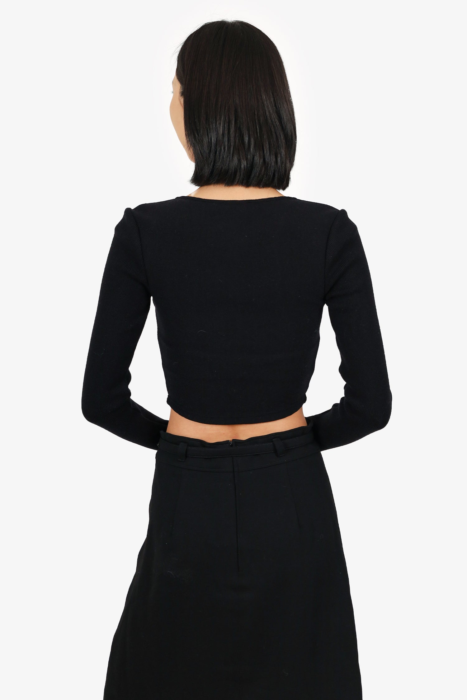 Jonathan Simkhai Black Bustier Ribbed Knit Long Sleeve Top Size S