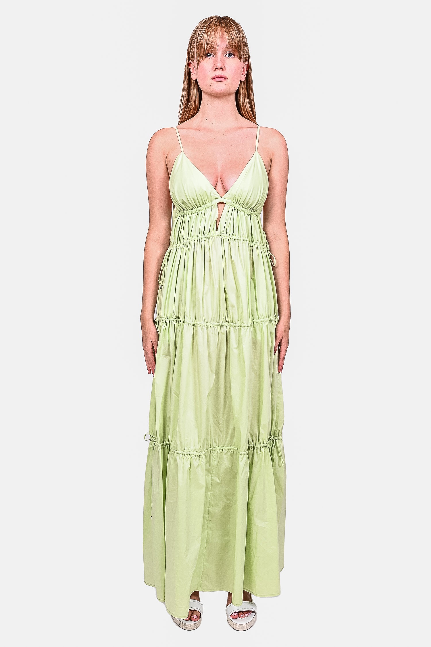 Refresh availabilityJonathan Simkhai Green "April" Tiered Maxi Dress. Tie-up closures. Tonal stitching.