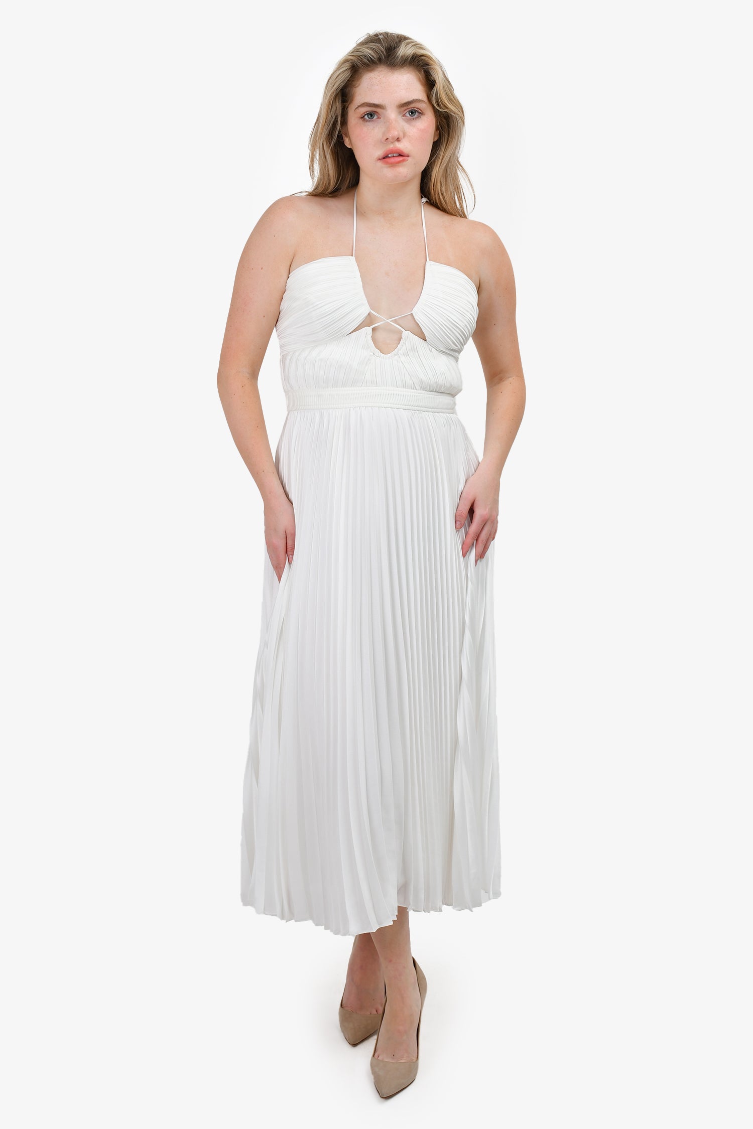 Jonathan Simkhai White Pleated Cut Out Detail Halter Dress Size 6