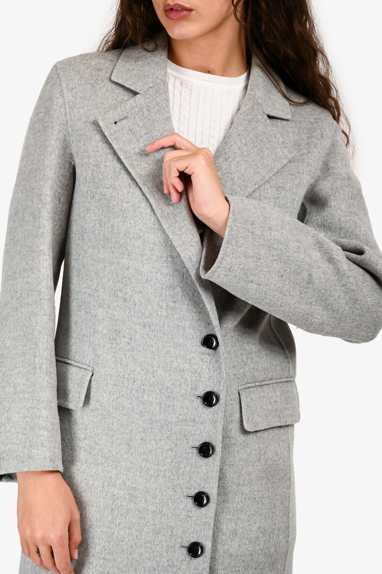 Refresh availabilityJoseph Grey Wool/Cashmere Midi Coat. Slip-on. Front button-up closure. Notche lapel. 2 exterior flap pockets. Rear vent. Unlined. Tonal stitching.