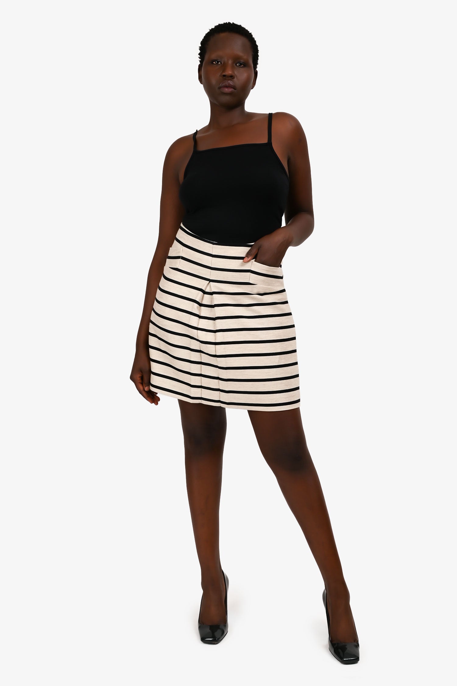 Refresh availabilityJudith & Charles Cream/Black Sorrel Striped A-Line Mini Skirt. Rear zip closure. Lined. Front pockets.