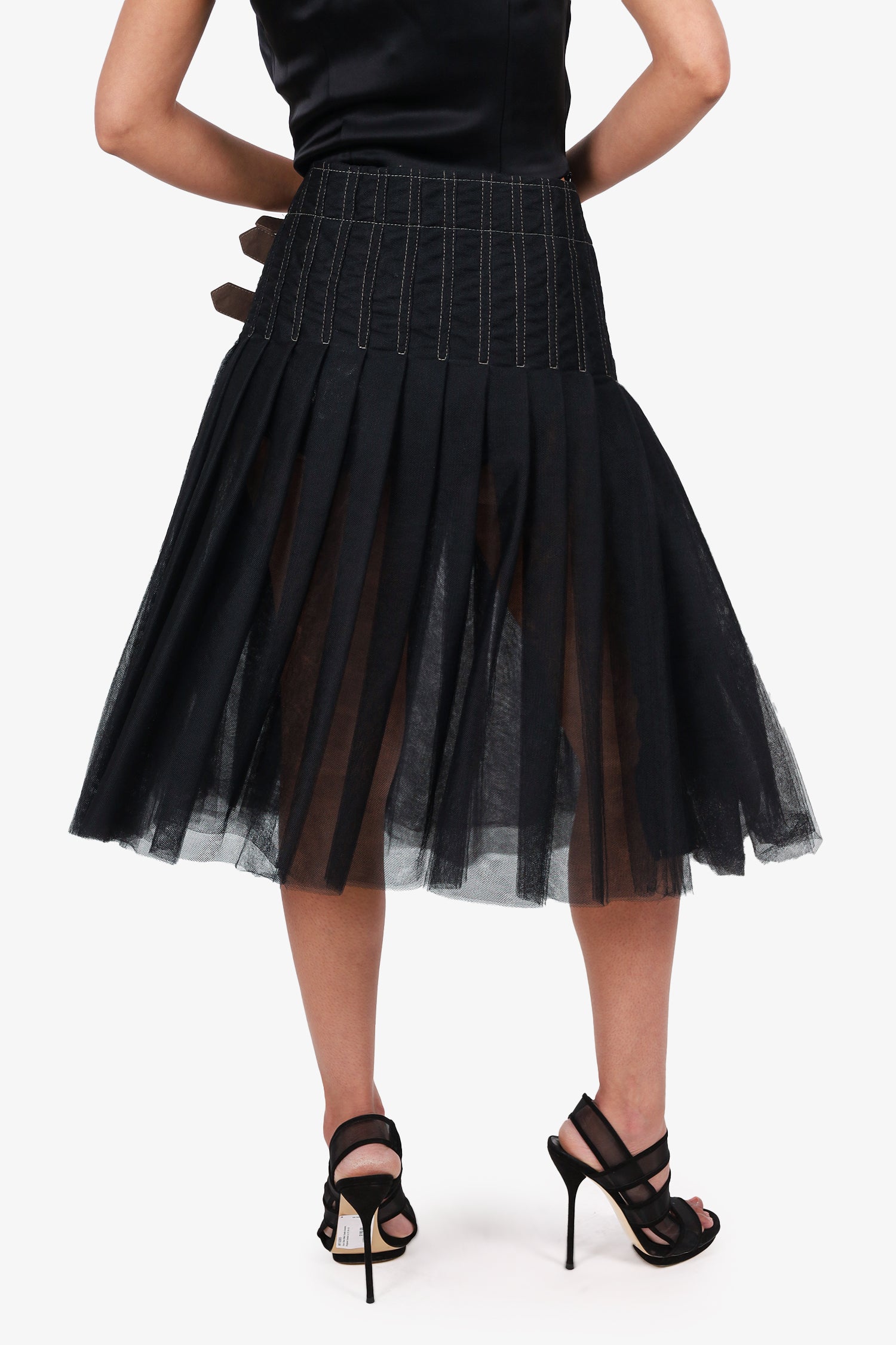 Junya Watanabe Comme des Garcons Black Tulle Pleated Kilt Skirt Size XS