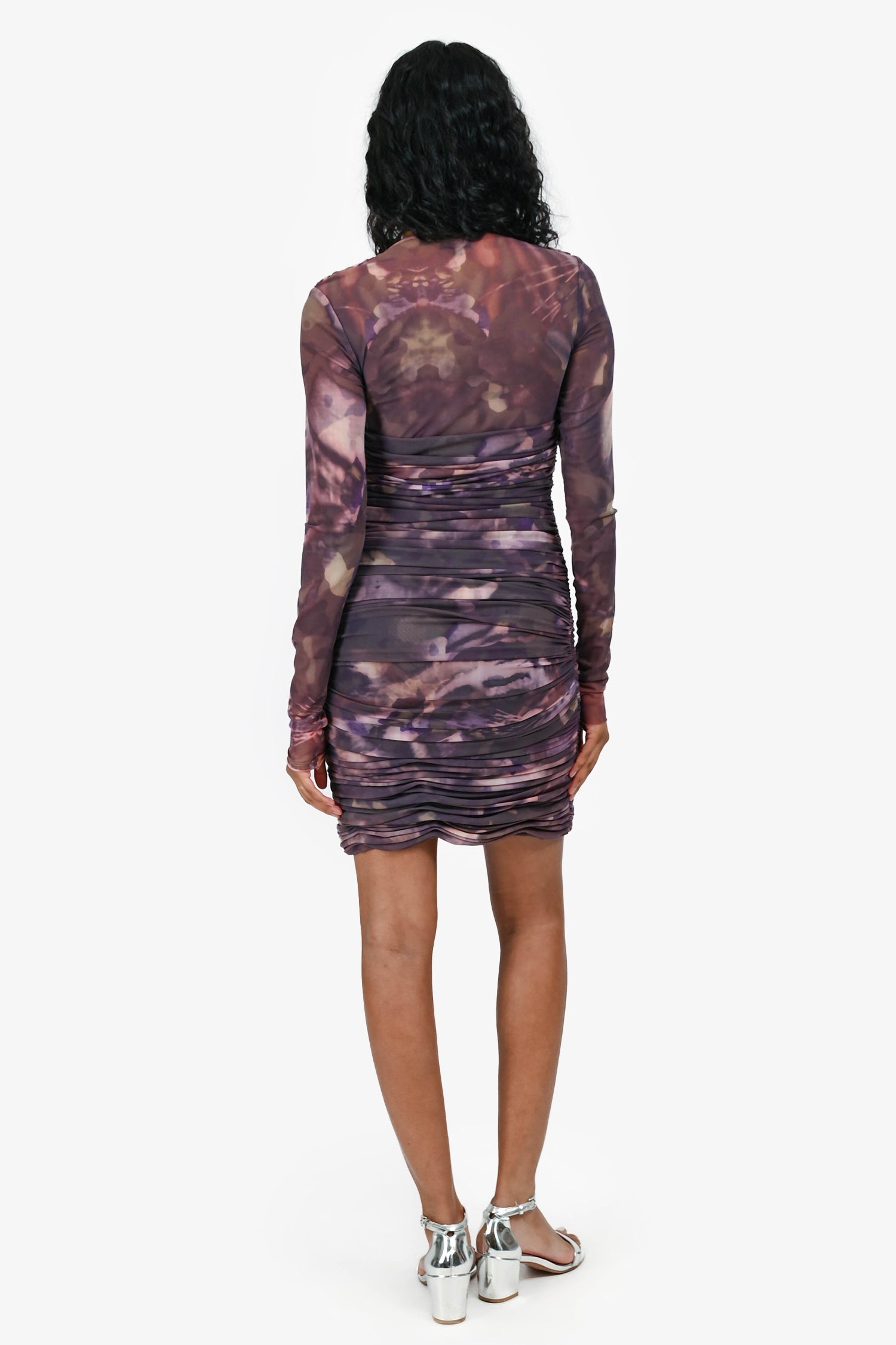 Just Cavalli Purple Crystal Embellished Ruched Long Sleeves Mini Dress Size S