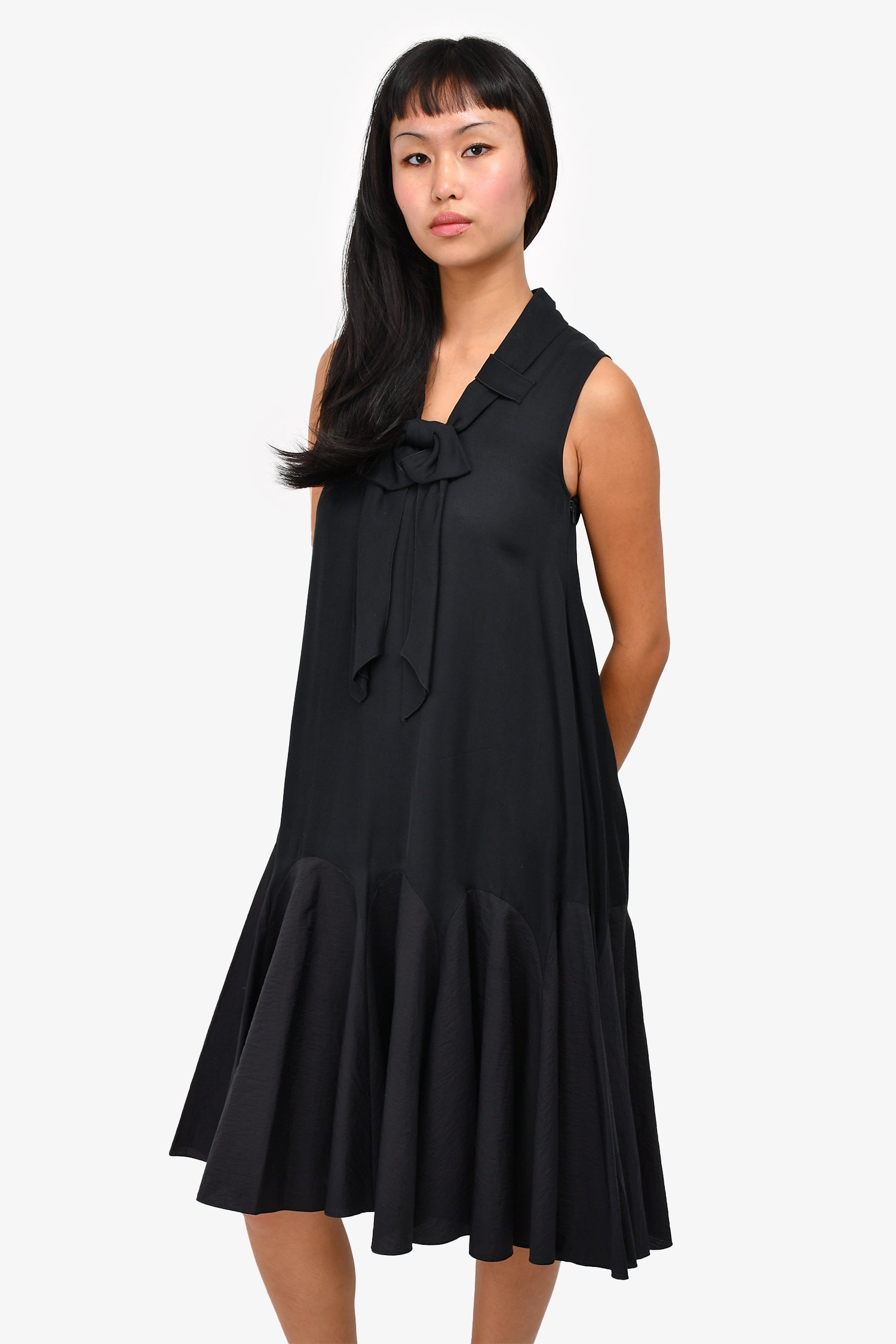 Refresh availabilityJW Anderson Black Cotton Blend Drop Waist Sleeveless Flared Midi Dress. Side zip closure. Unlined.