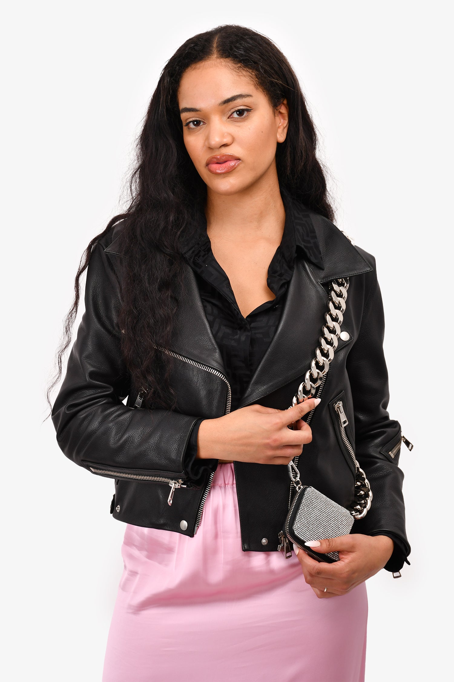 Kara Silver/Black Crystal/Leather Chain Small Wallet