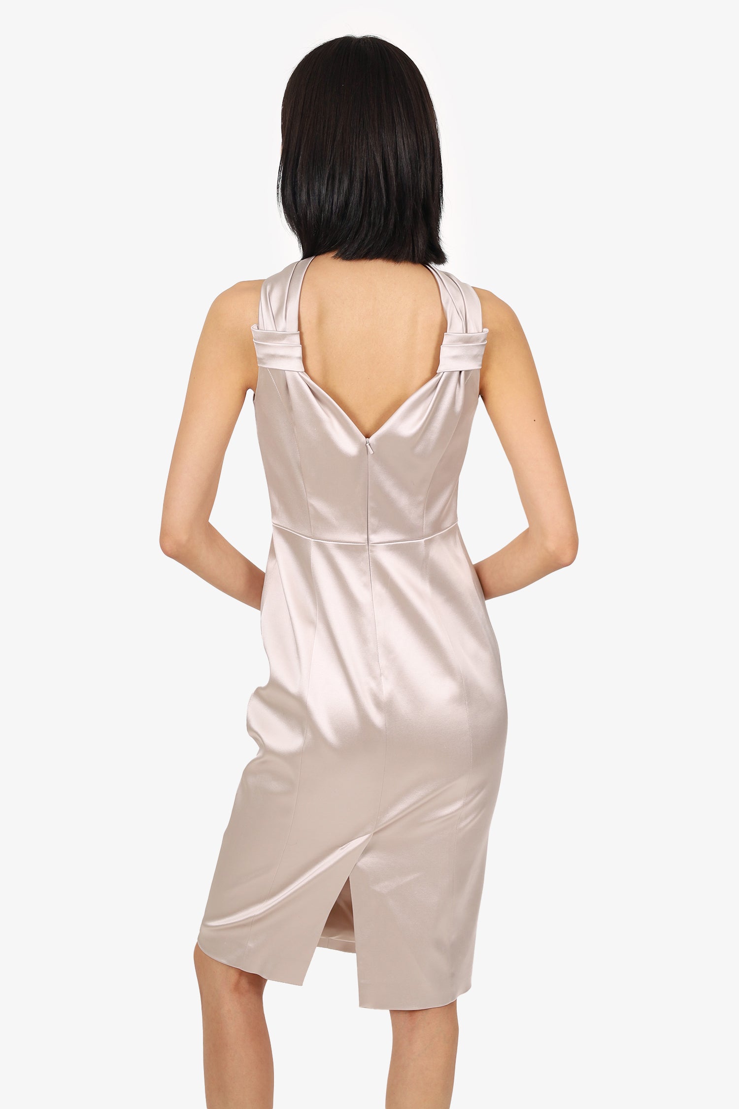Karen Millen Champagne Satin Draped Crisscross Dress Size 38
