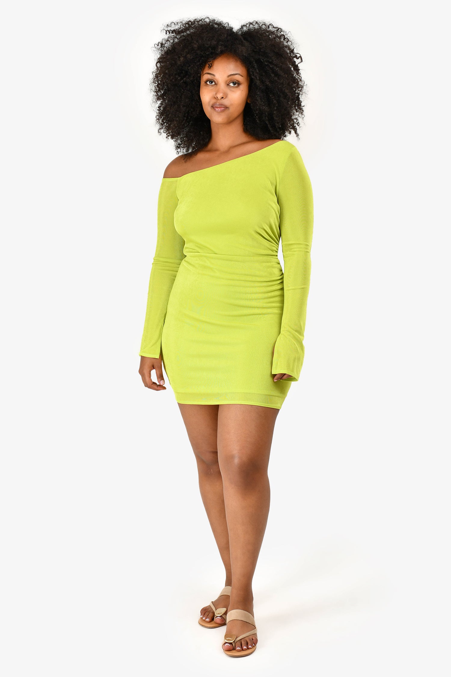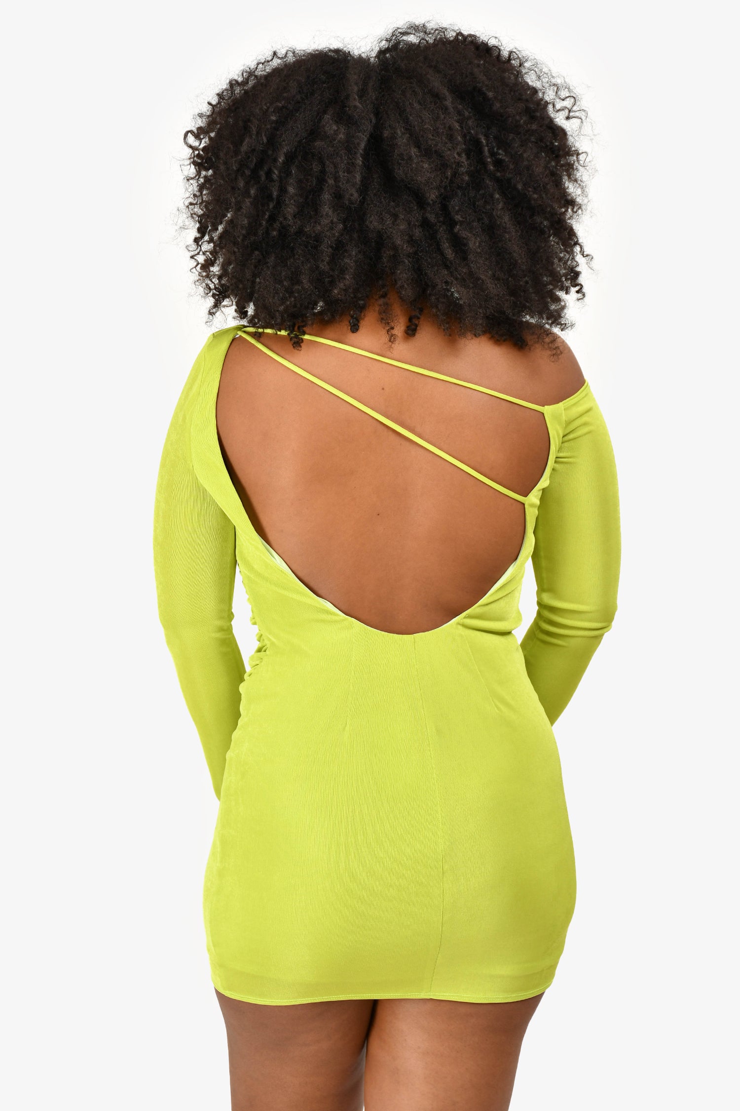 Refresh availabilityKatie May Green Open Back Long Sleeves 'Catalyst' Mini Dress. Features a small slit on the cuffs. Tonal stitching.
