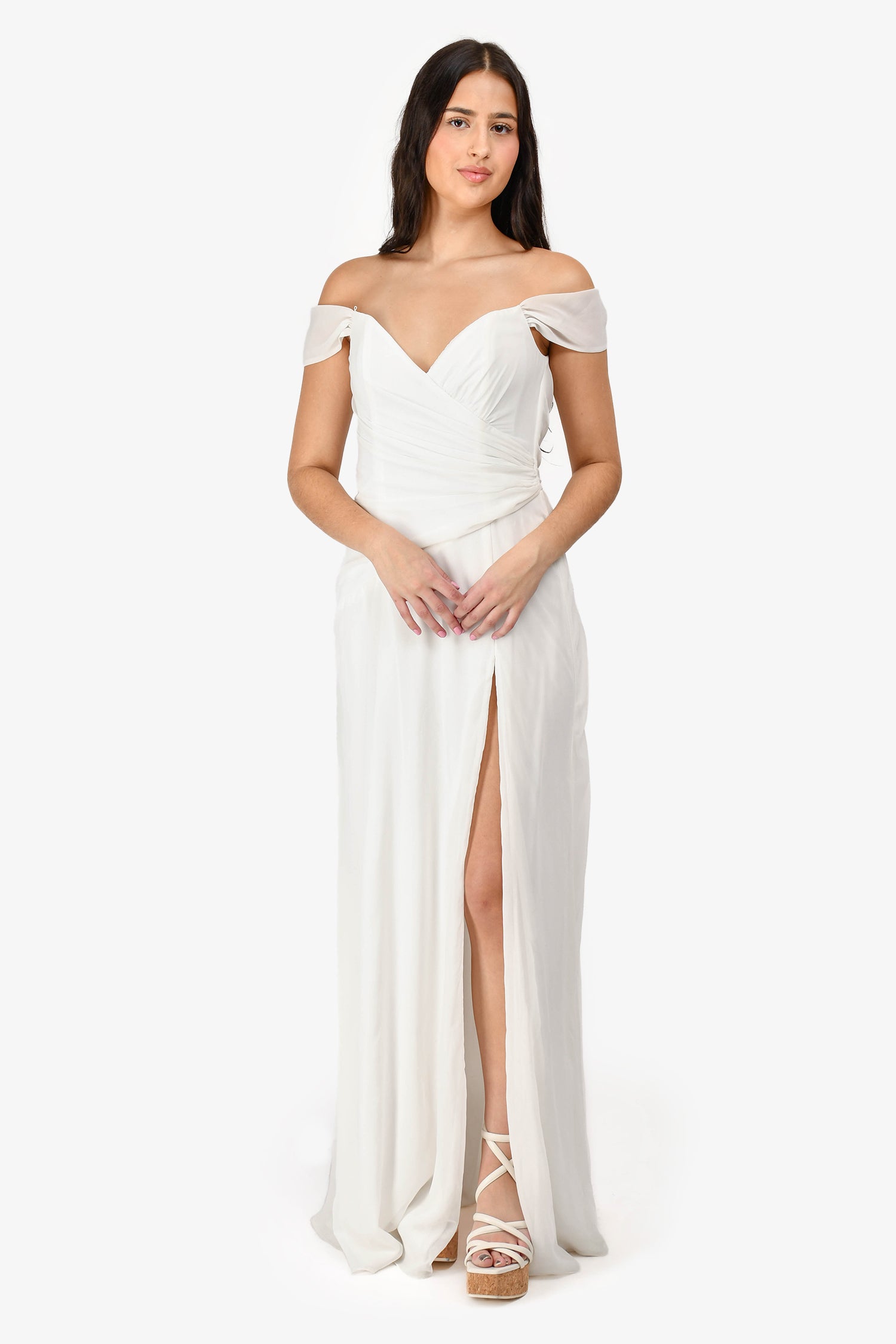 Katie May White Ruched 'Darcy' Gown Size XS with Tags