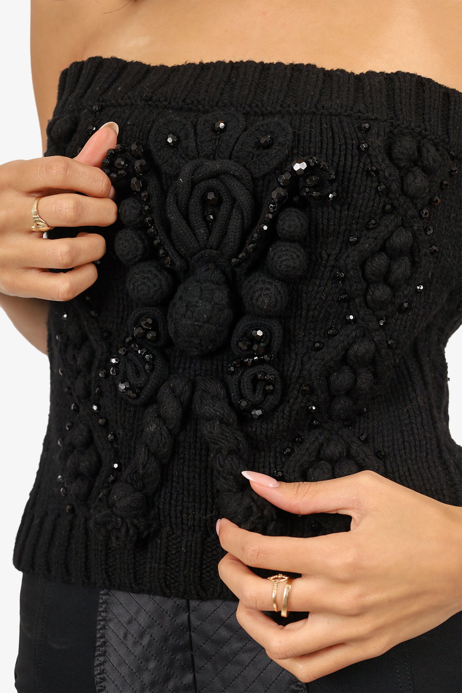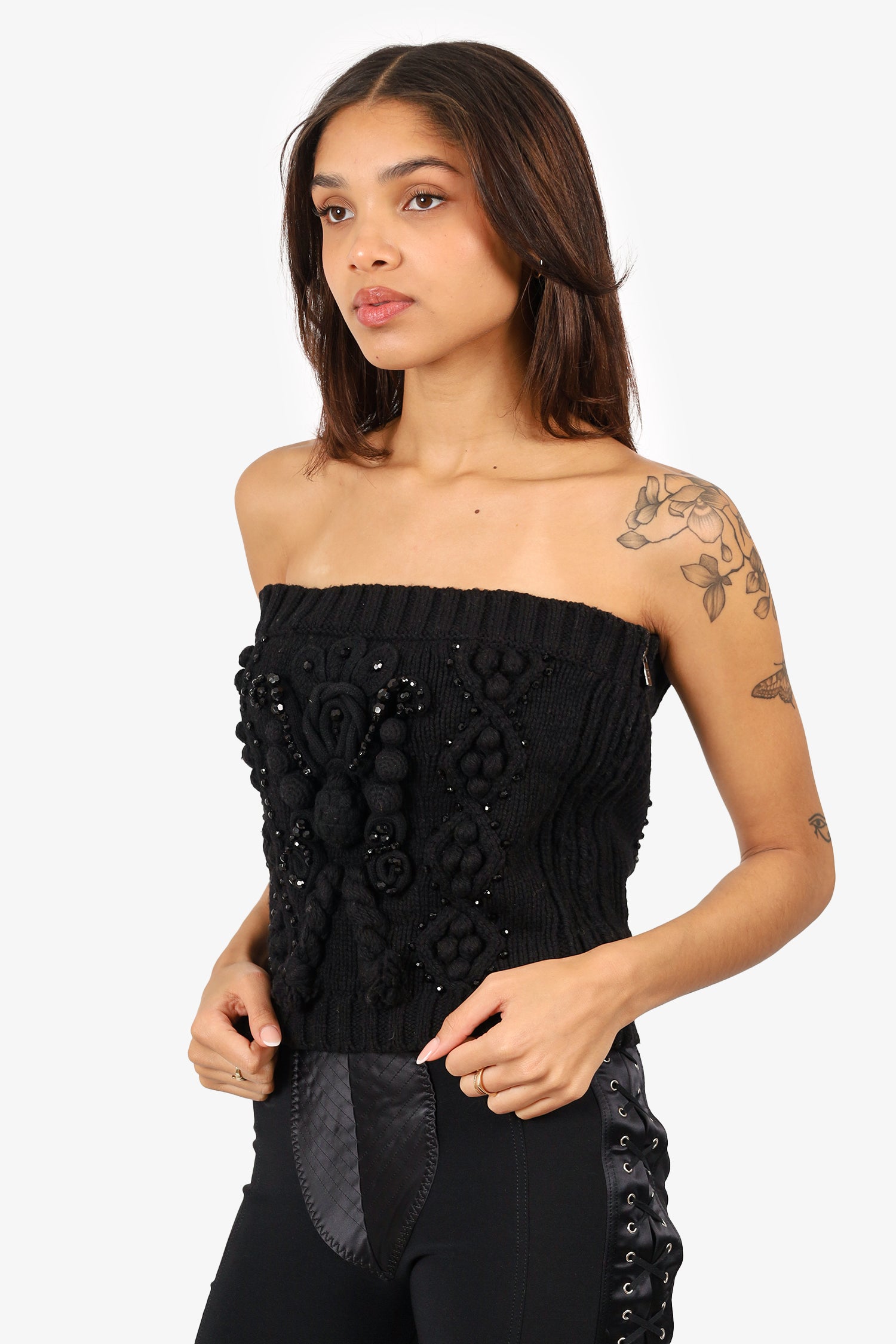 Kenzo Black Wool Knit Embellished Sleeveless Top Size L