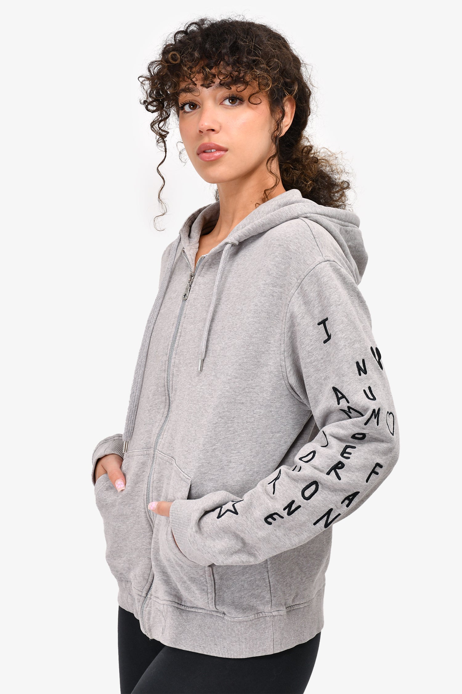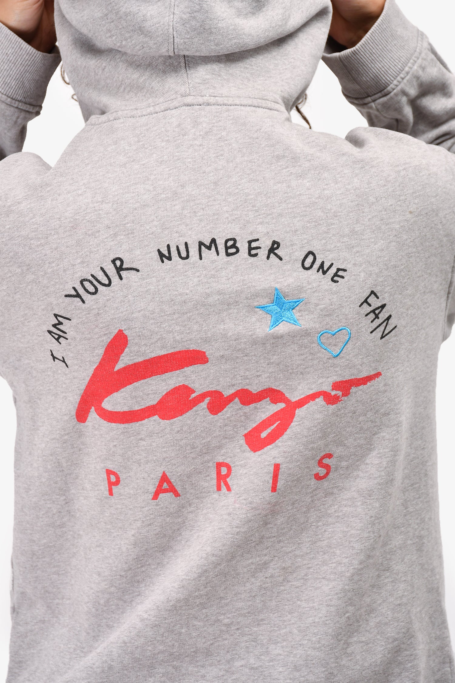 Refresh availabilityKenzo Grey Logo Printed Embroidery Detailed Zip-Up Hoodie. Front pockets.