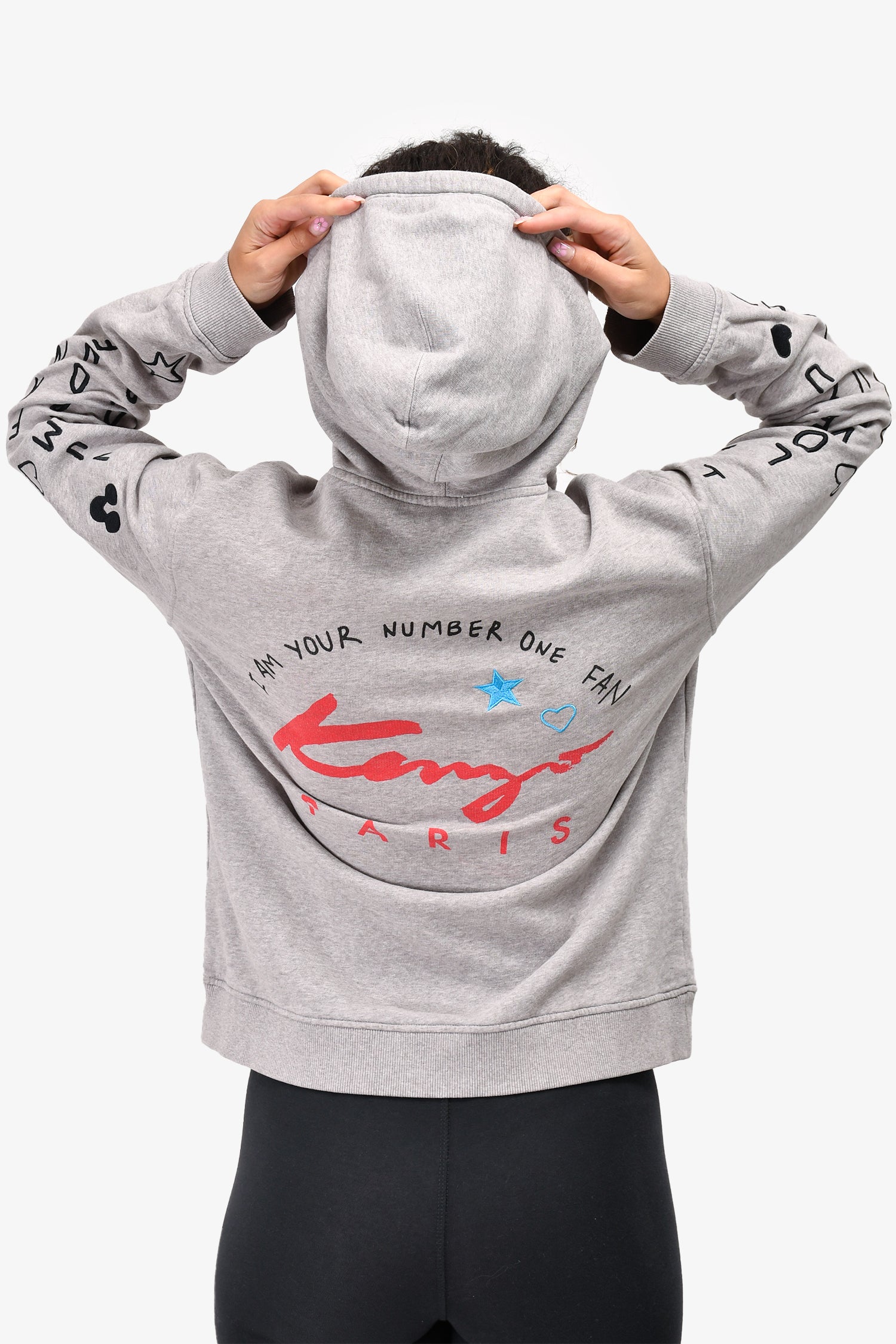 Kenzo Grey Logo Printed Embroidery Detailed Zip-Up Hoodie Size M (As Is)