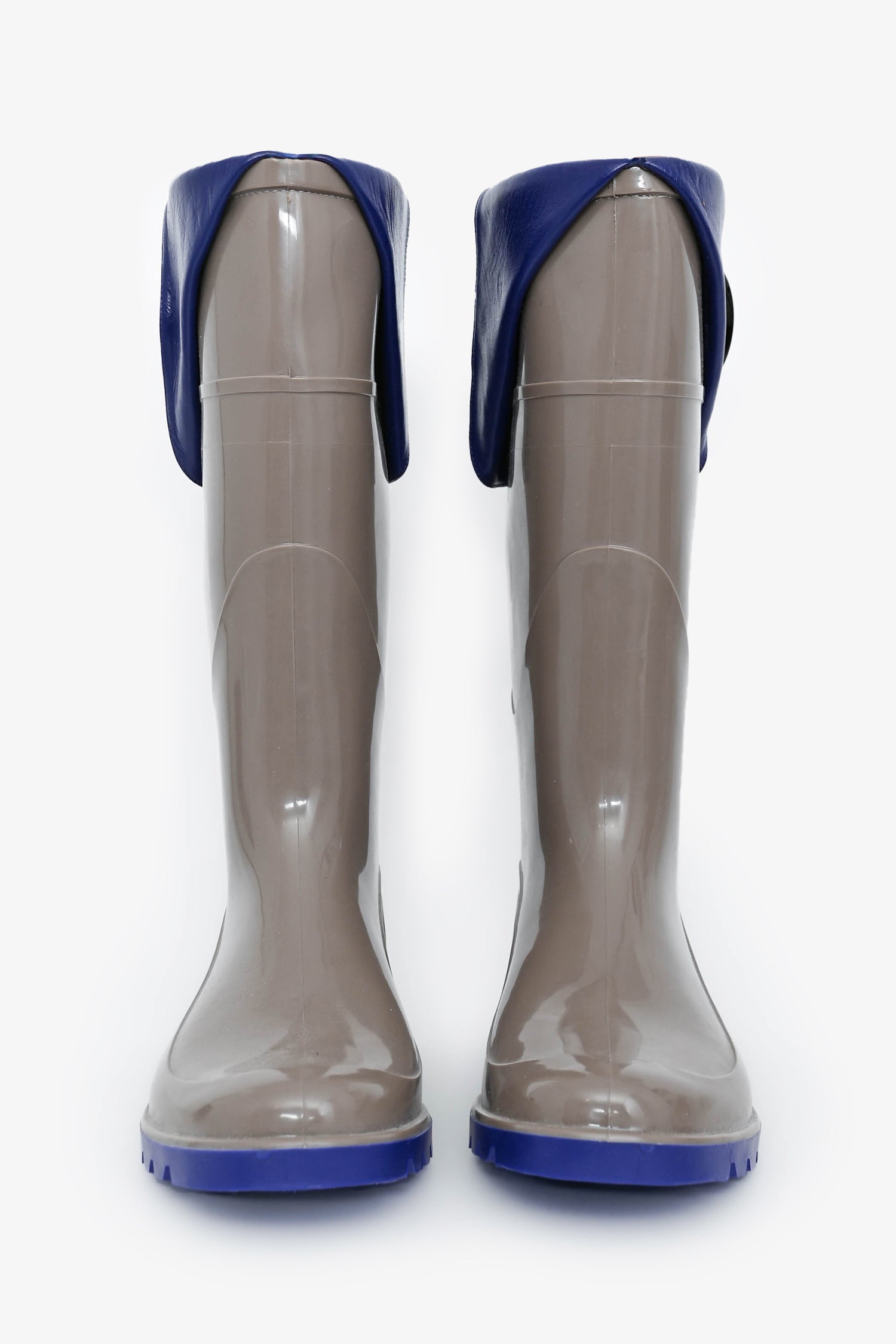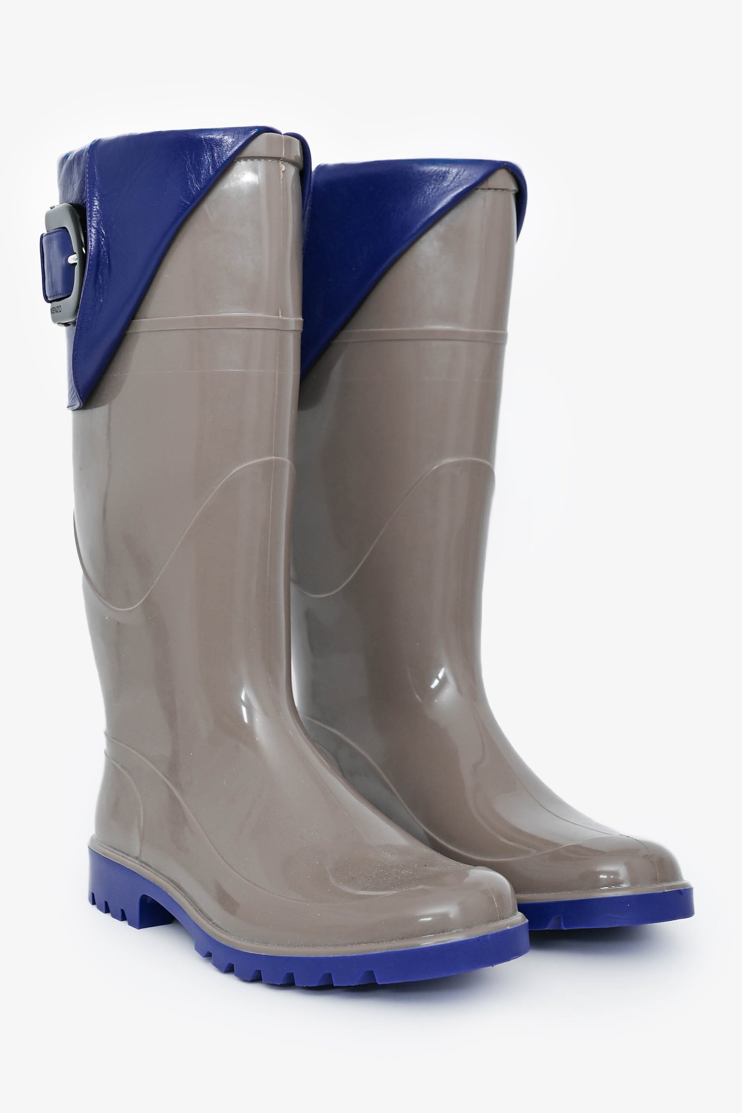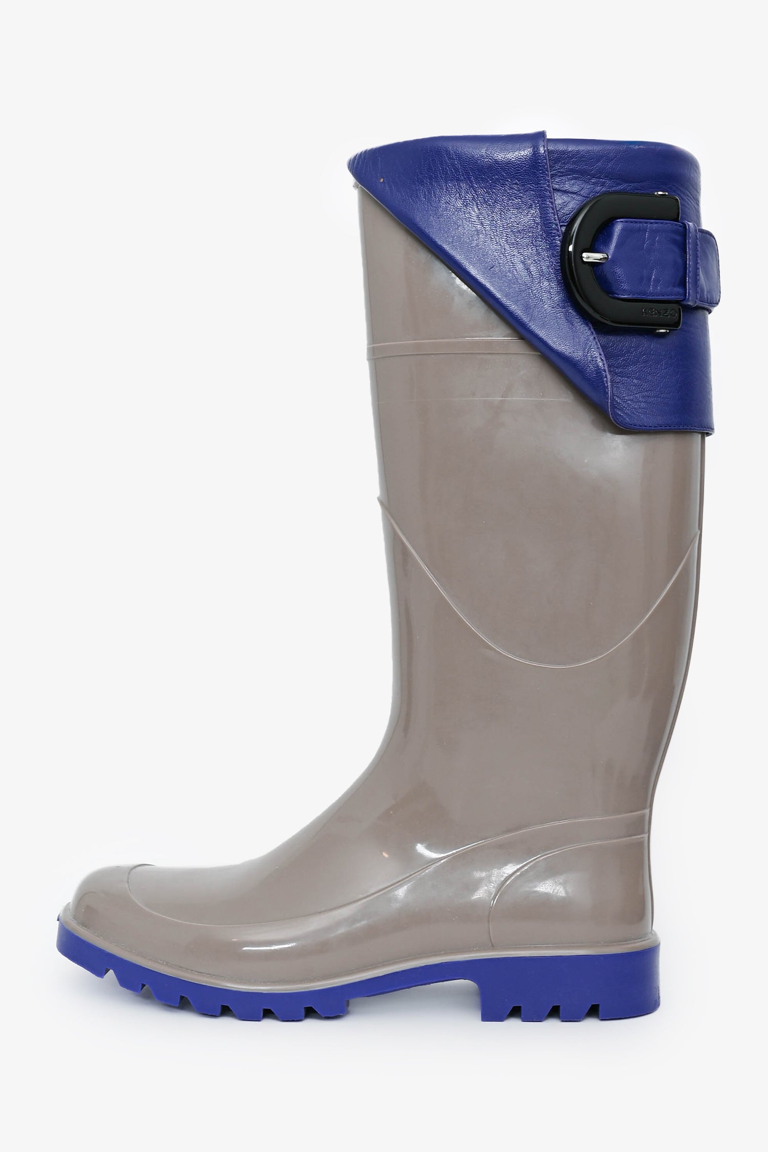Kenzo Taupe/Purple Rubber/Leather Buckle Detail Rain Boots Size 35