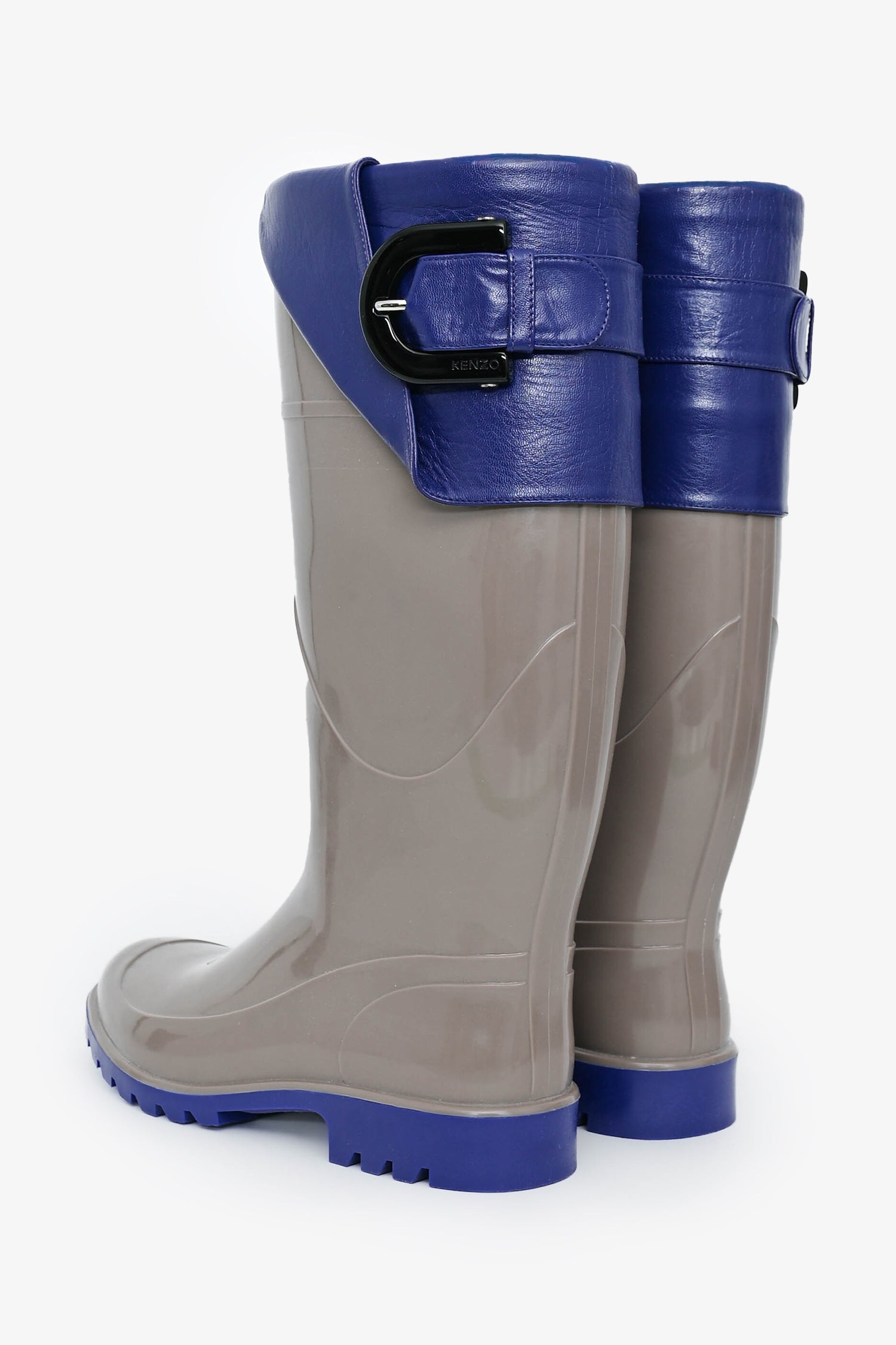 Refresh availabilityKenzo Taupe/Purple Rubber/Leather Buckle Detail Rain Boots. Pull-on. Round toe. Glossy finish.