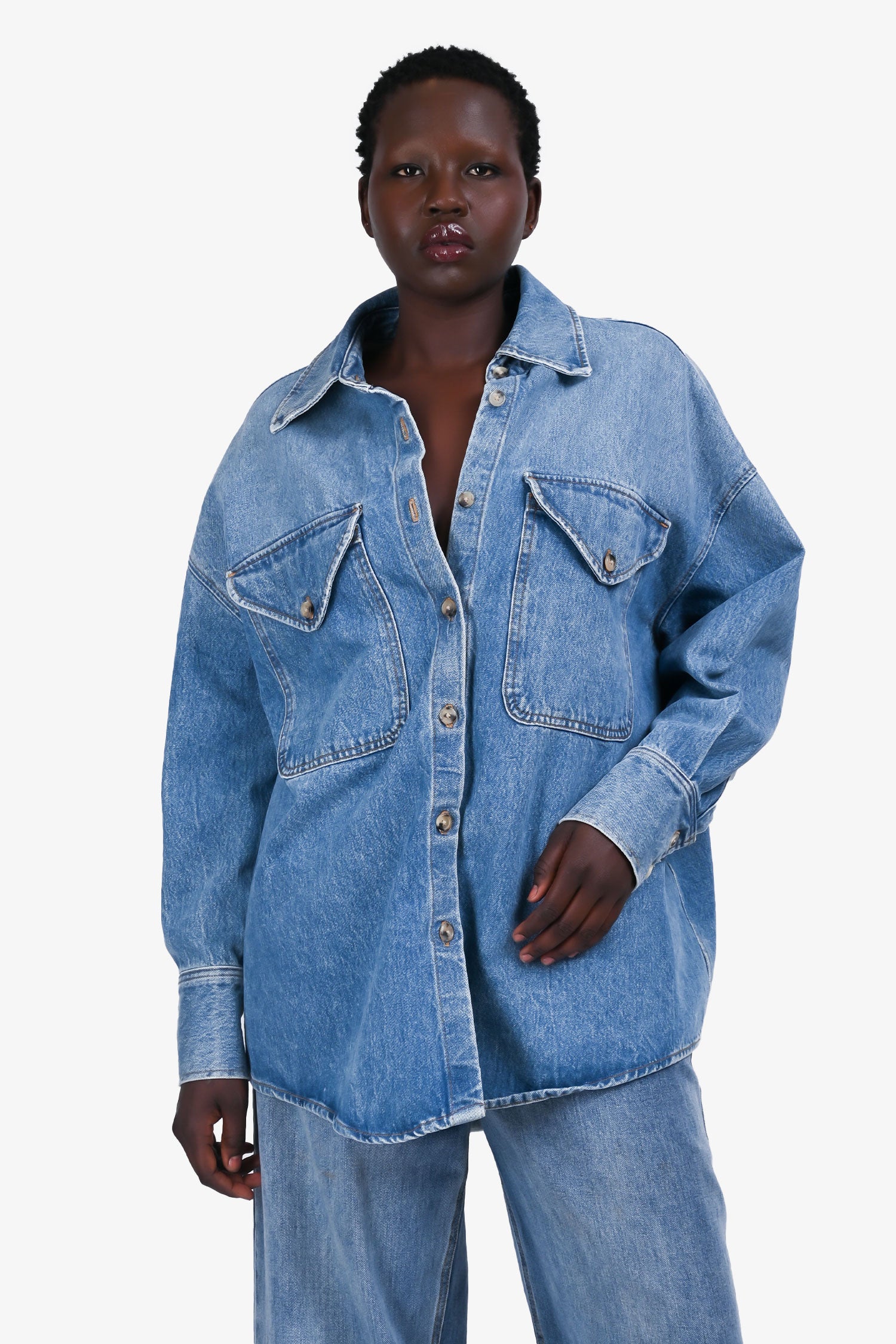 Khaite Blue Denim Button Down Oversized Jacket Size XS