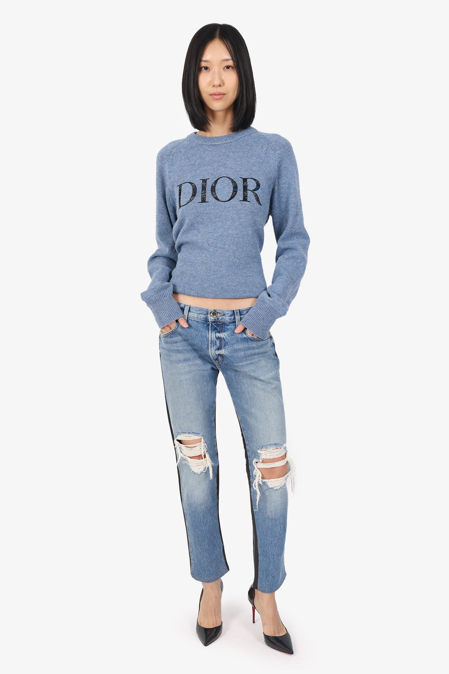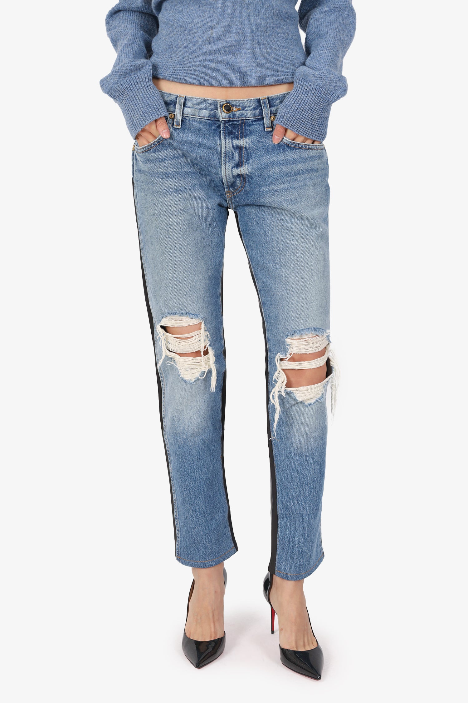 Khaite Blue/Black Denim/Leather Distressed Jeans Size 25