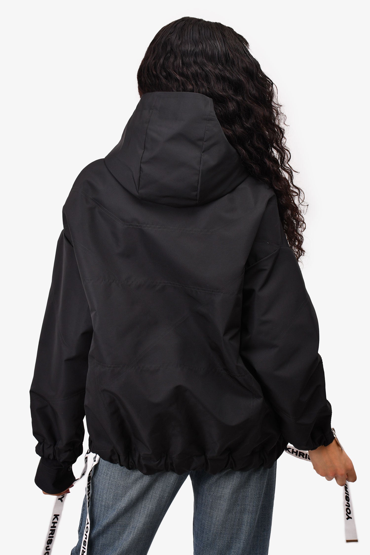 Khrisjoy Black Oversized Windbreaker Jacket with Logo Drawstrings