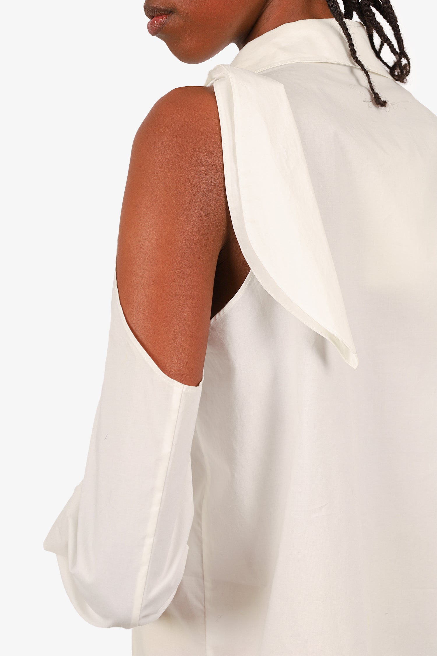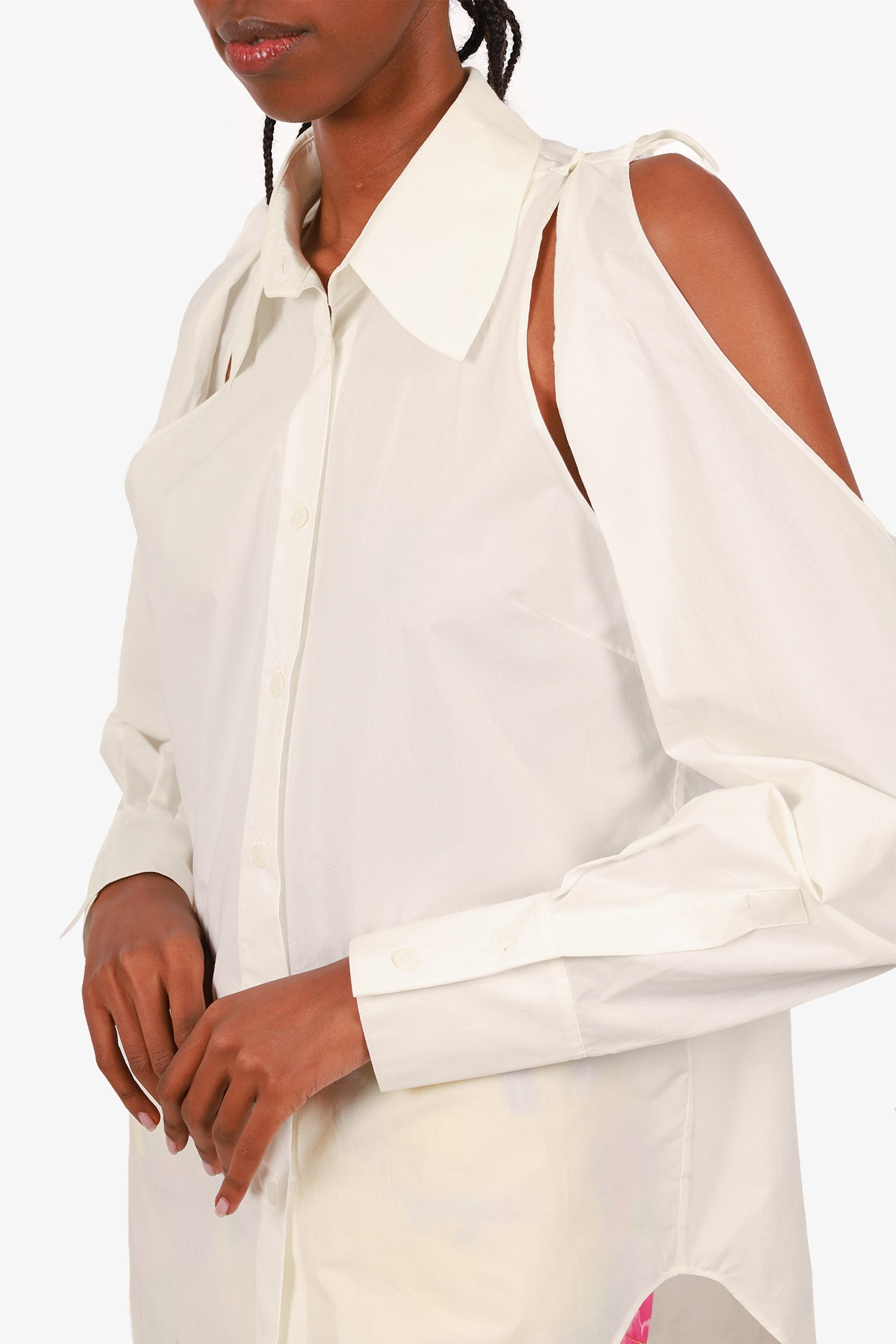 Kimhekim White Detachable Sleeve Button Up Shirt Size 36