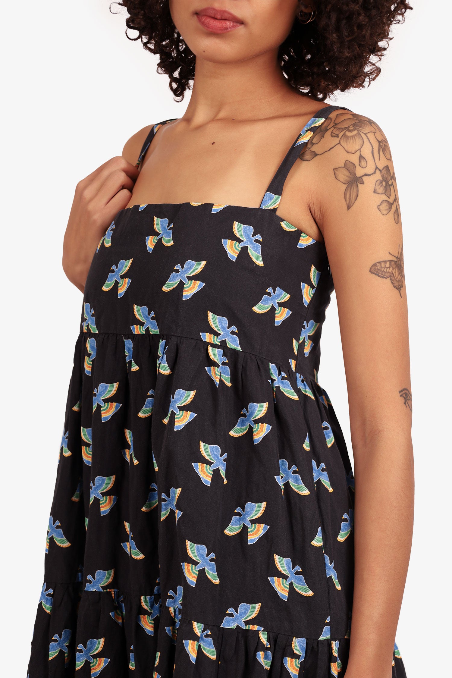 Refresh availabilityLa Double J Black Bird Print Maxi Dress. Pull-on. Side zip closure. Elasticated panel at back. Tonal stitching.