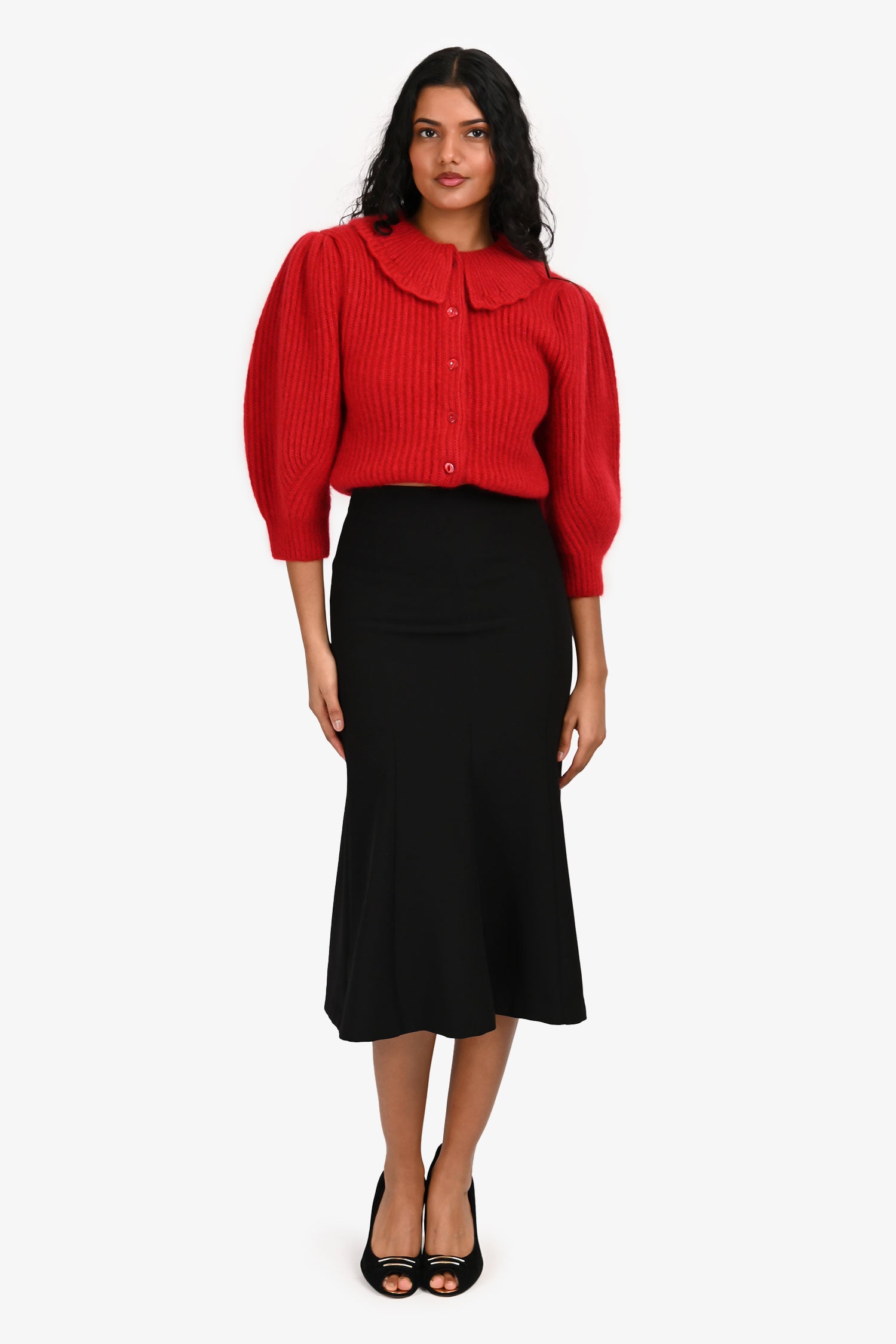 Refresh availabilityL'academie Black A Line Midi Skirt. Concealed rear zipper. Flared. Tonal stitching.