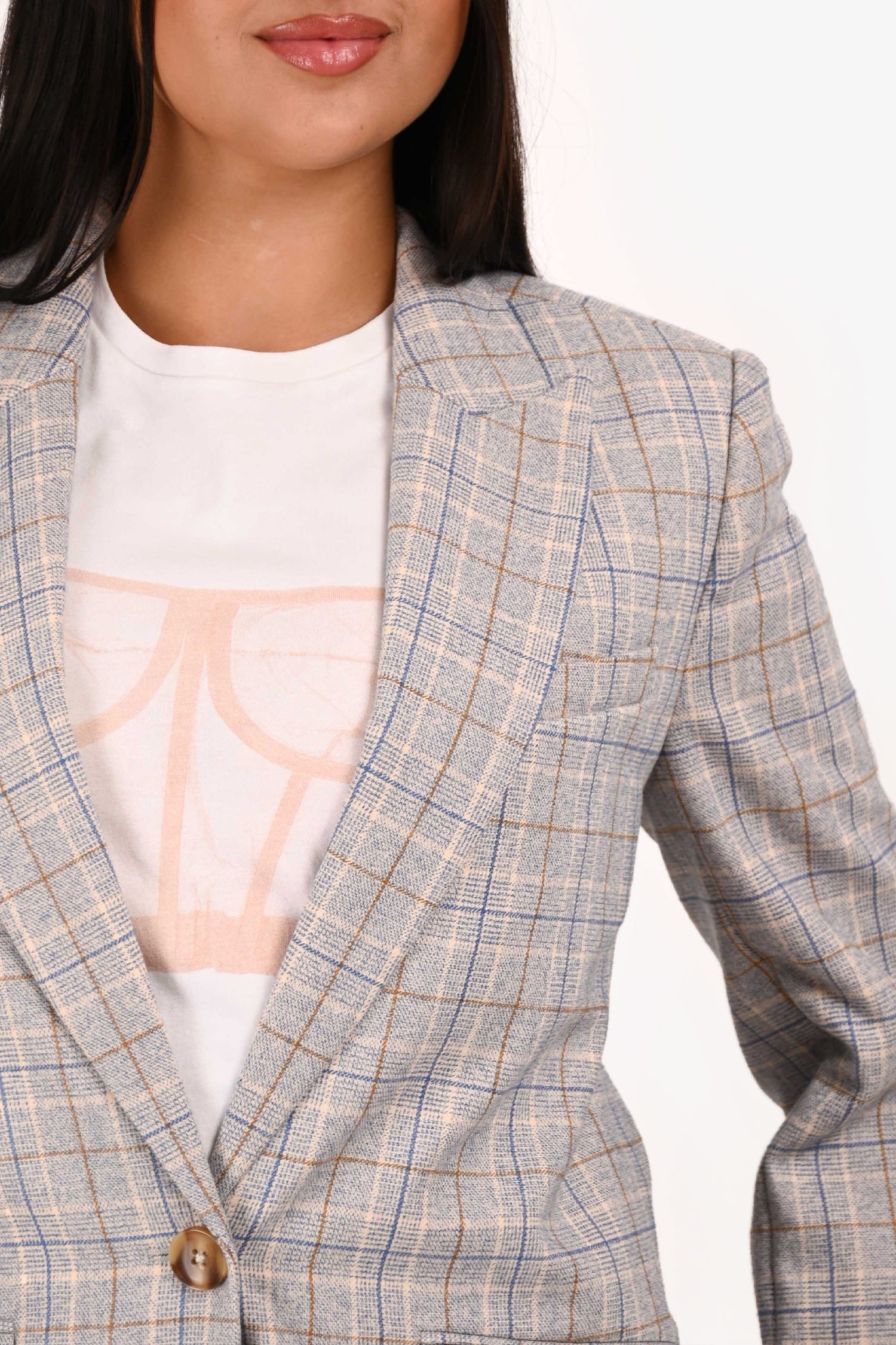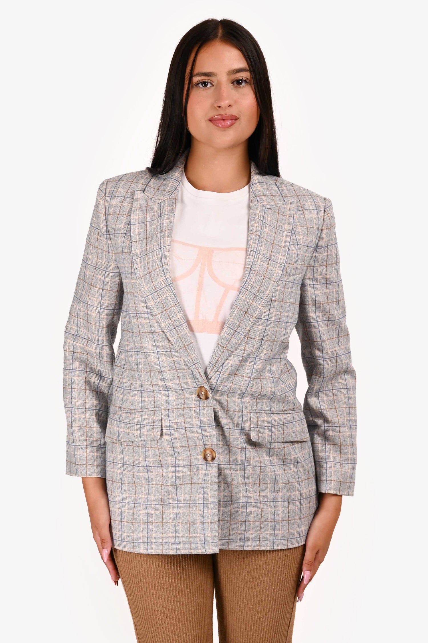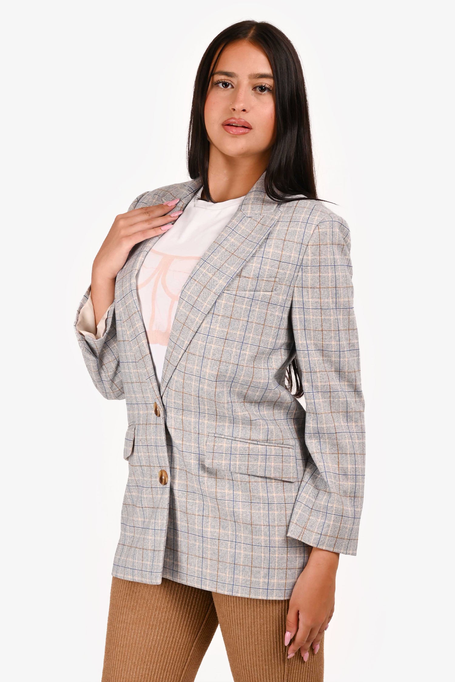 Refresh availabilityL'Academie Light Blue Plaid Blazer. Front button-up closure. Front pockets. Lined. Padded shoulders.