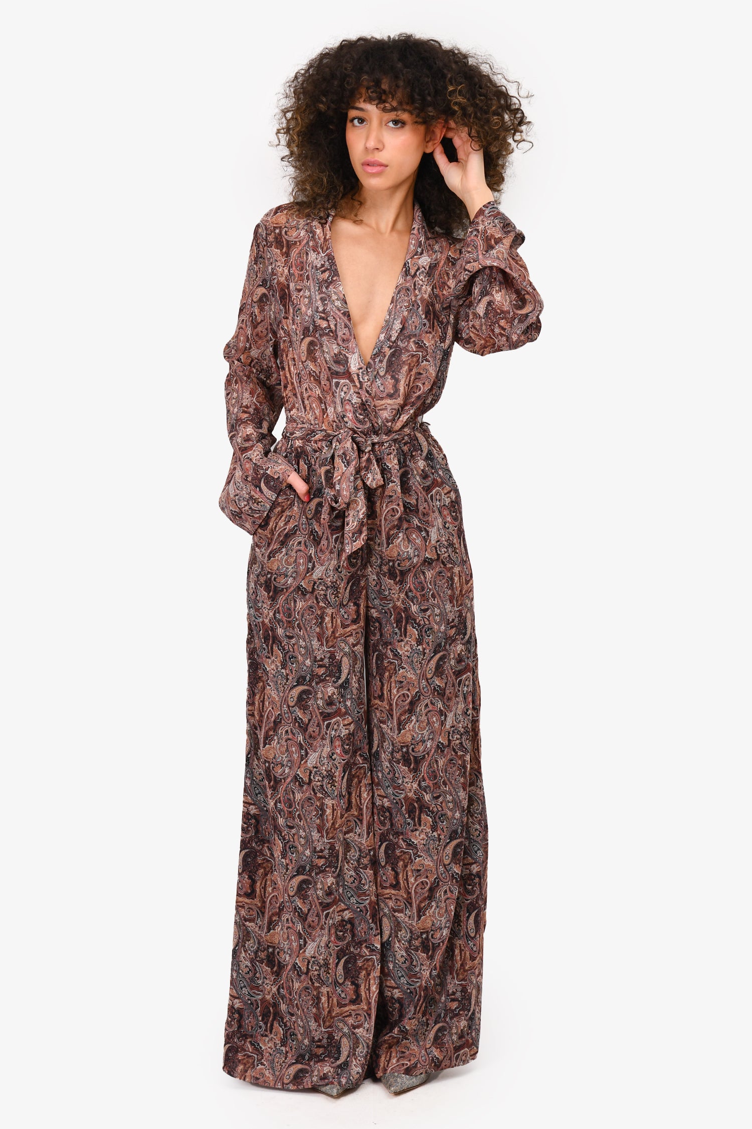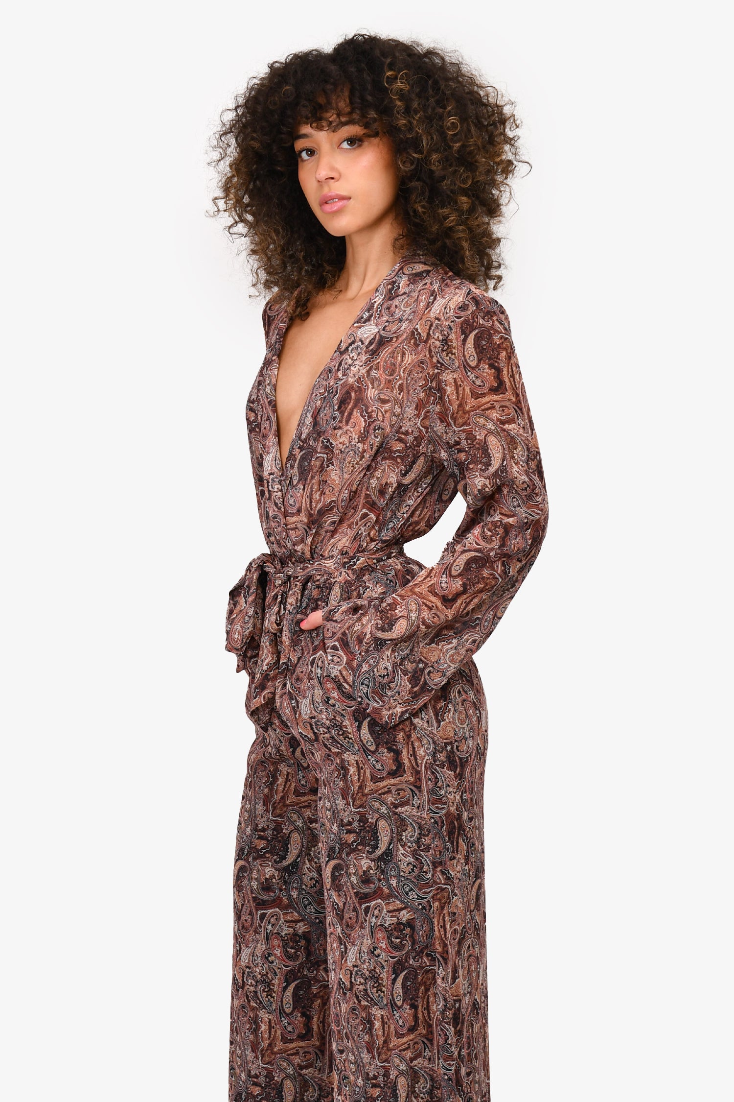 L'Agence Brown Patterned Belted Jumpsuit Size 6