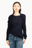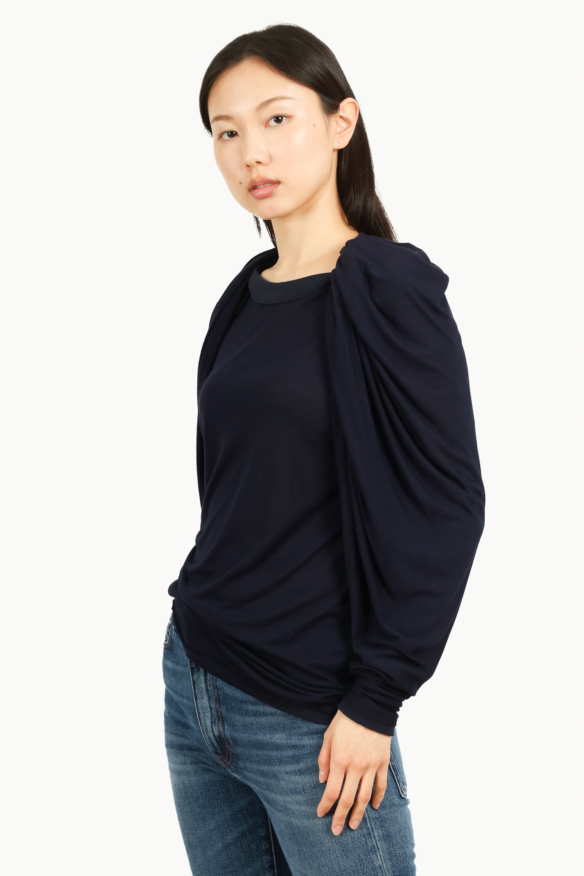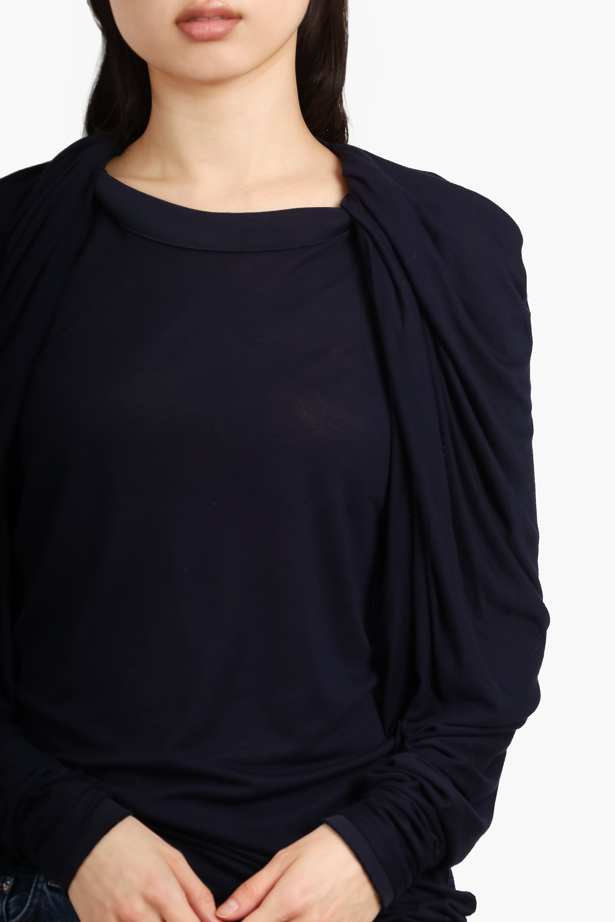 Refresh availabilityLanvin Navy Draped Shoulder Top. Pull-over. Round neck. Unlined. Tonal stitching.