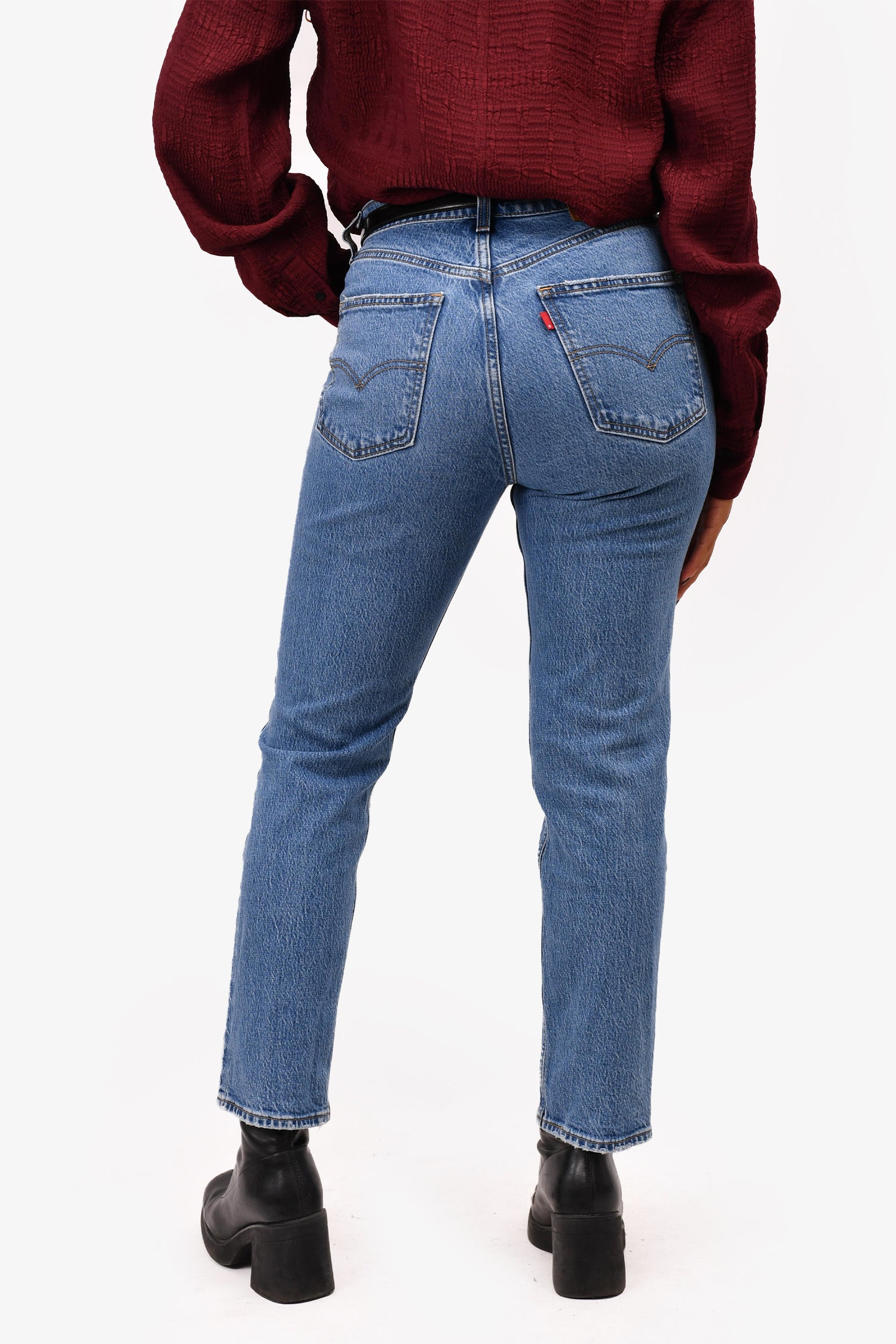 Refresh availabilityLevi's Blue Denim 70's High Slim Straight Jeans. Contrast stitching. Front zipped and button closure.