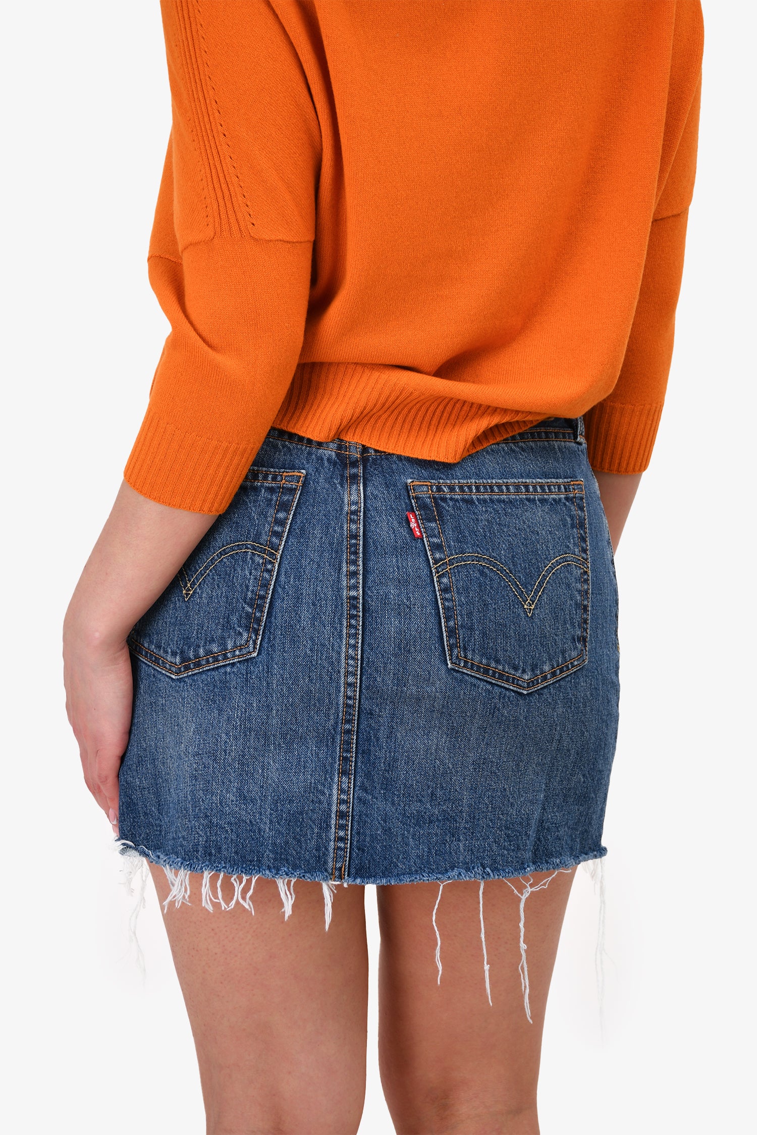 Levi's Blue Dark Wash Denim Frayed Skirt Size 28