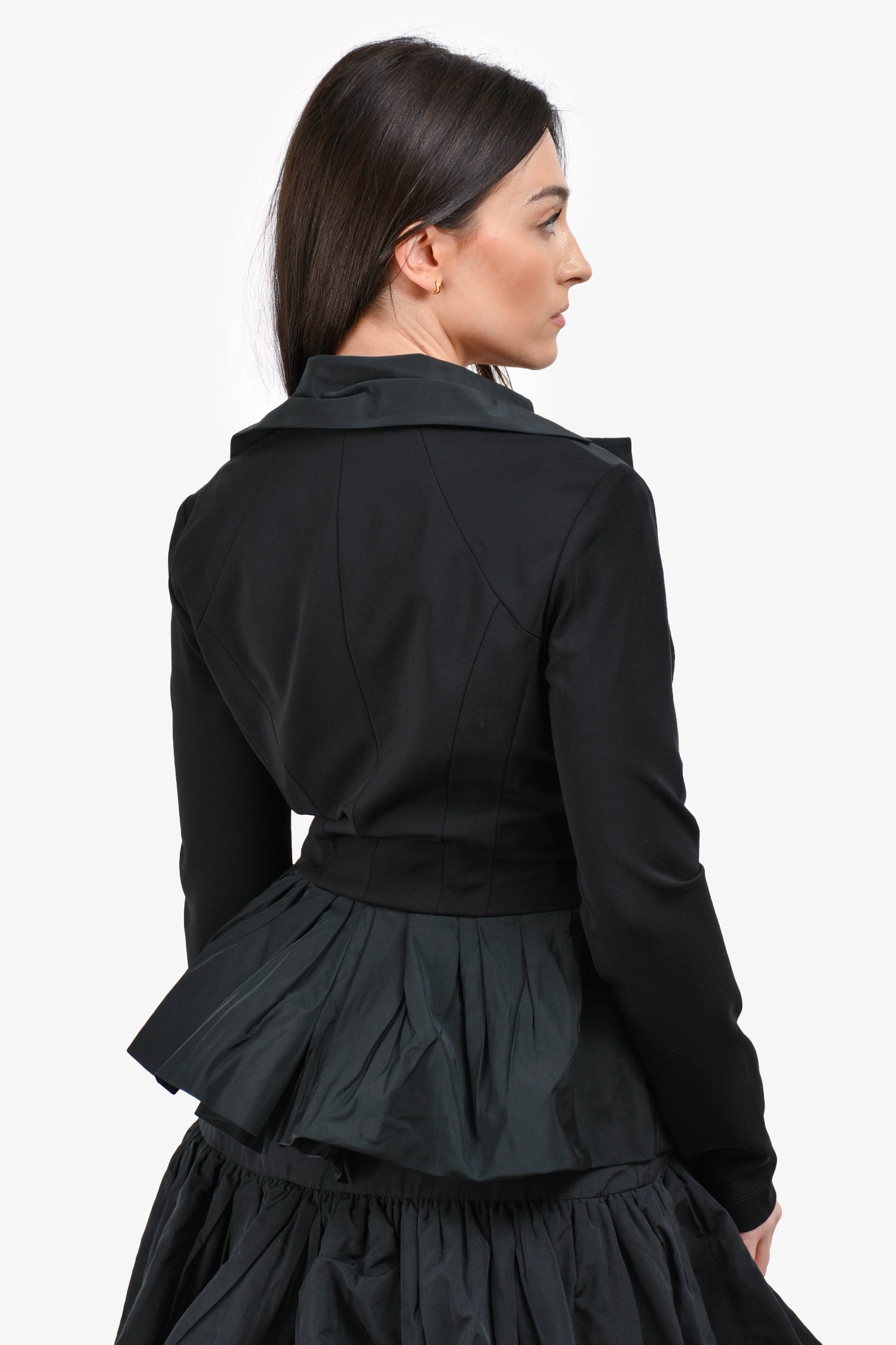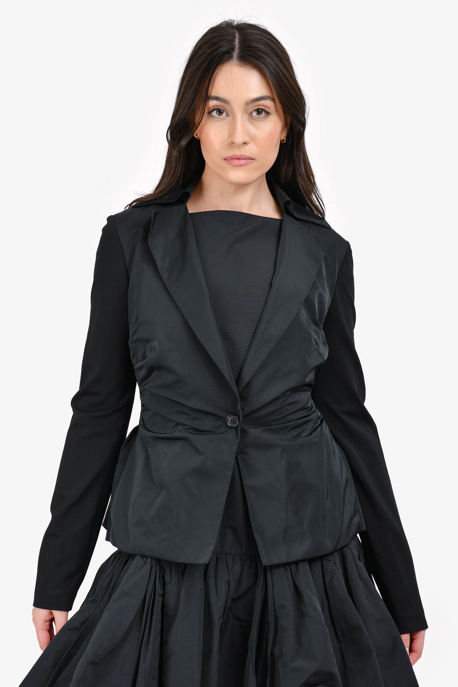 Lida Baday Black Cinched Waist Blazer. Notched lapel. Long sleeves. Front button closure. Cinched waist for tailored fit. Fully lined. Tonal stitching.