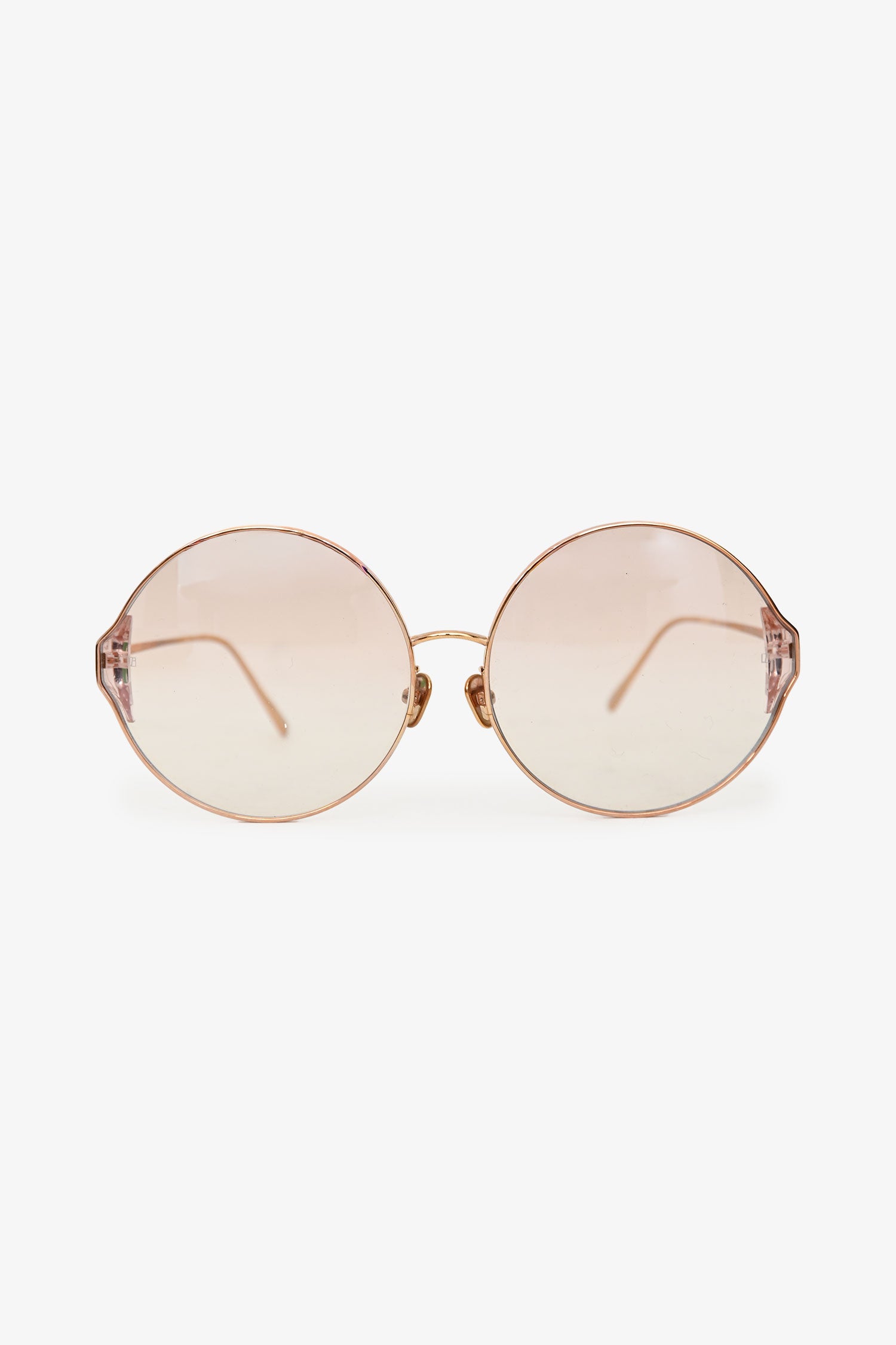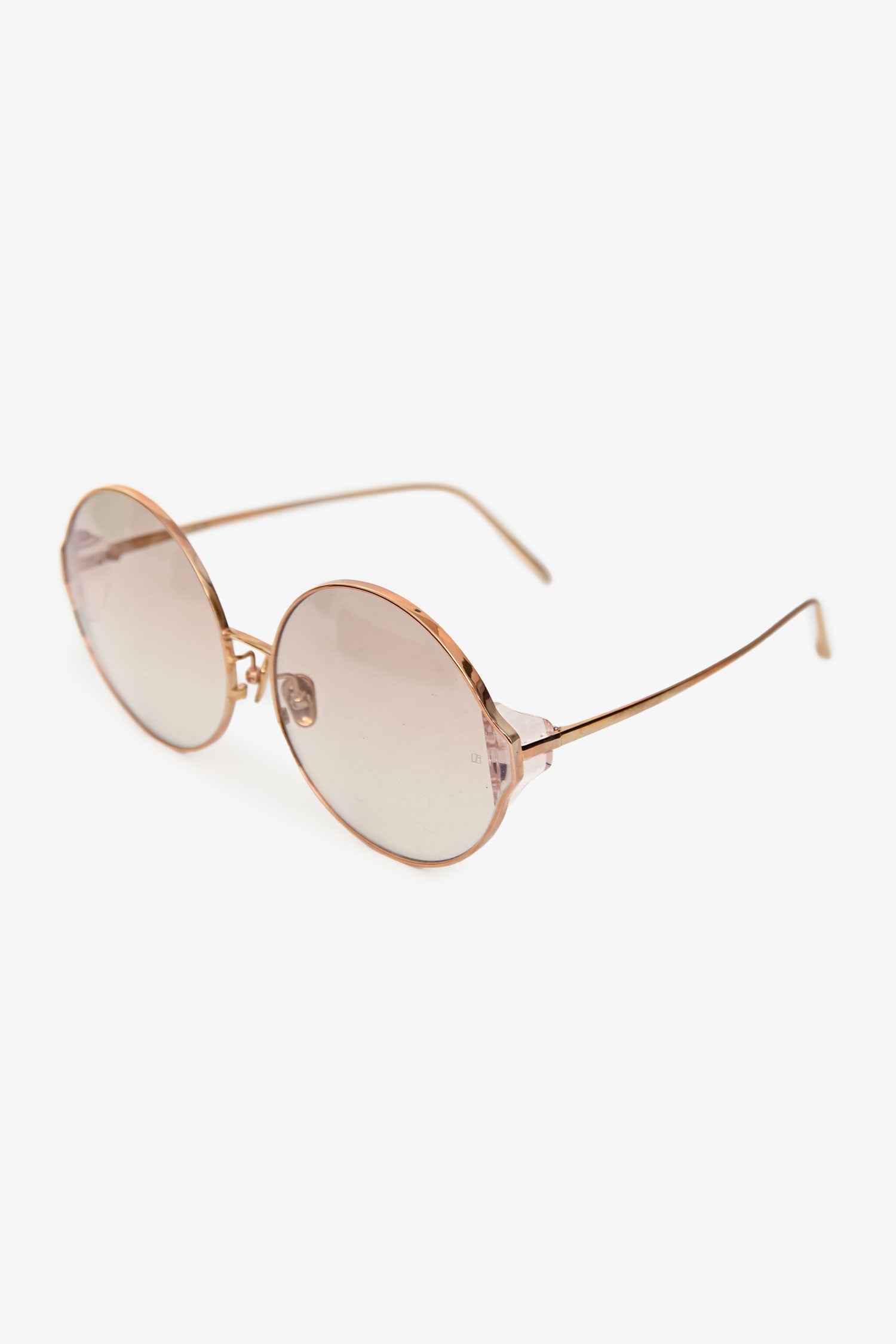 Refresh availabilityLinda Farrow Rose Gold-Tone Metal Round Frame Sunglasses. Built-in nose pads.