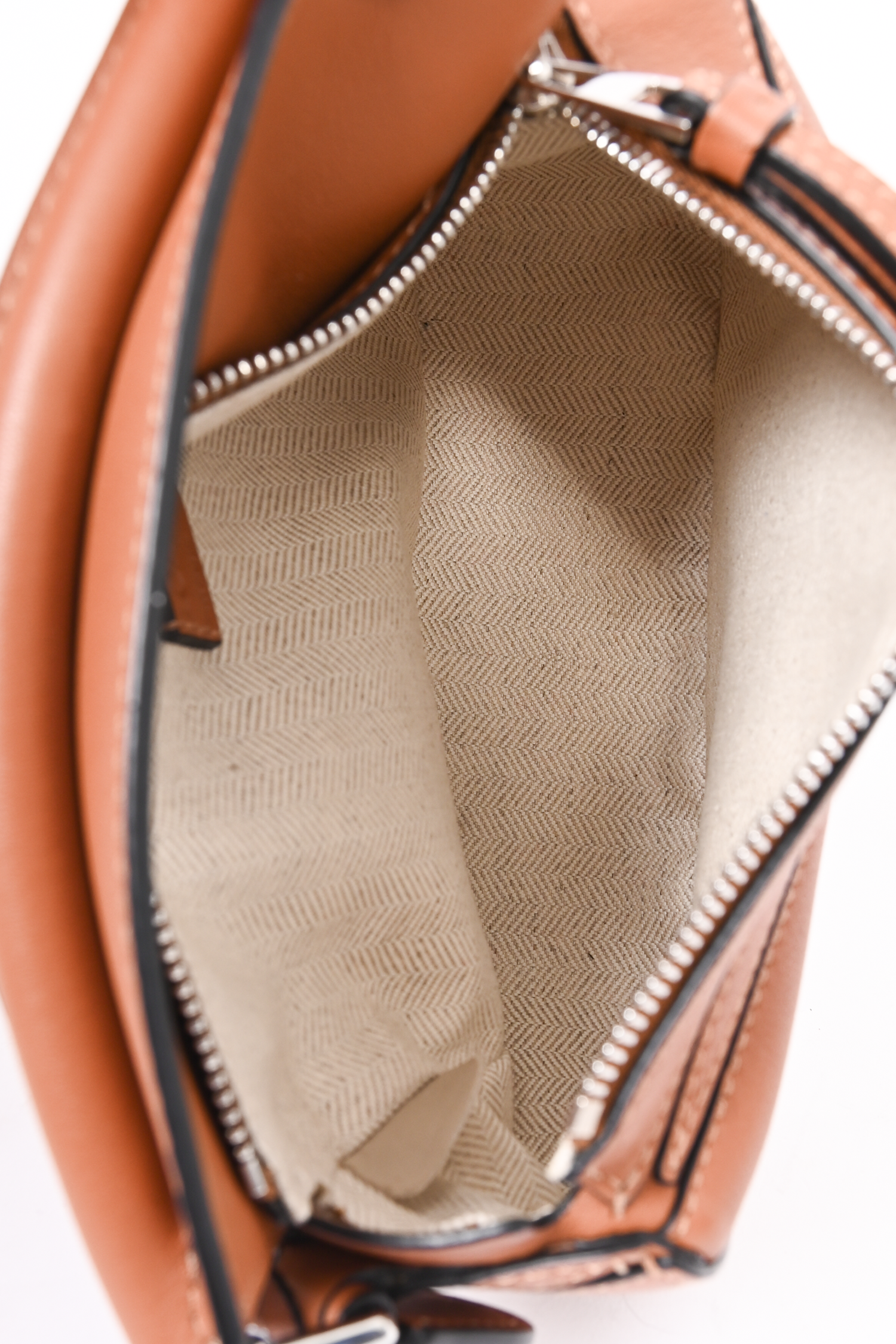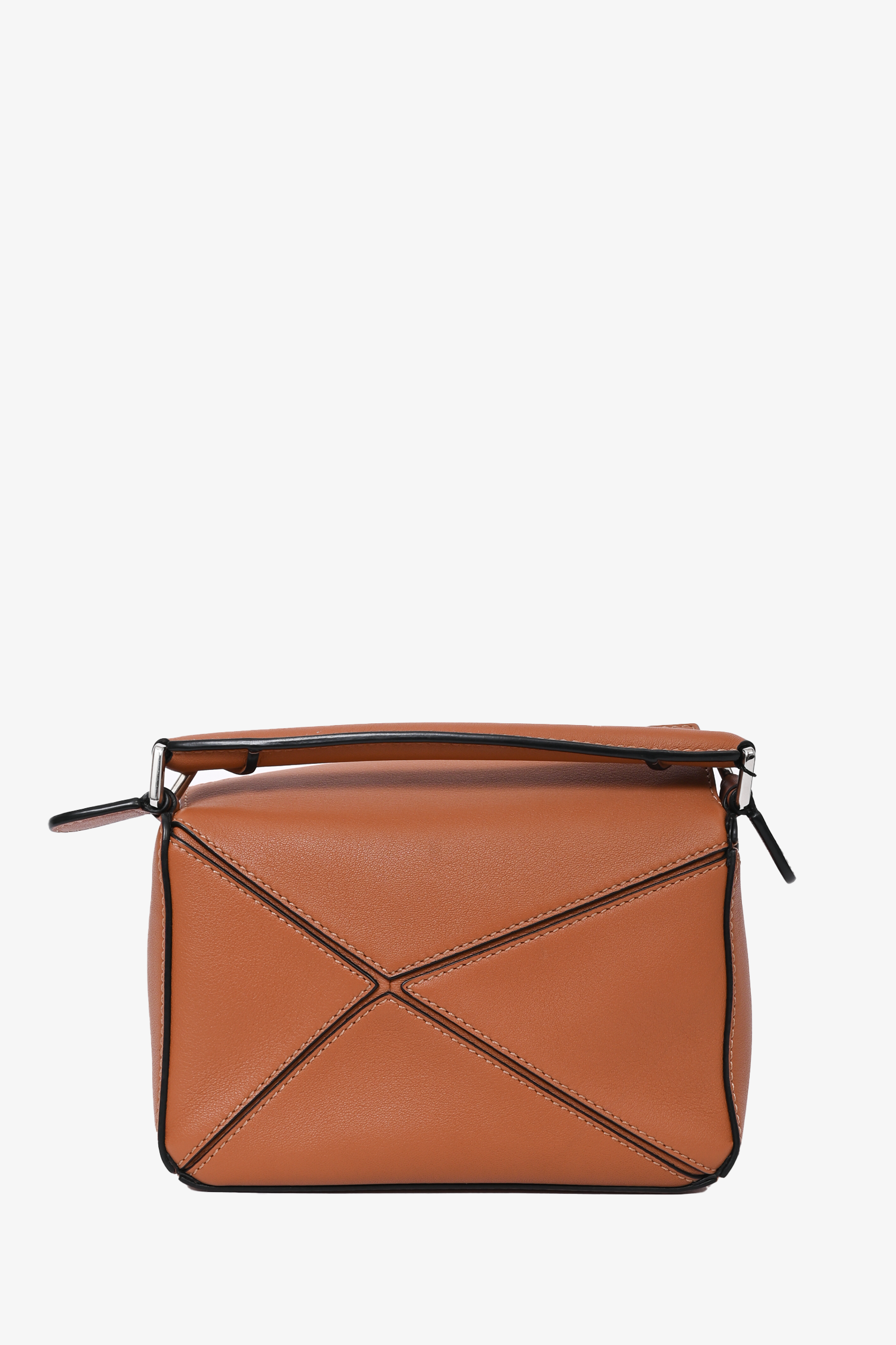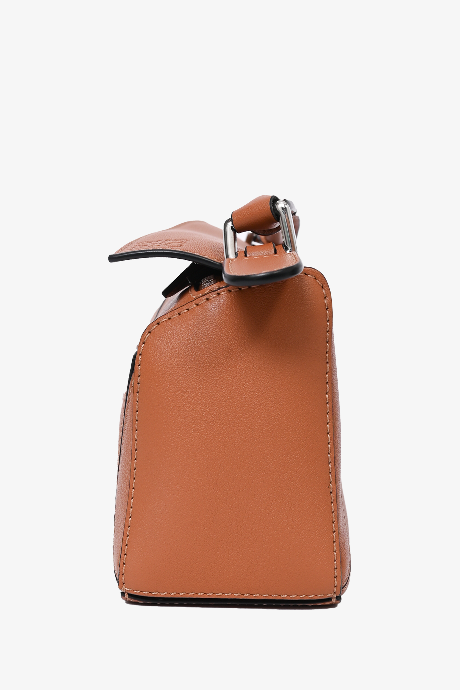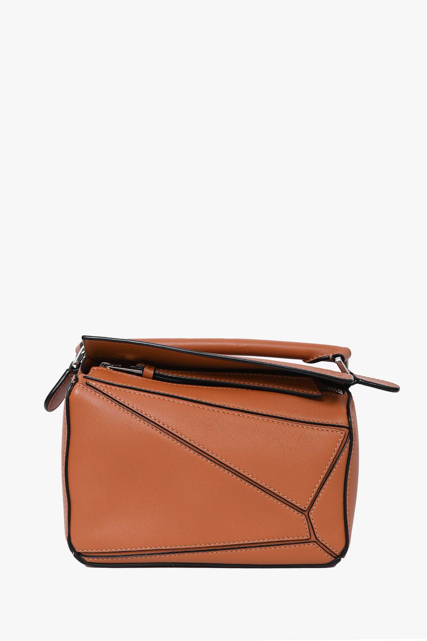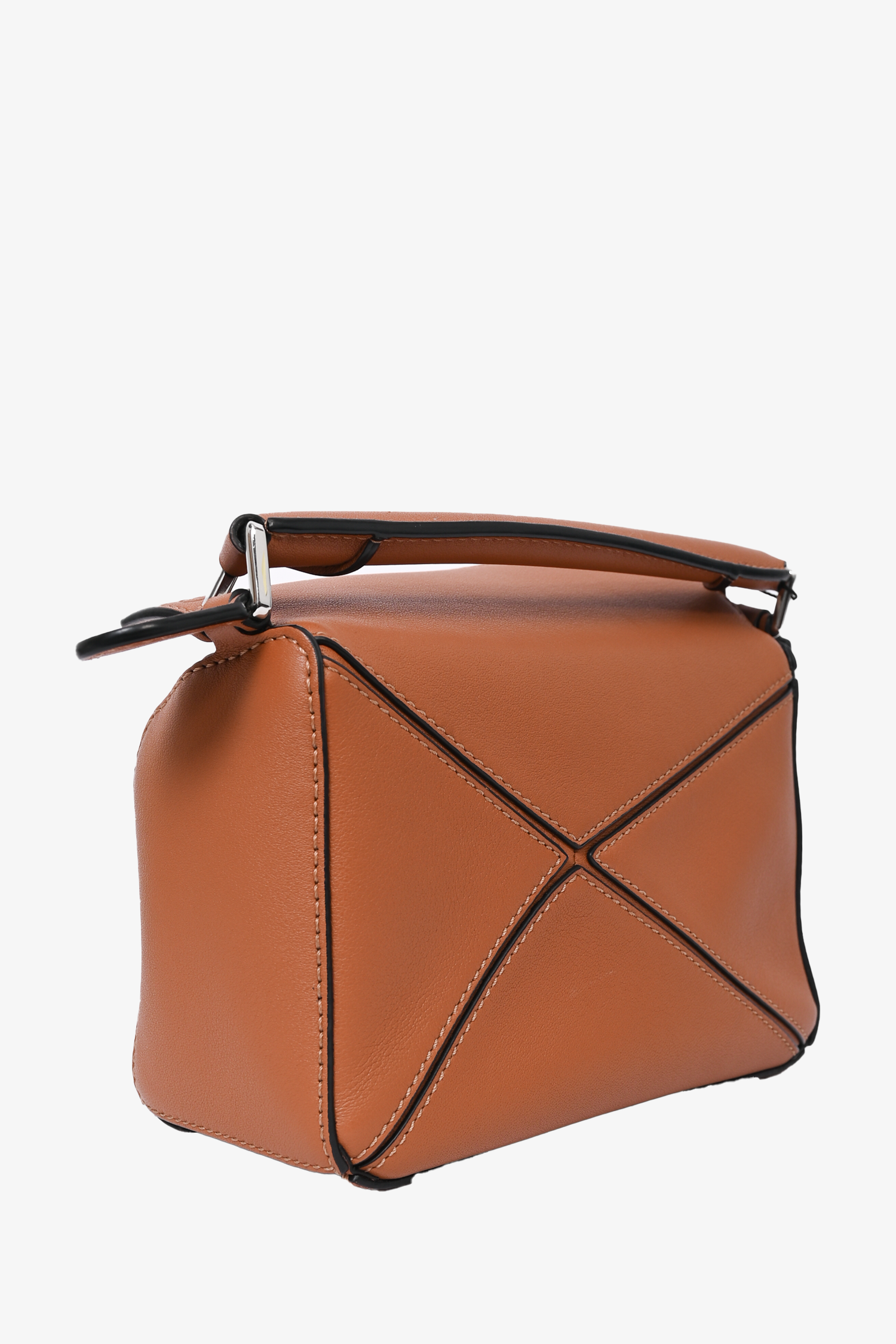 Refresh availabilityLoewe 2019 Brown Leather Mini Puzzle Bag. Top zip closure. Removable cross-body strap. Silver-tone hardware. Tonal stitching.