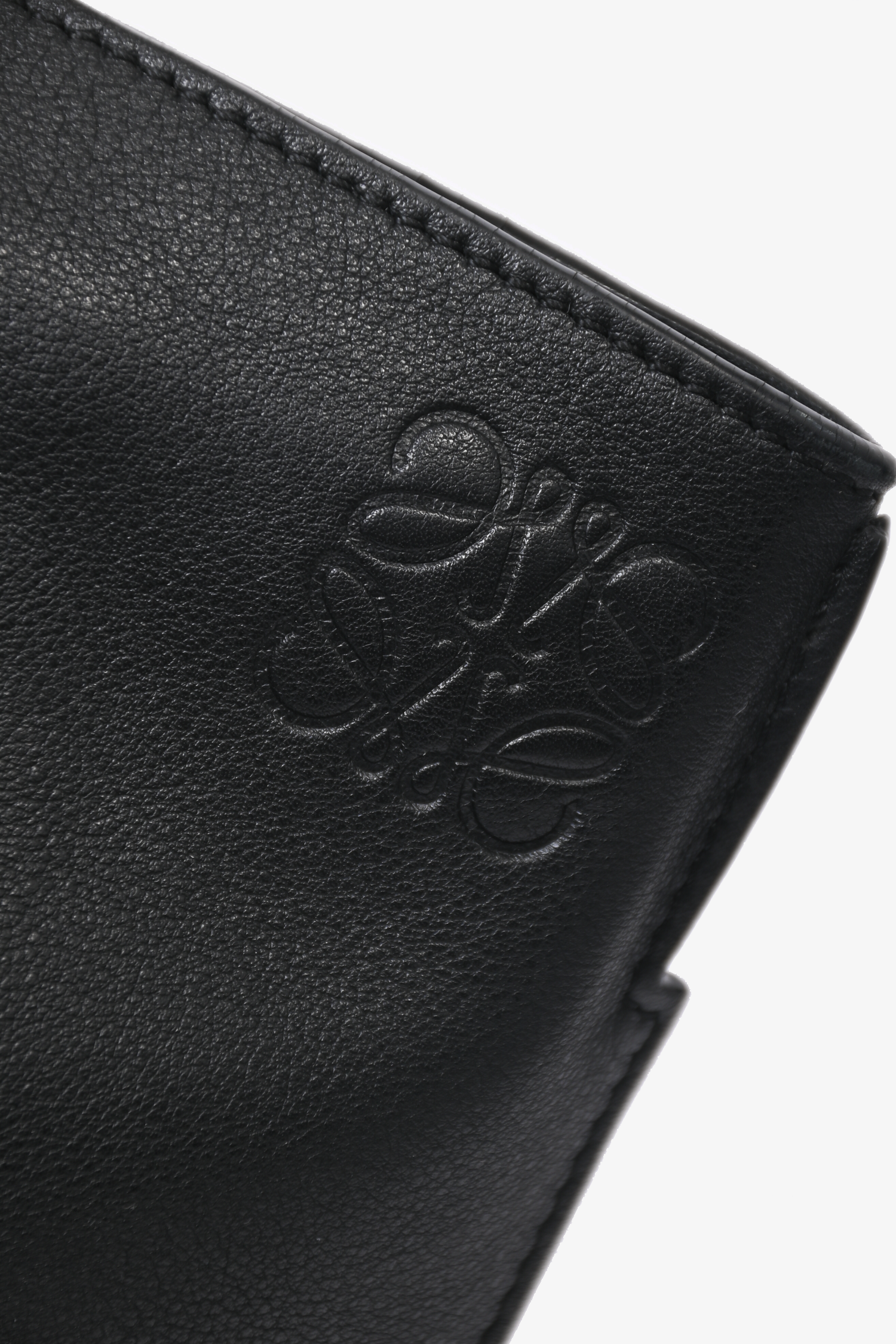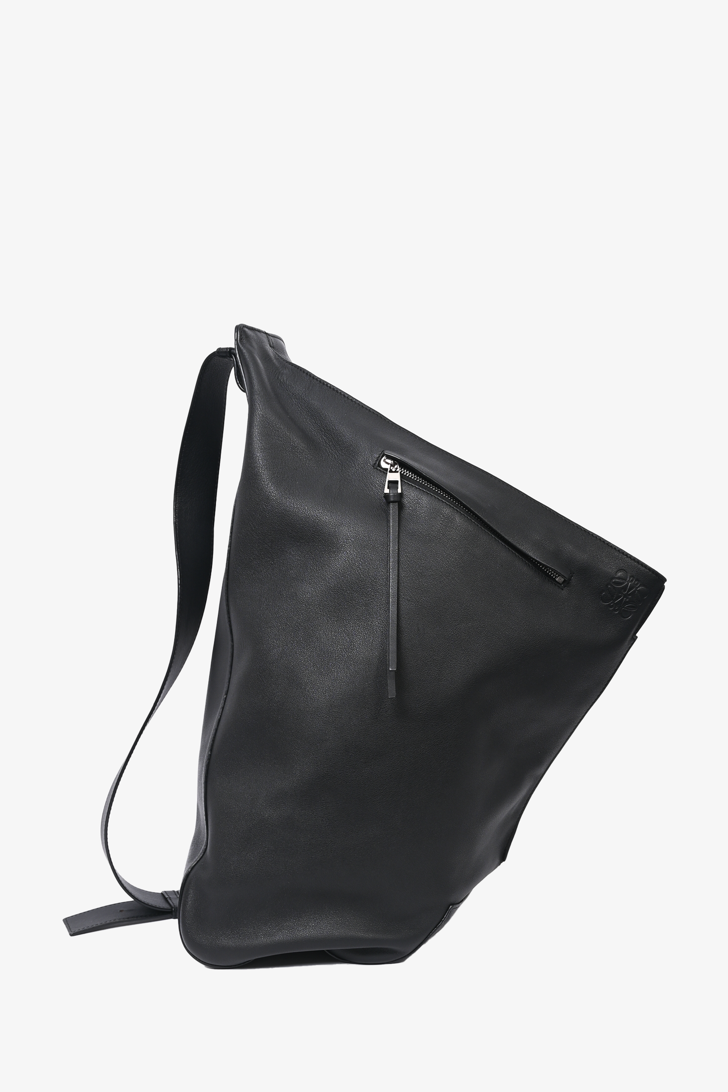 Refresh availabilityLoewe Black Leather 'Anton' Sling Bag. Front zip closure. Front zip pocket. Tonal textile interior lining. Open interior. Adjustable strap. Silver-tone hardware. Tonal stitching.