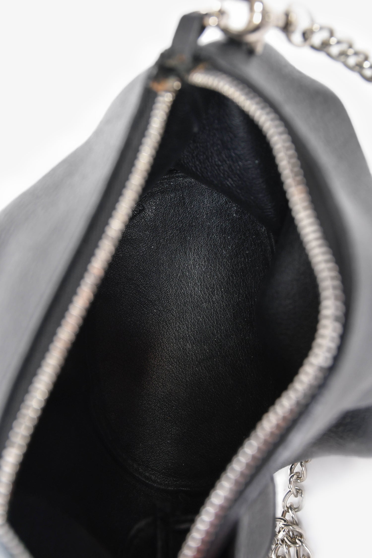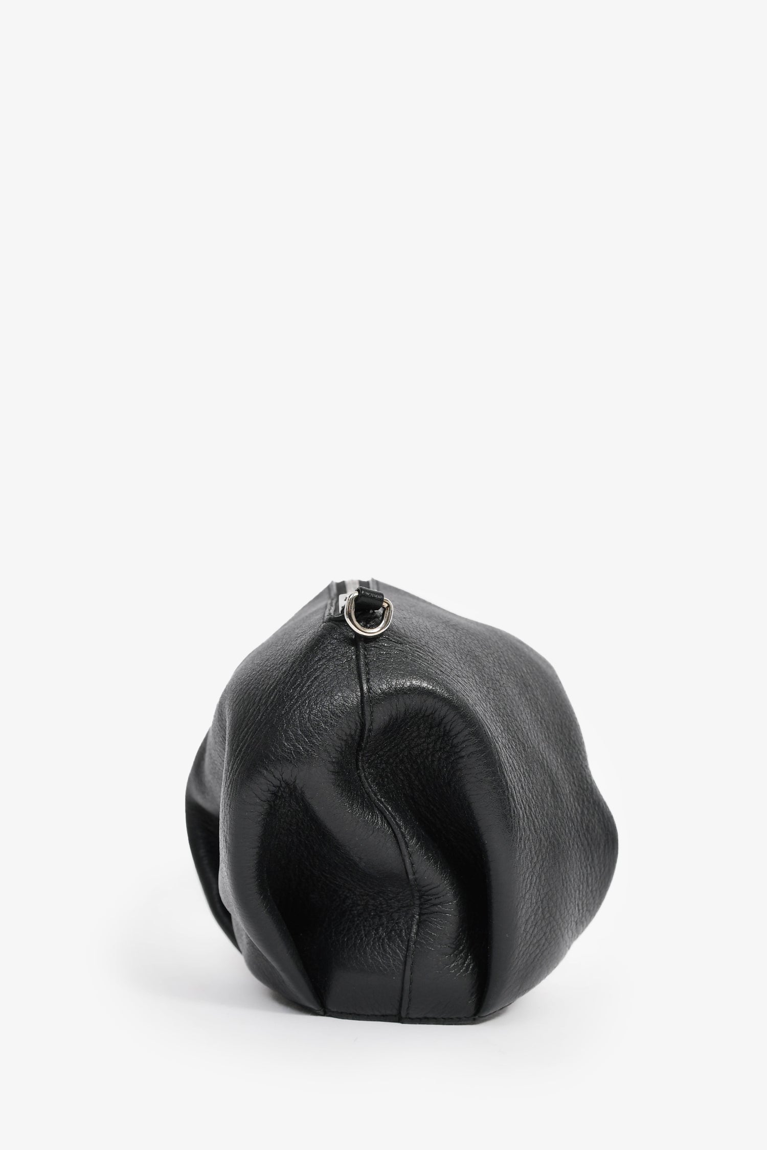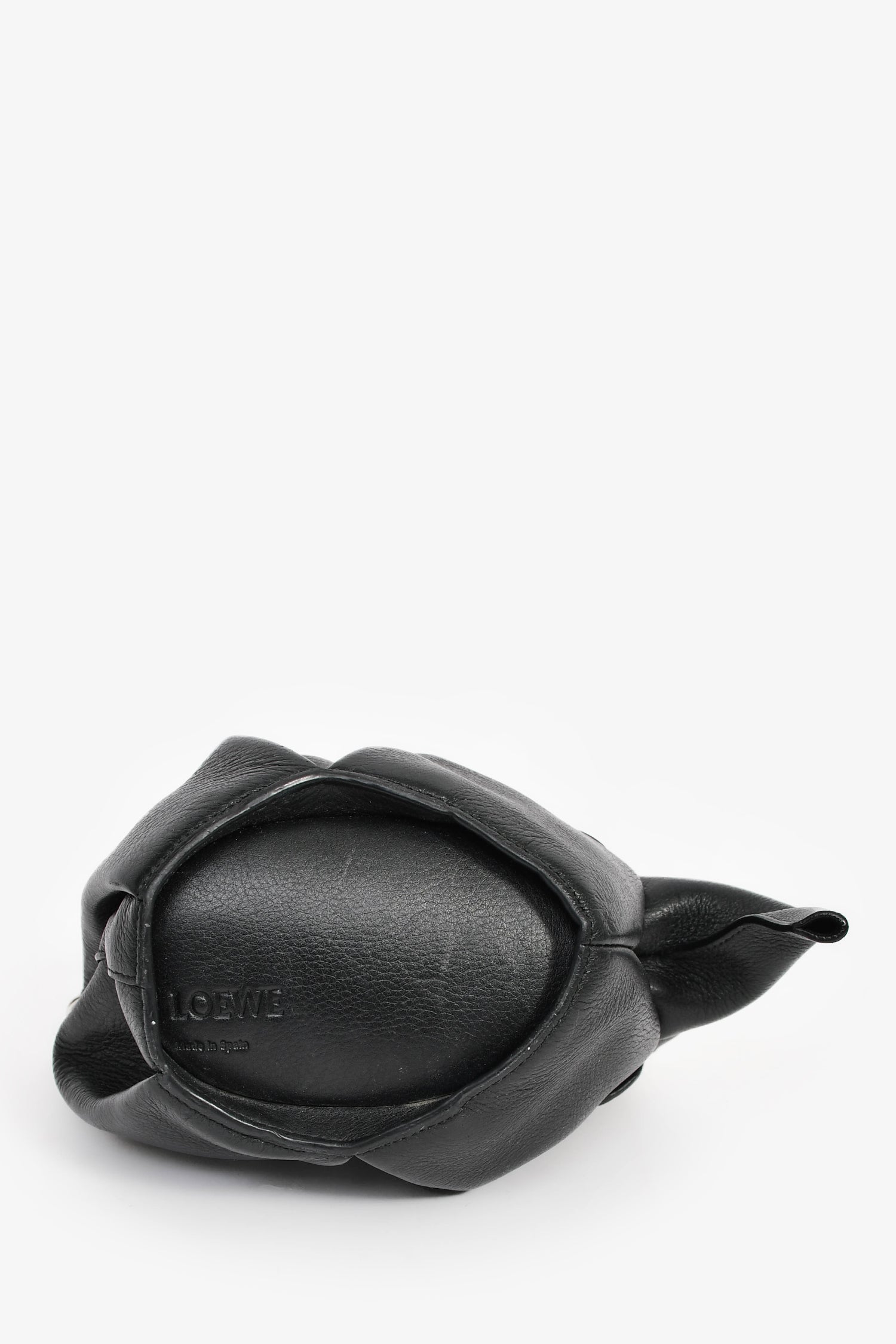 Refresh availabilityLoewe Black Leather Elephant Bag with Strap. Top zip closure. Single interior compartment. Detachable strap and chain. Silver-tone hardware. Tonal stitching.