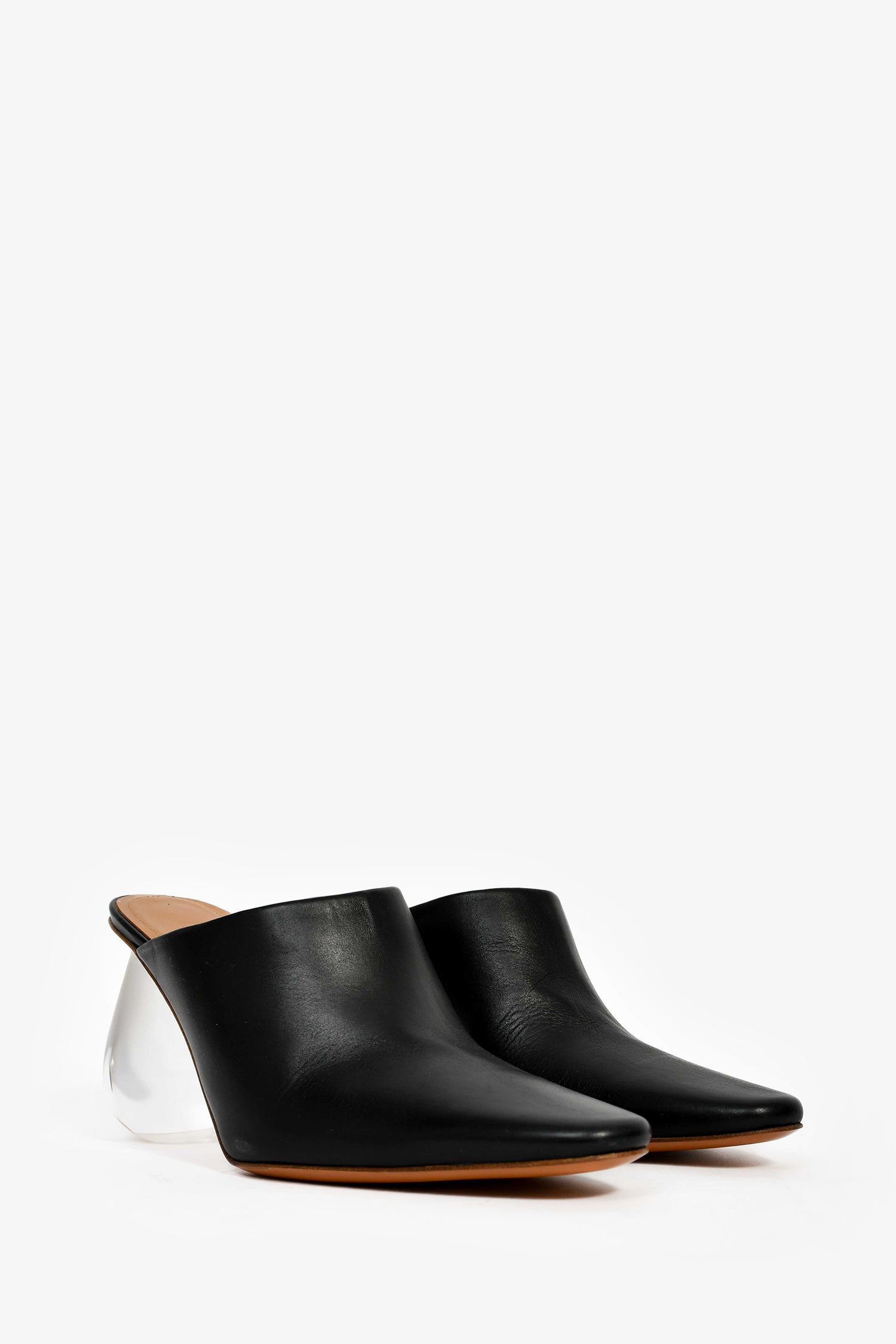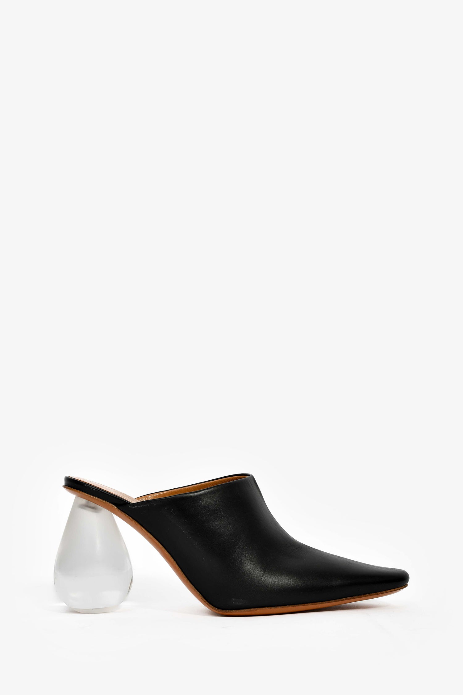 Loewe Black Leather Lucite Heeled Mules Size 37