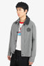 Loewe Black/White Houndstooth Zip Jacket with Leather Collar Size 48