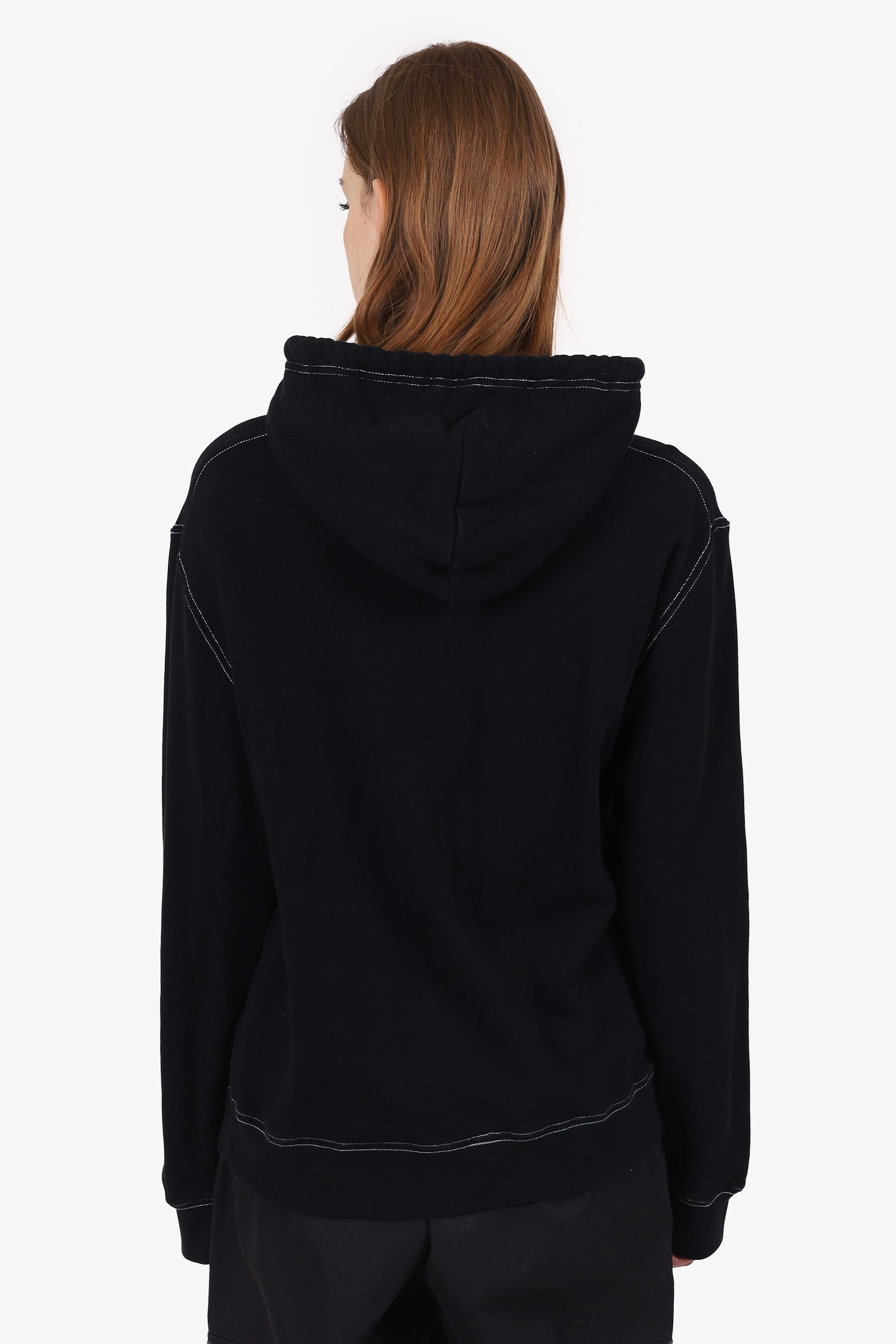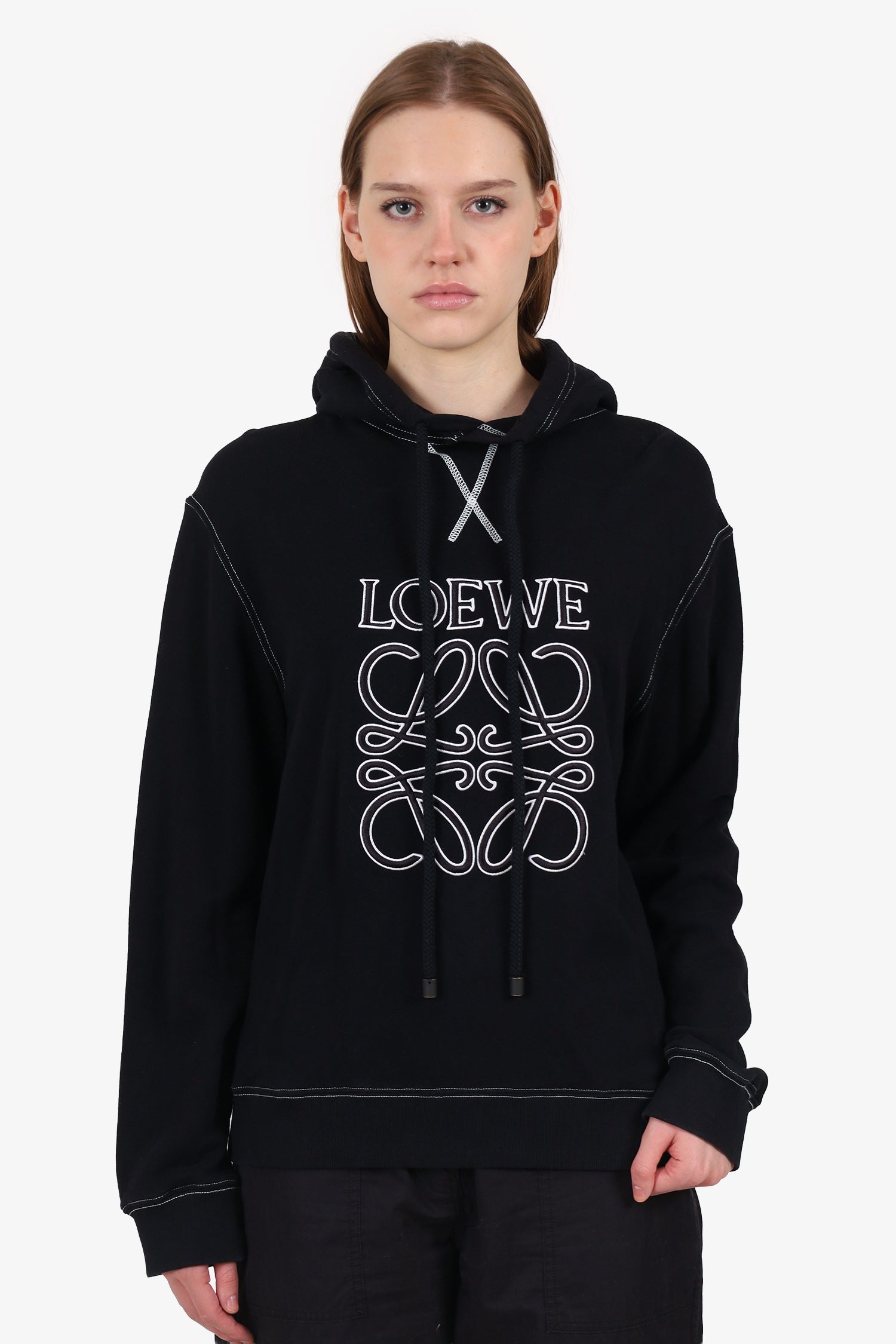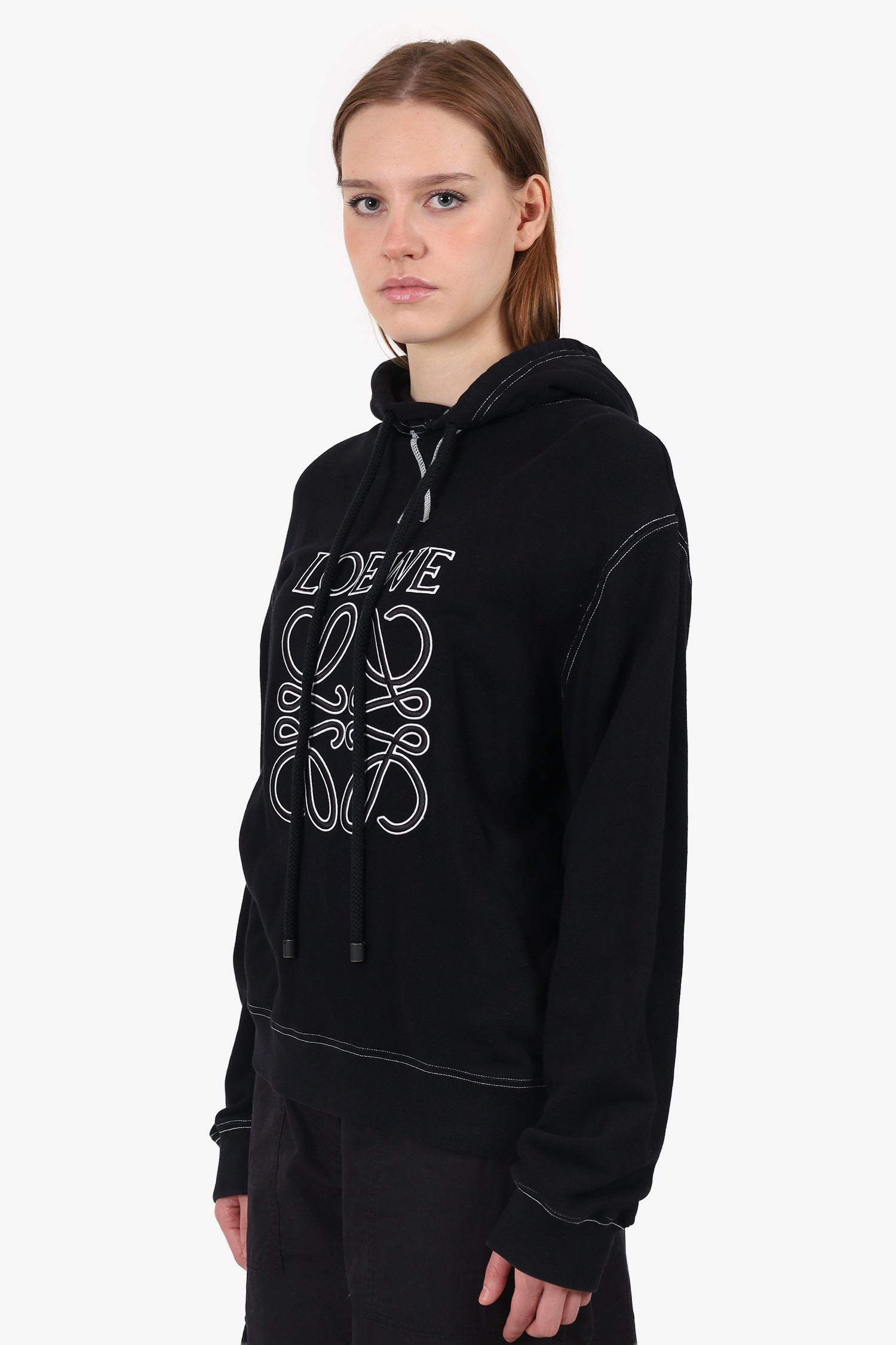 Refresh availabilityLoewe Black/White Anagram Hoodie. Pull-on. Hooded neckline with drawstring closure. Gunmetal-tone hardware. Contrast and tonal stitching.